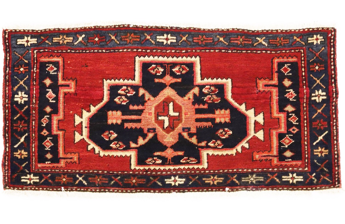 Vintage Red Geometric 2X4 Heriz Persian Rug