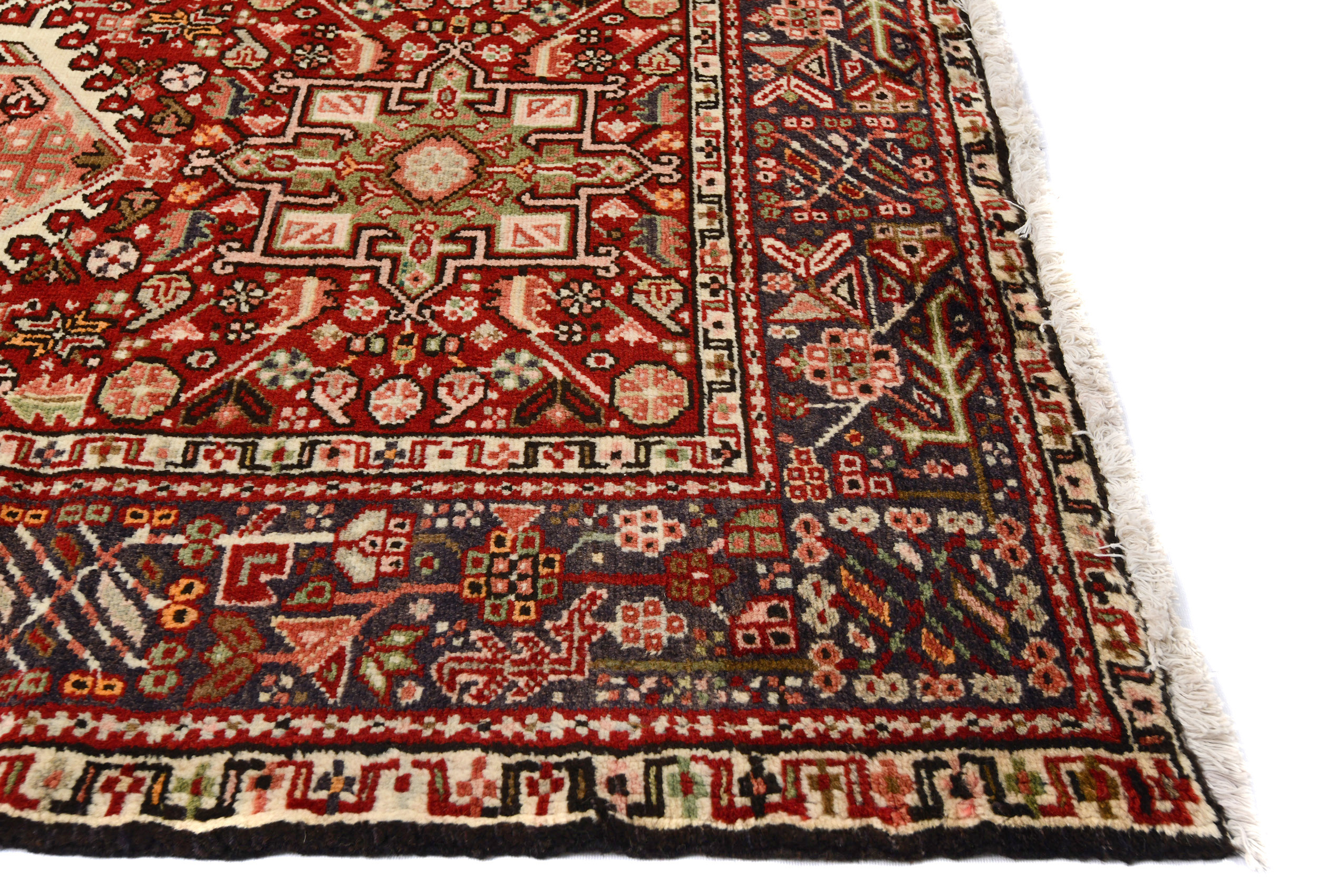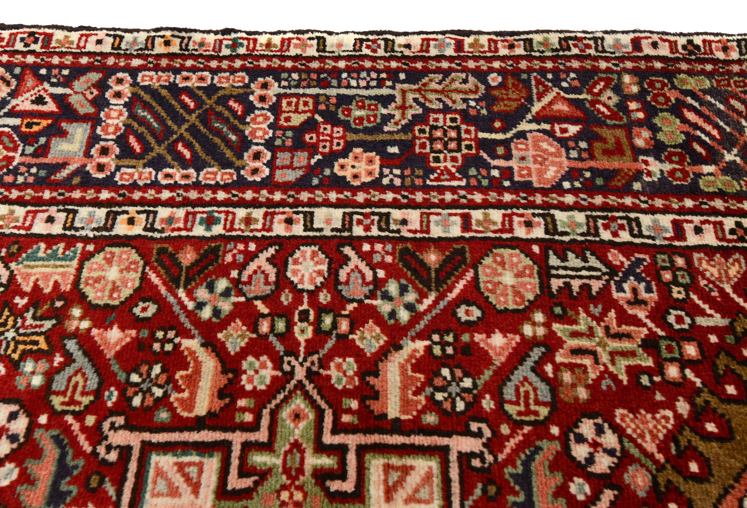 This authentic 3'6X10'4 red vintage Persian runner was masterly knotted by the hands of weavers inspired by a variety of wonderful artistic designs, to recreate the aged look of the original piece with a richness of color and intricate patterned background field. What set this tribal Oriental area runner from the others are the material and dye used (wool pile and cotton foundation), knot count, antique designs, fantastic grades, and its regional historical connection: it has deep roots, from the story of the people who produced it to the meaning of the symbols and colors displayed across its canvas that have been praised for centuries. This home décor carpet will be completely cozy and inviting that never will go out of style!