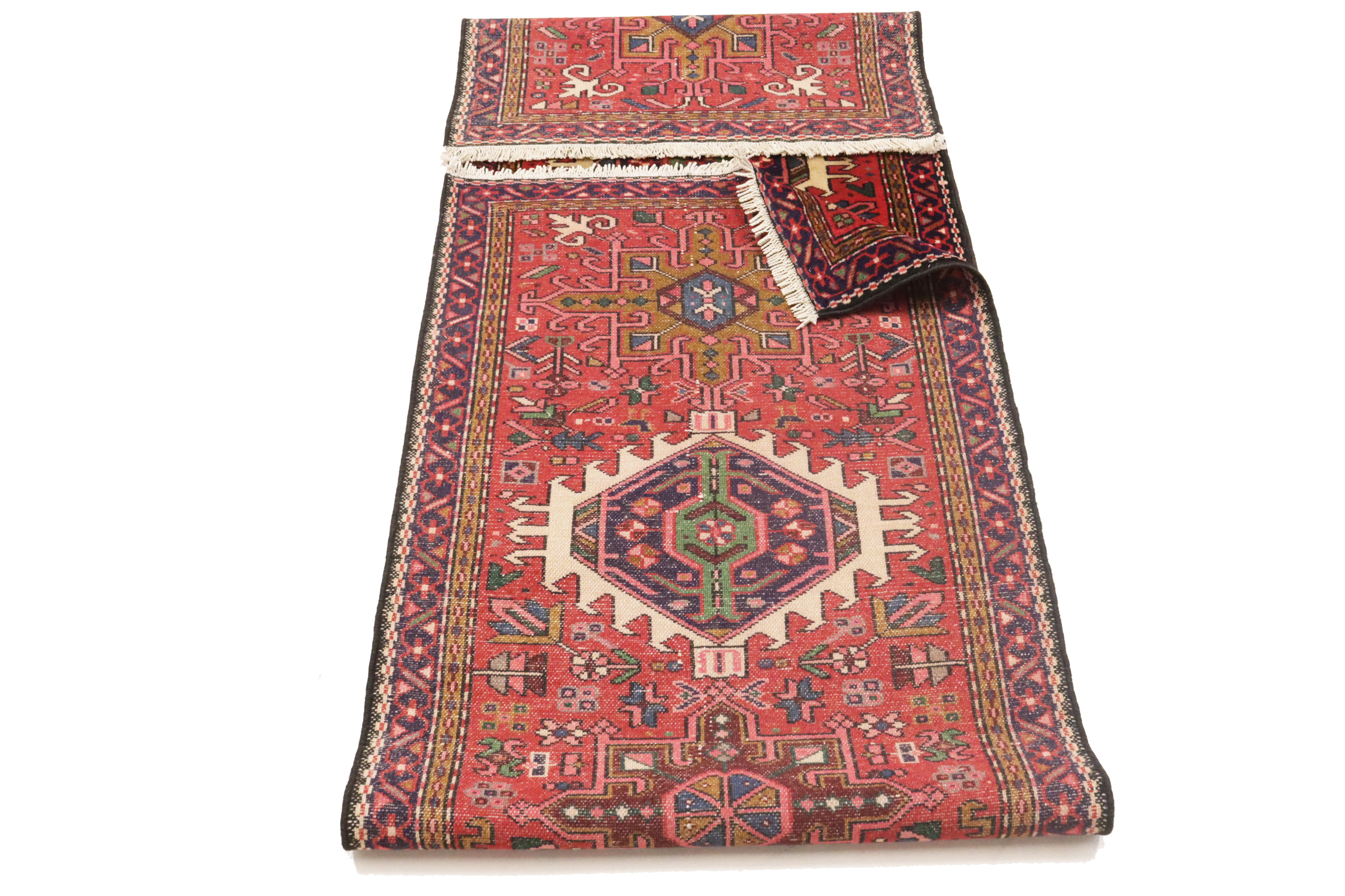 This authentic 3X10 red vintage Persian runner was finely knotted by the hands of weavers influenced by a variety of amazing artistic designs, to recreate the aged look of the exceptional piece with a richness of color and embellished background field. What set this tribal Oriental area runner from the others are the material and dye used (wool pile and cotton foundation), knot count, antique designs, fantastic grades, and its regional historical connection: it has deep roots, from the story of the people who produced it to the meaning of the symbols and colors displayed across its canvas that have been praised for centuries. This home décor carpet will be completely cozy and inviting that never will go out of style!