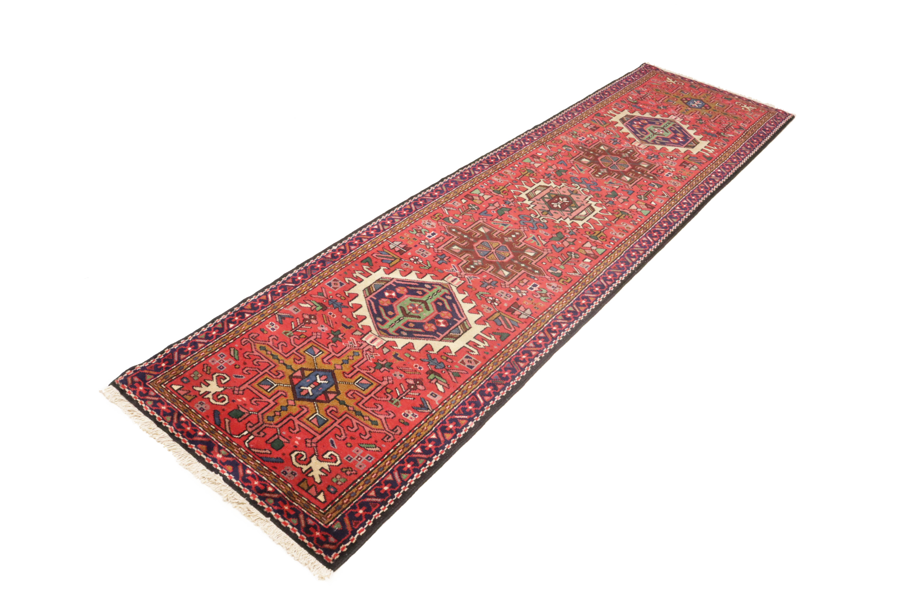Hand Knotted vintage 3X10 red Persian runner made with vegetable dyes (fine wool pile and cotton foundation), superior knot count, and appealing ancient designs. This Oriental runner never will go out of style and would be among your most valuable treasures.
