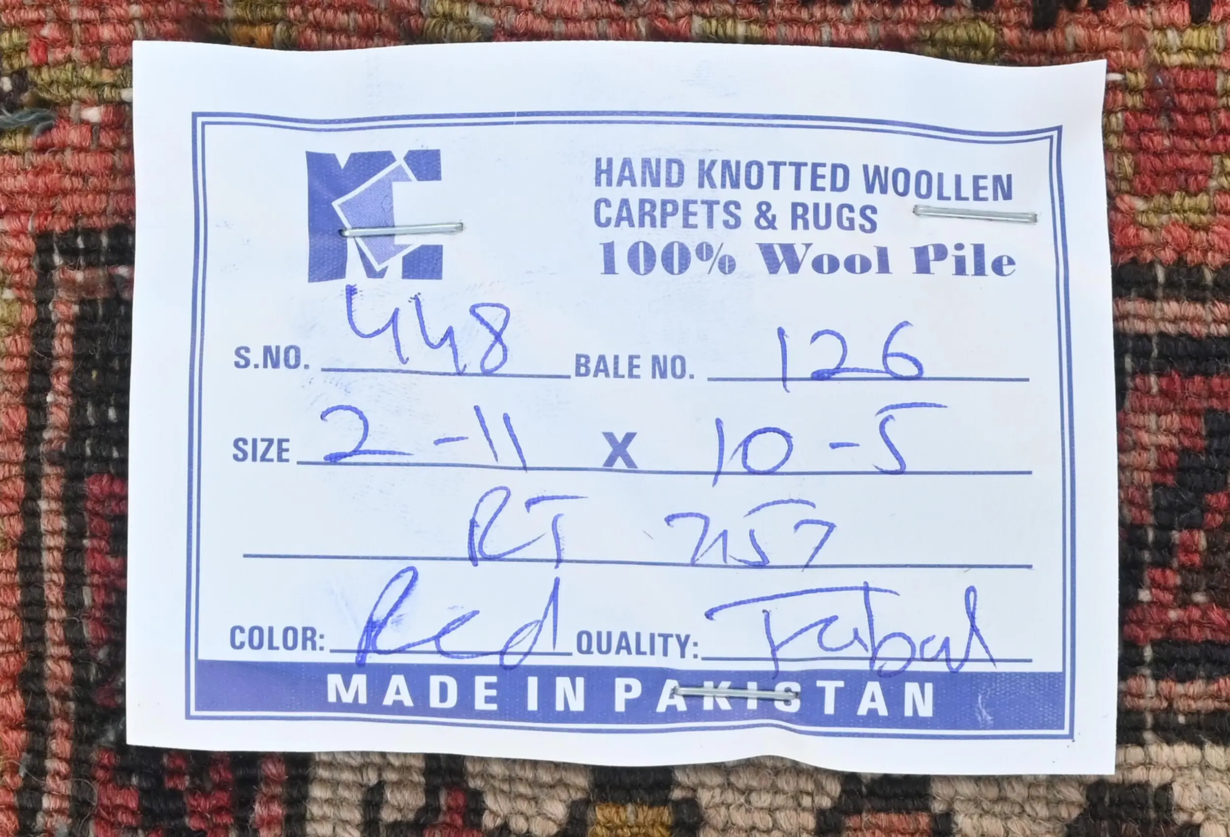 Hand Knotted 3X11 red Persian runner made with vegetable dyes (fine wool pile and cotton foundation), exceptional knot count, and appealing ancient designs. This Oriental runner never will go out of style and would be among your most valuable treasures.