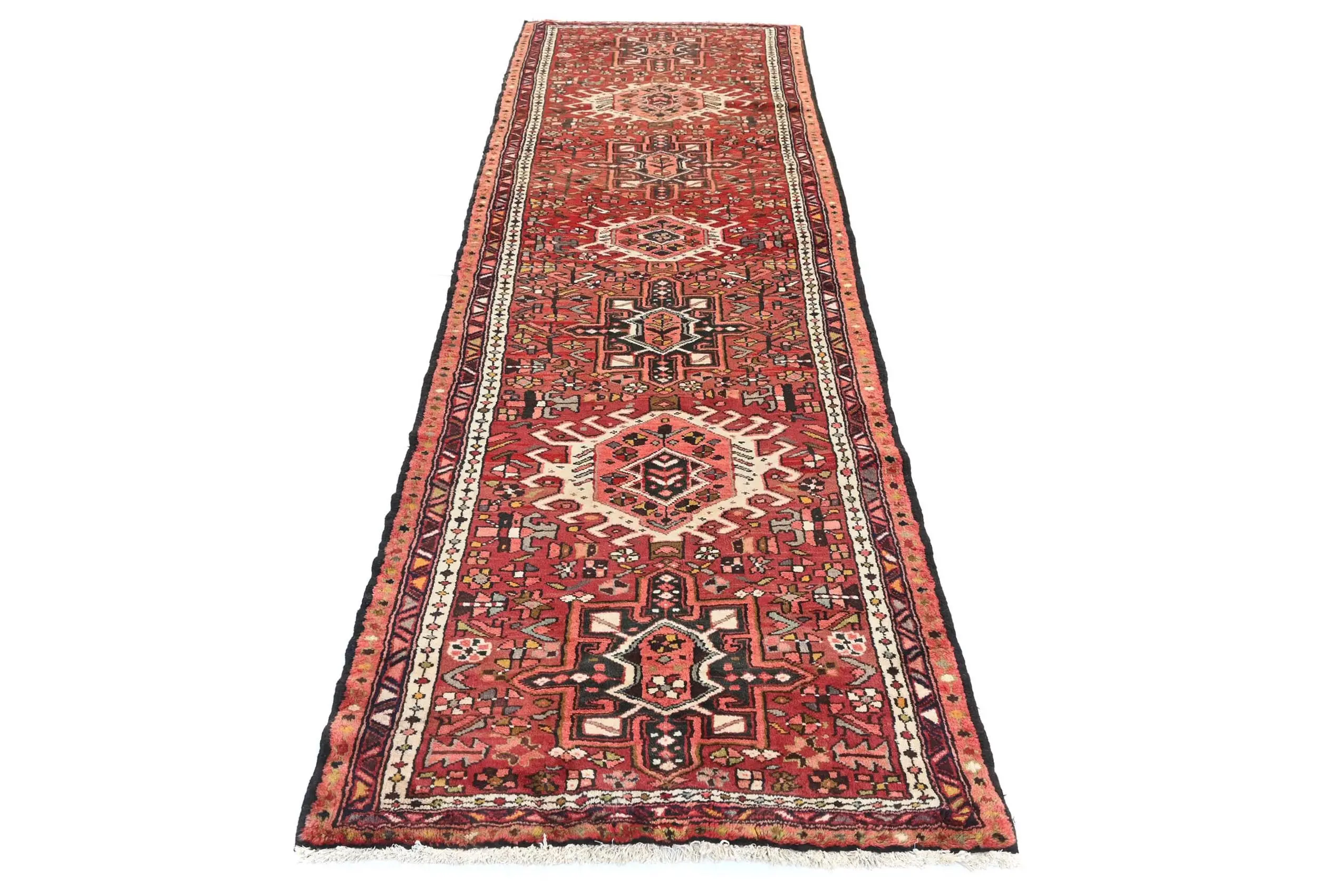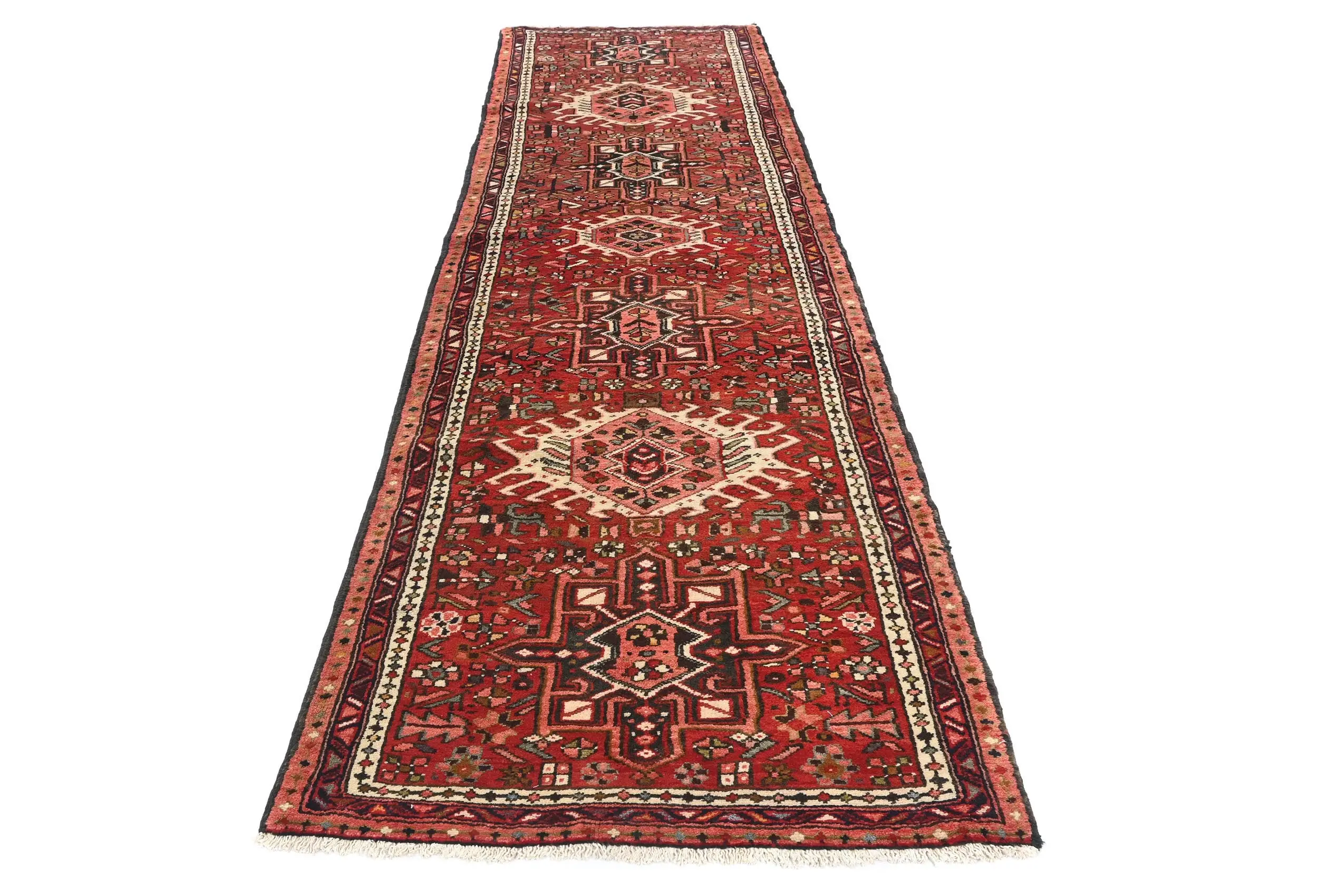 Vintage Red Geometric 3X11 Karajeh Persian Runner Rug