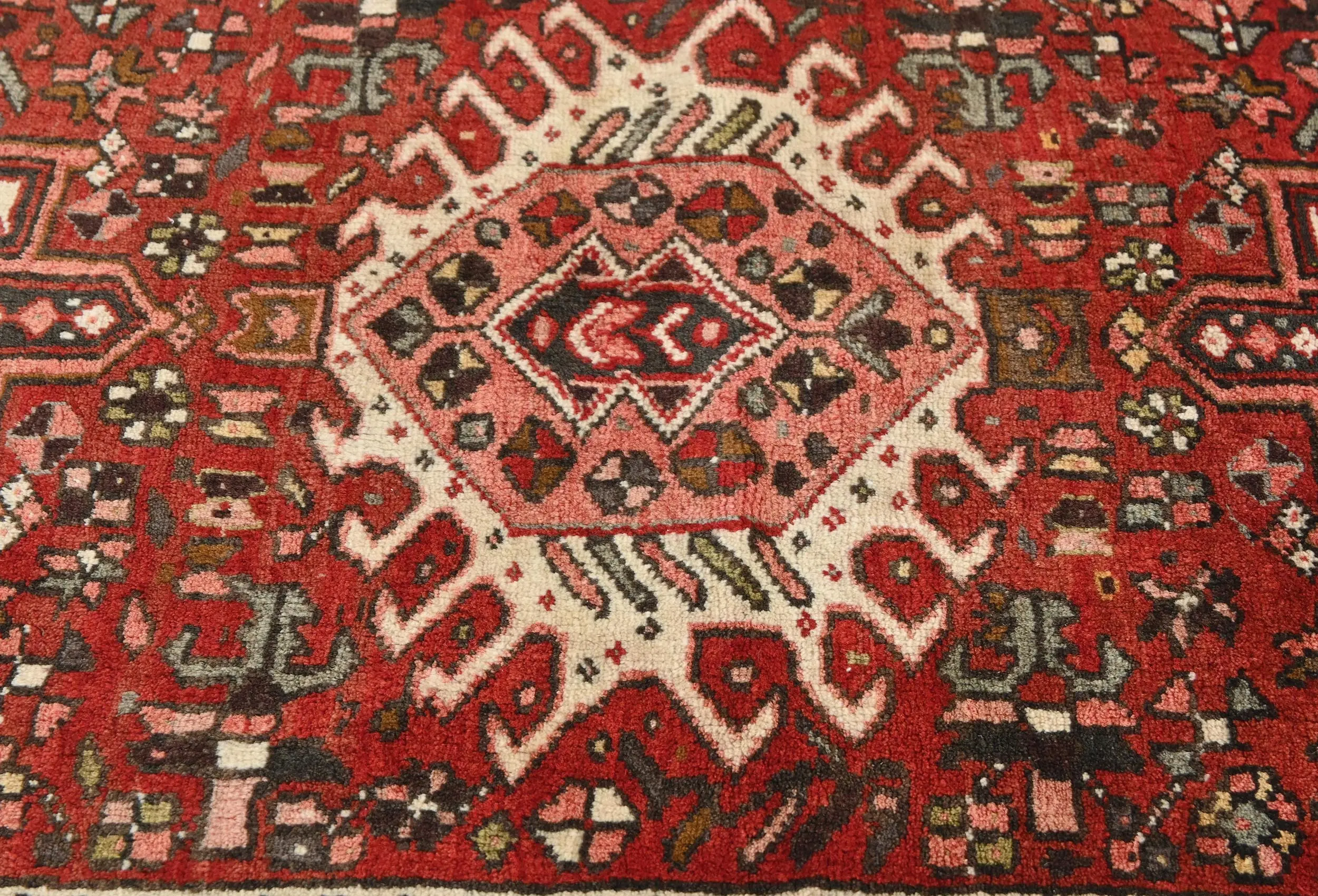 This original 3X11 red vintage Persian runner was crafted by the hands of skilled weavers enthused by a variety of lovely artistic designs, to recreate the aged look of the unique piece with a richness of color and beautifully elaborated background field. What set this geometric Oriental area runner from the others are the material and dye used (wool pile and cotton foundation), knot count, ancient designs, fantastic grades, and its regional historical connection: it has deep roots, from the story of the people who produced it to the meaning of the symbols and colors displayed across its canvas that have been praised for centuries. This home décor carpet will be completely cozy and inviting that never will go out of style! Also, this Oriental runner would be among your most valuable treasures, it is a great investment that increase in value over time, and it will last for generations because was woven with high-quality, all-natural wool; it won’t rip, tear, or shed. Environmentally friendly, opulent yet affordable; this Persian rug will give you a thorough amount of character to help define your living space with sophistication and warmth that will capture the eyes and attention of your audience (homeowners, designers, decorators, family and friends). RT-7294