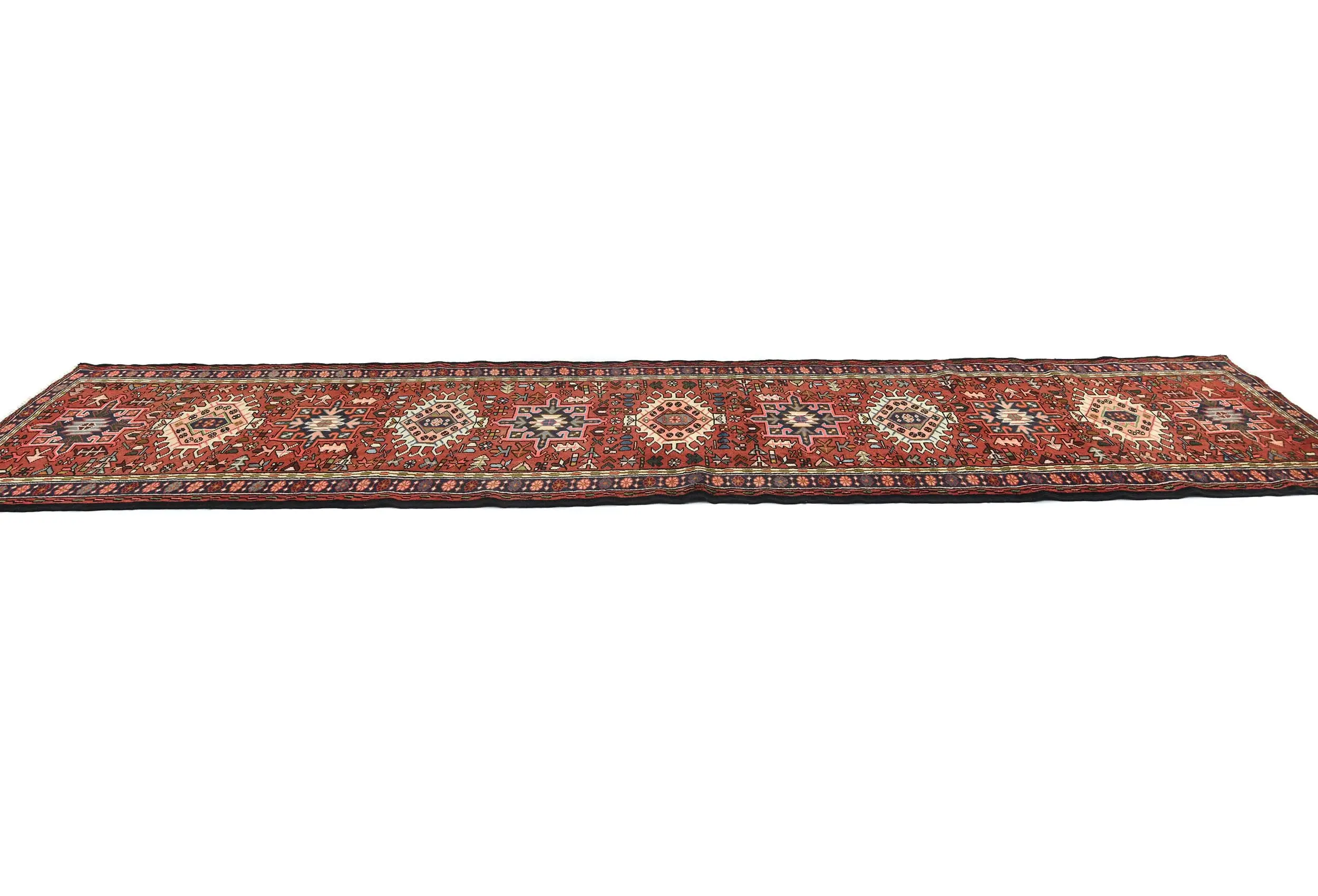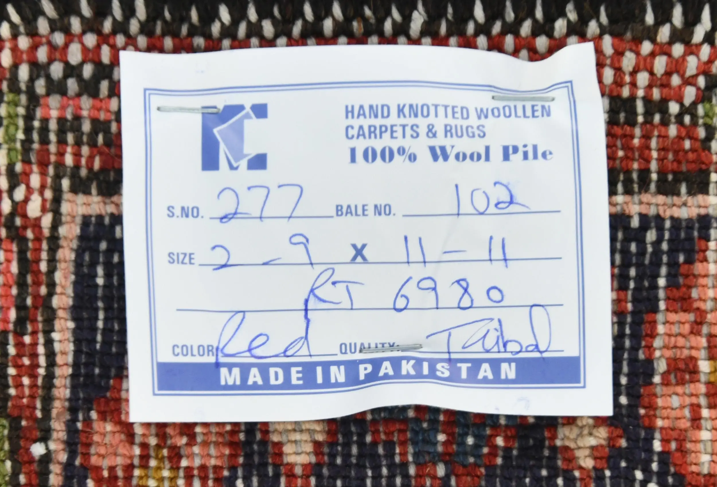 Hand Knotted 3X12 red Persian runner made with vegetable dyes (fine wool pile and cotton foundation), exceptional knot count, and appealing ancient designs. This Oriental runner never will go out of style and would be among your most valuable treasures.
