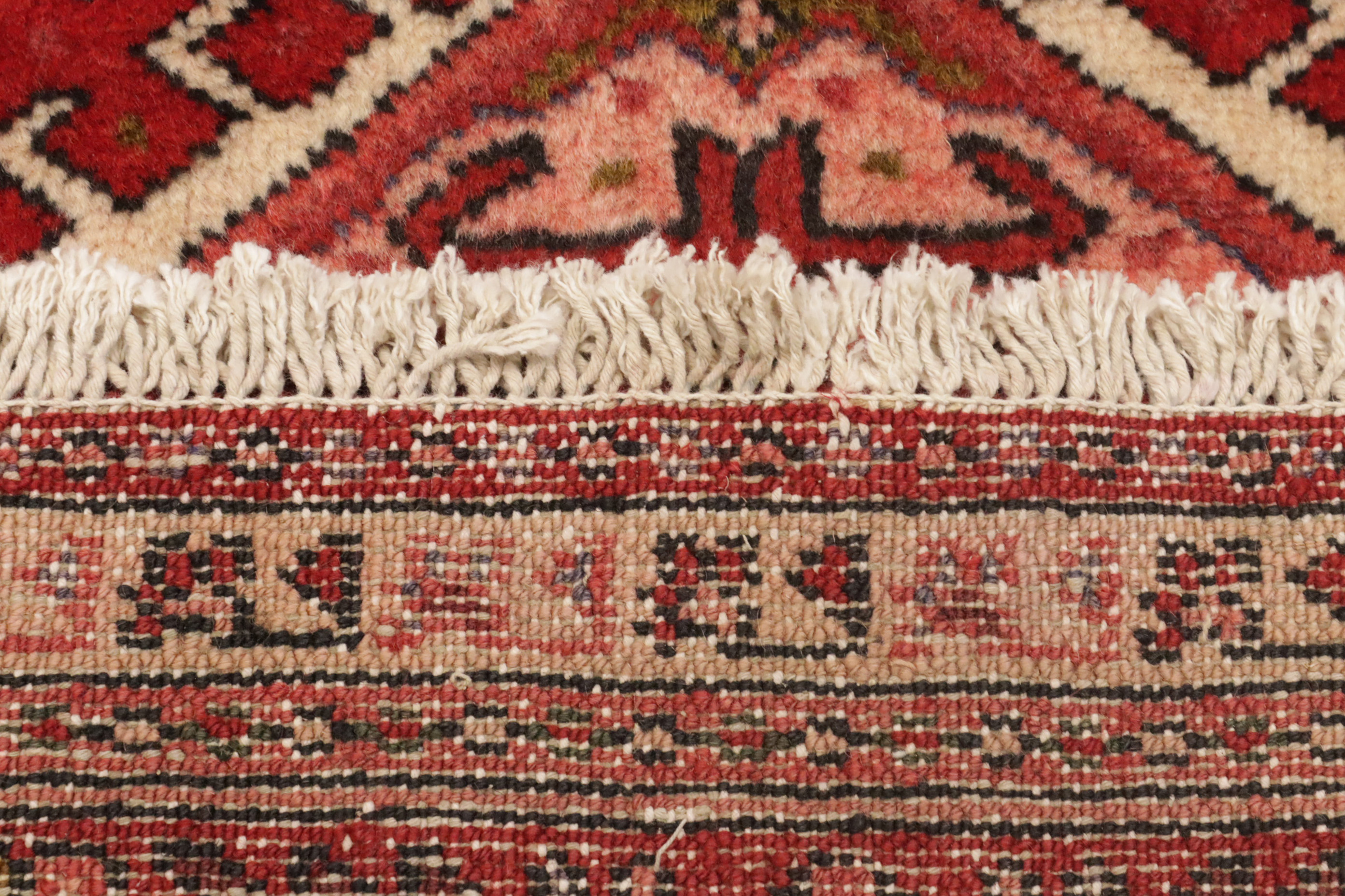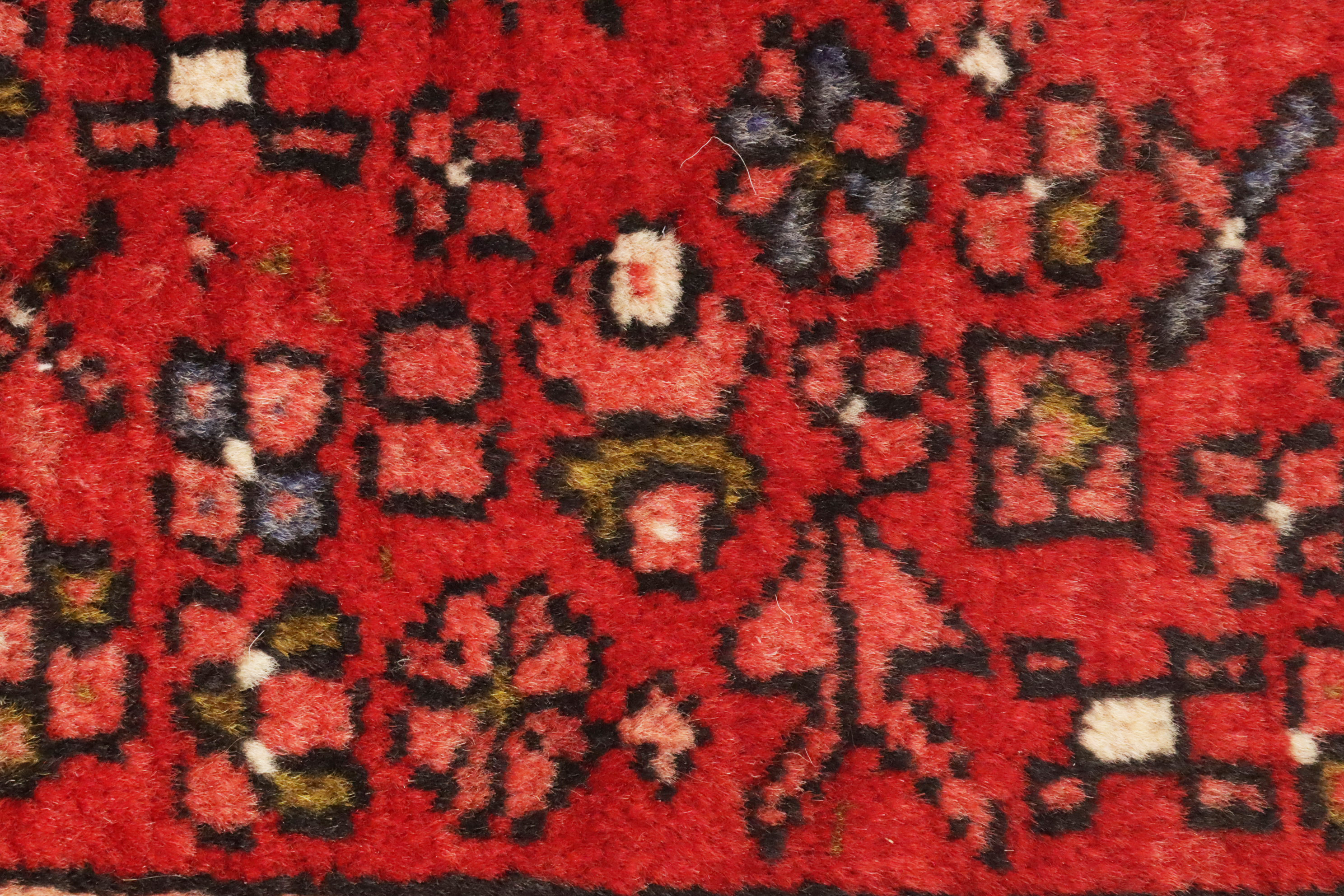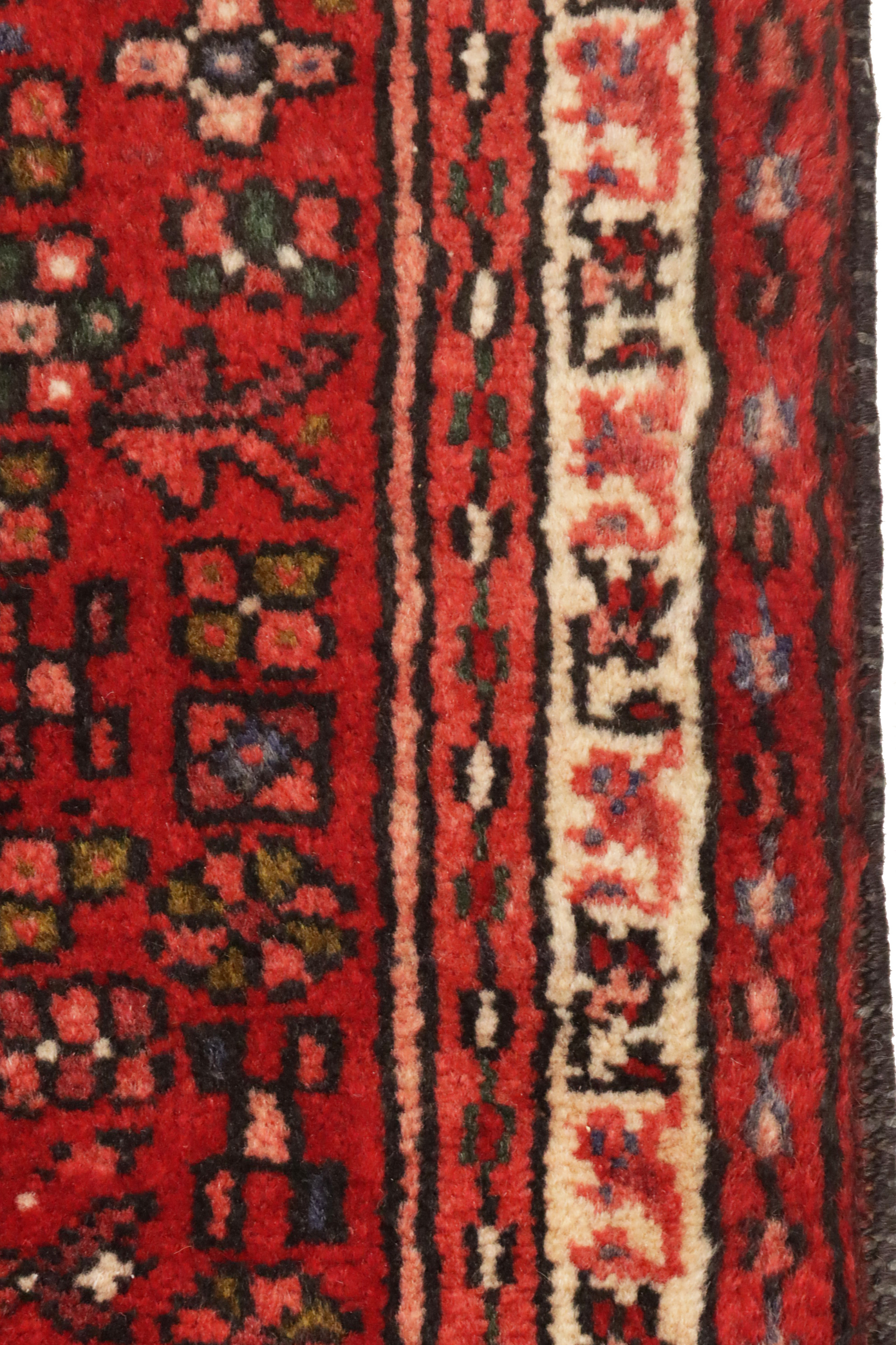 Hand Knotted vintage 3X13 red Persian runner made with vegetable dyes (fine wool pile and cotton foundation), superior knot count, and appealing ancient designs. This Oriental runner never will go out of style and would be among your most valuable treasures.
