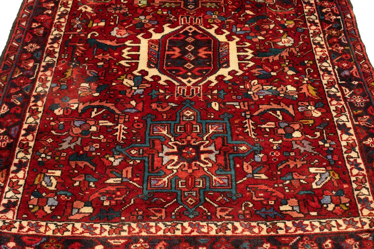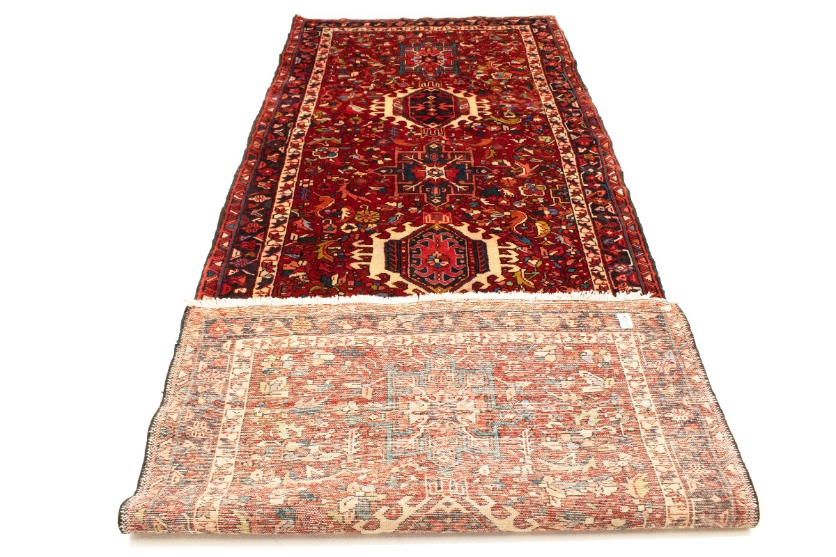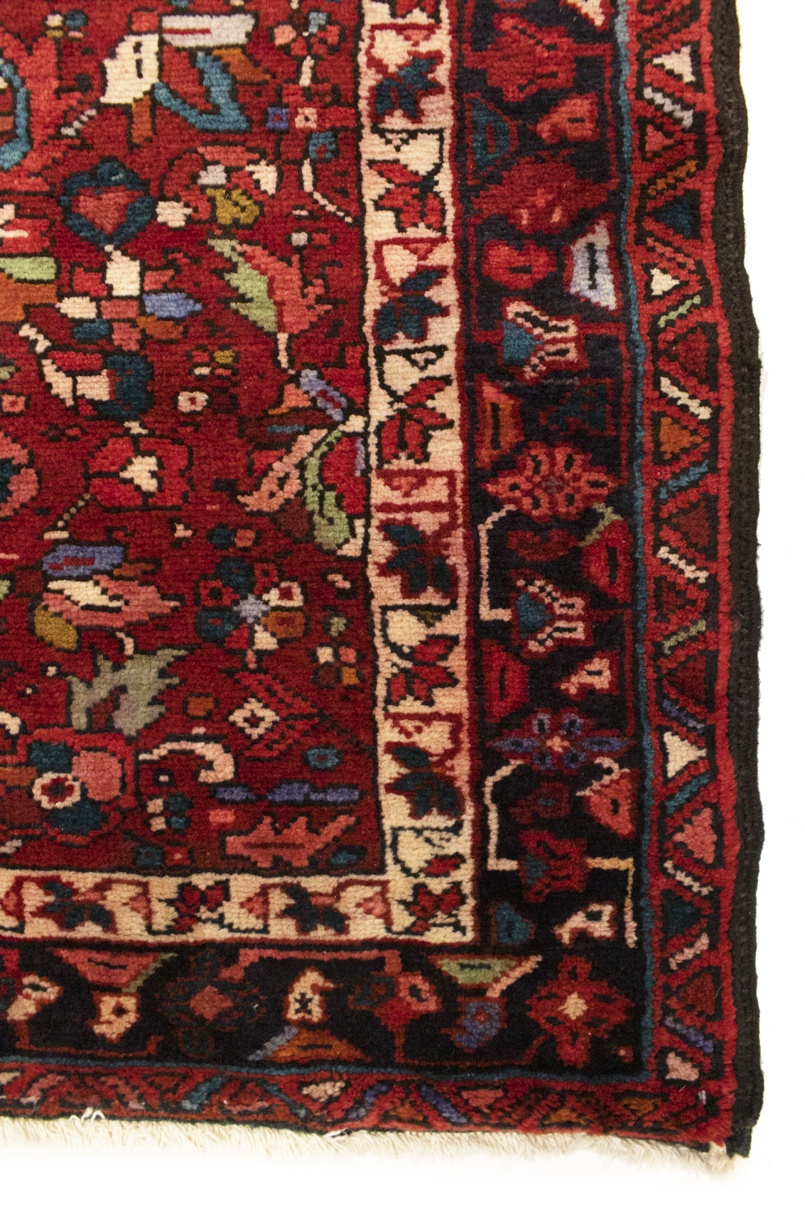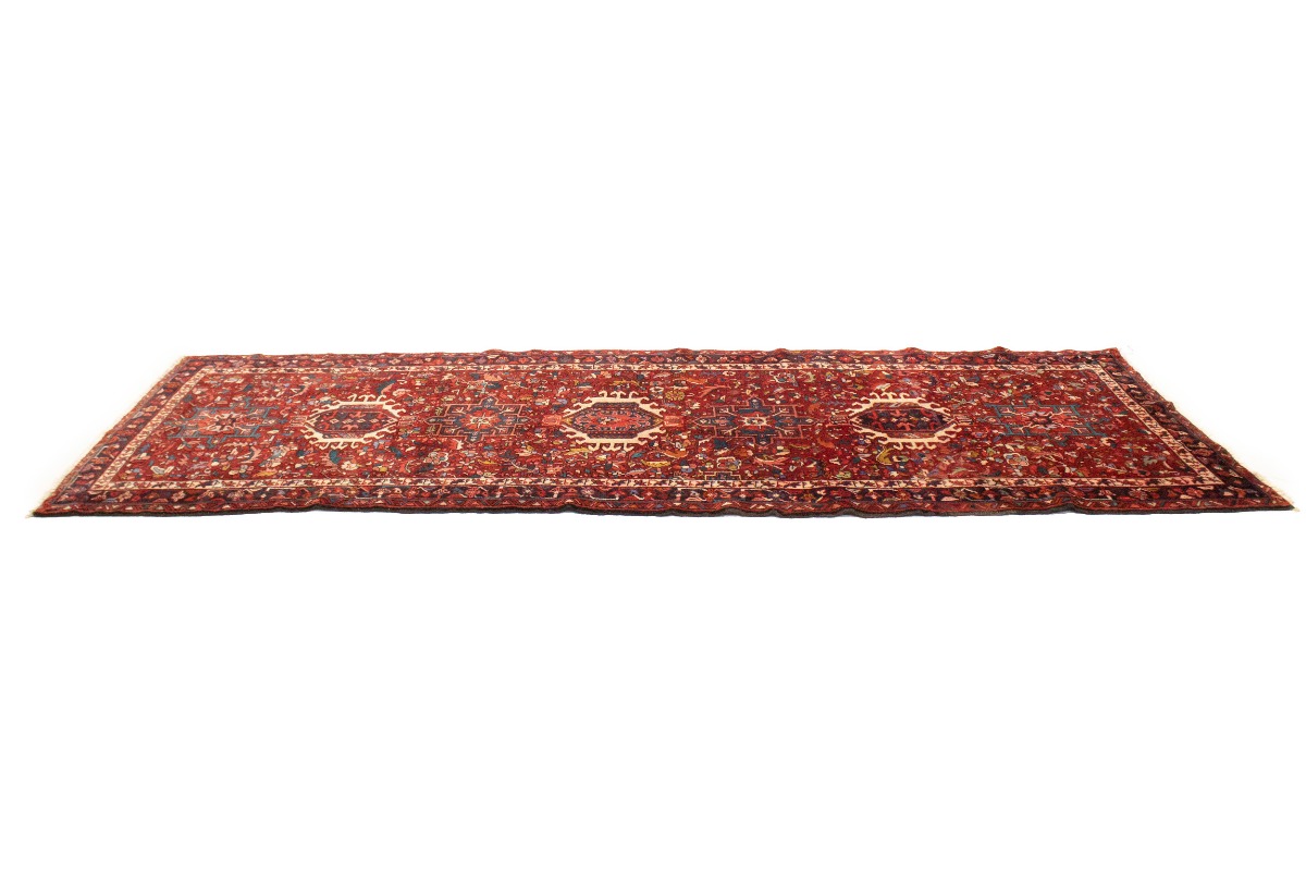 Handmade semi antique 4X11 red Persian runner made with vegetable dyes (fine wool pile and cotton foundation), superior knot count, and alluring ancient designs. This Oriental runner never will go out of style and would be among your most valuable treasures.