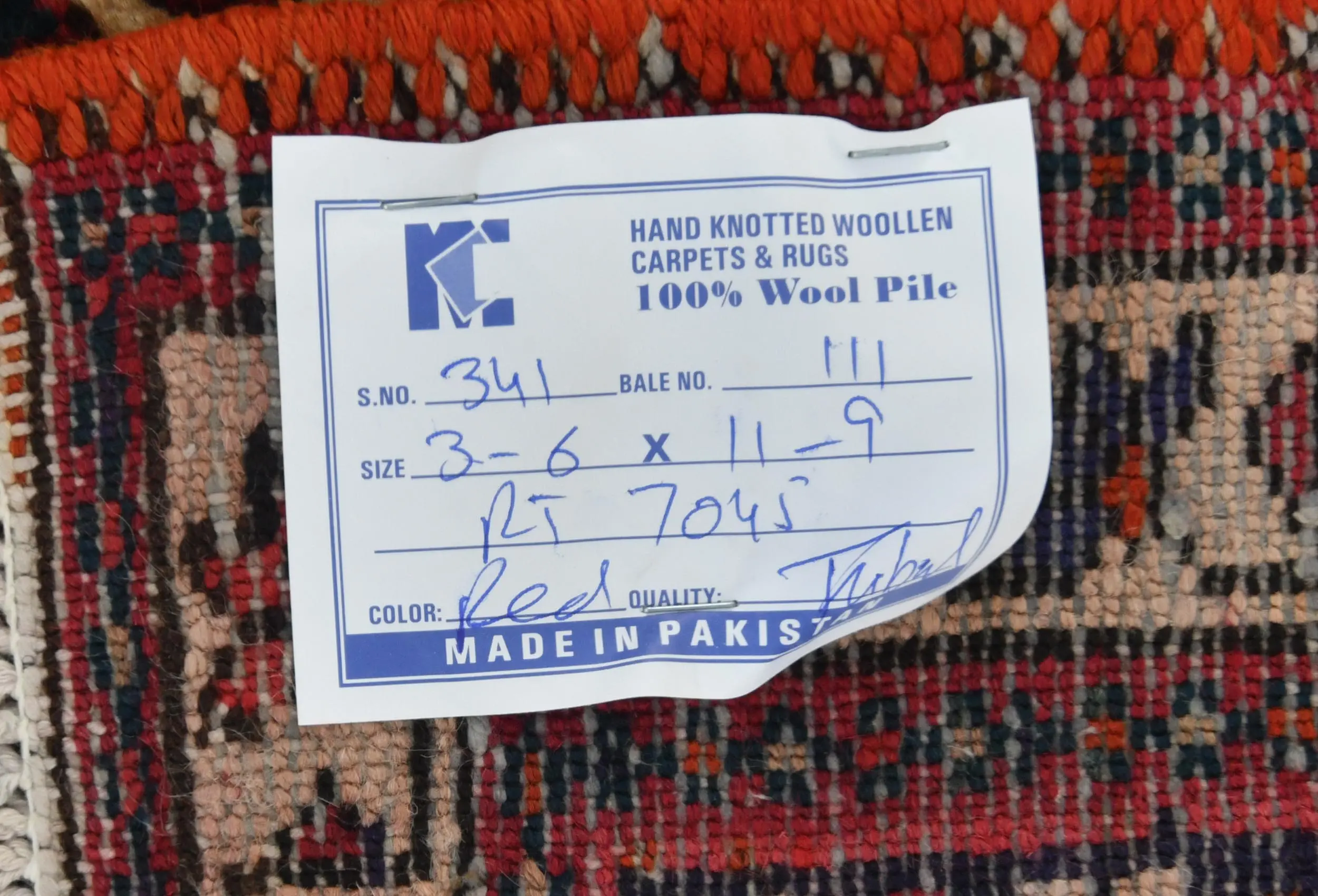 Hand Knotted vintage 4X12 Red Persian runner made with vegetable dyes (fine wool pile and cotton foundation), superior knot count, and appealing ancient designs. This Oriental runner never will go out of style and would be among your most valuable treasures.