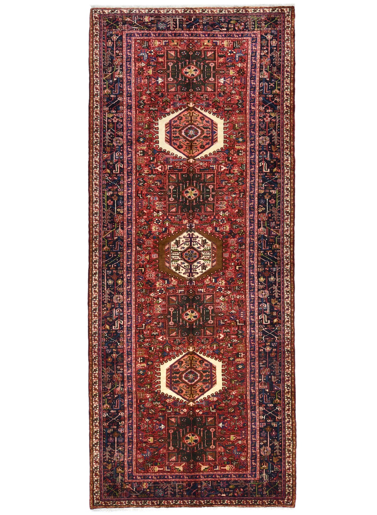 Vintage Red Geometric 5X13 Karajeh Persian Runner Rug