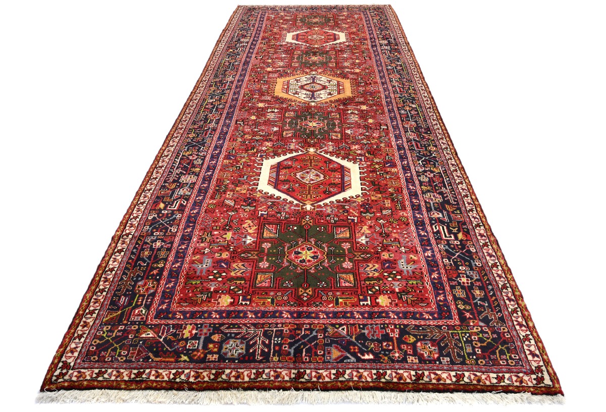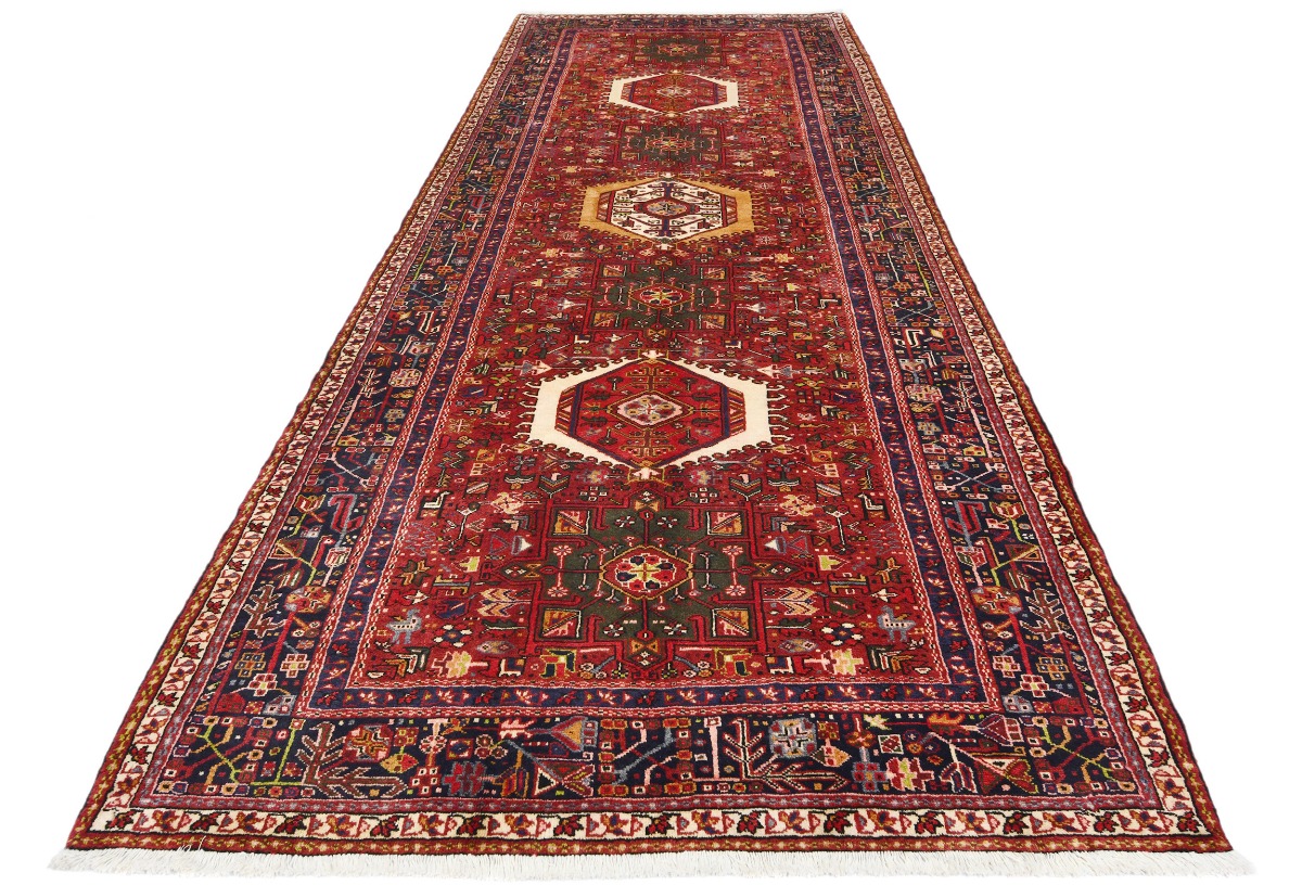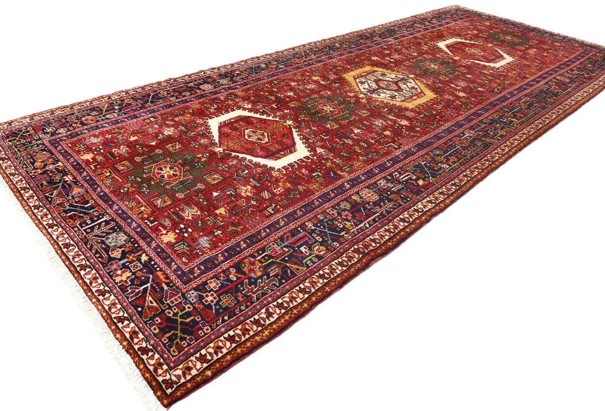 Handmade vintage 5X13 red Persian runner made with vegetable dyes (fine wool pile and cotton foundation), superior knot count, and alluring ancient designs. This Oriental runner never will go out of style and would be among your most valuable treasures.
