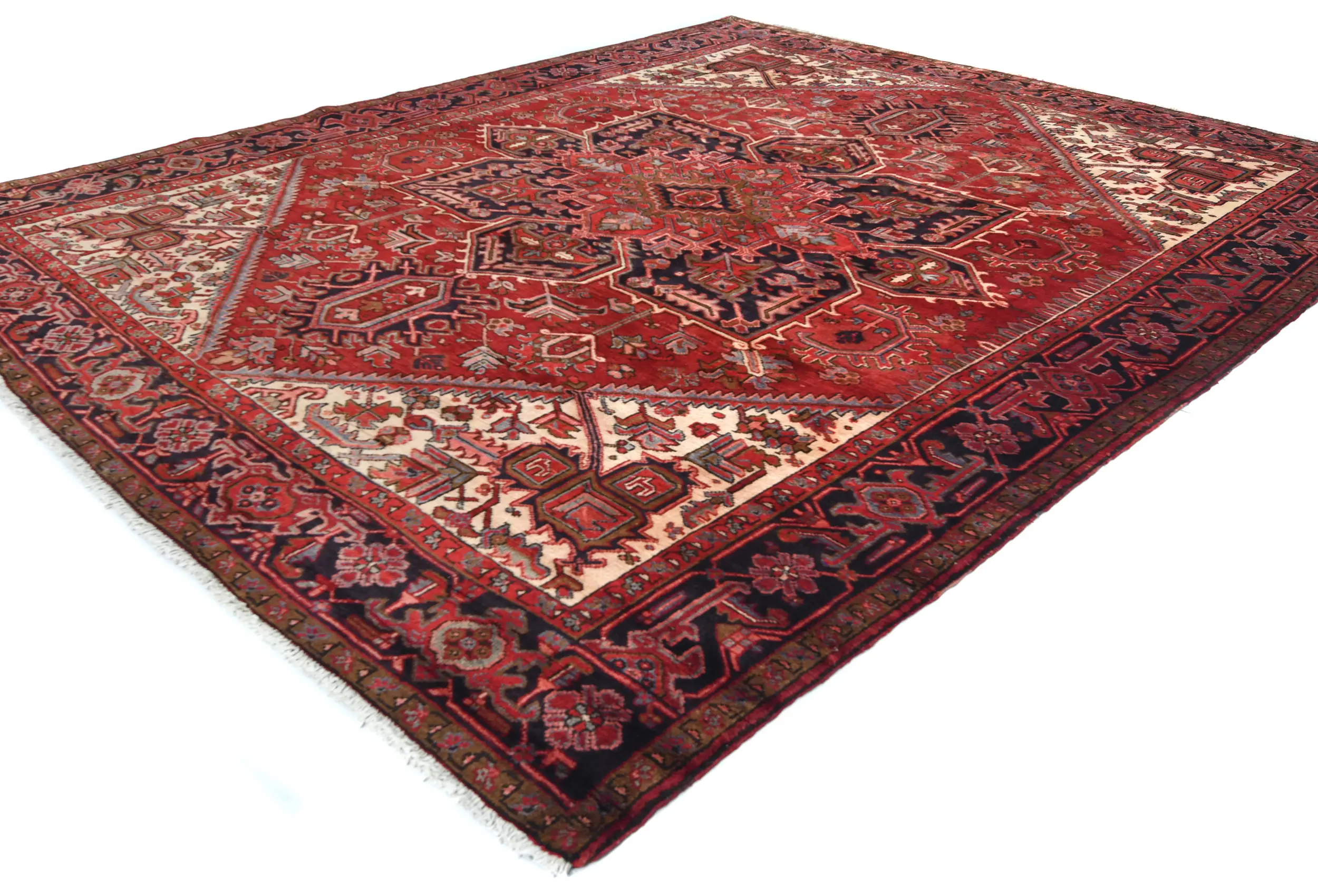 Vintage Red Geometric Traditional 9X11 Heriz Persian Rug