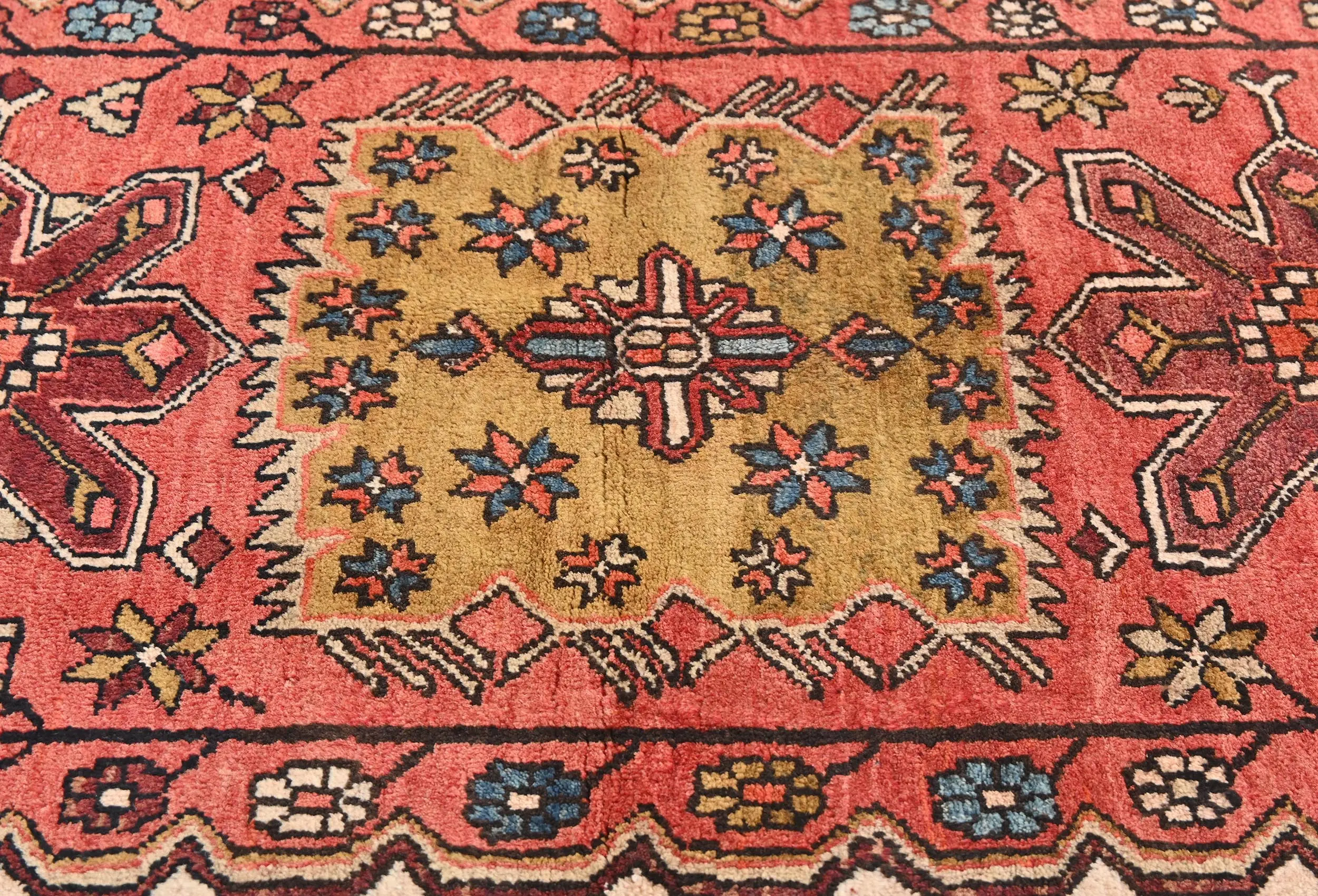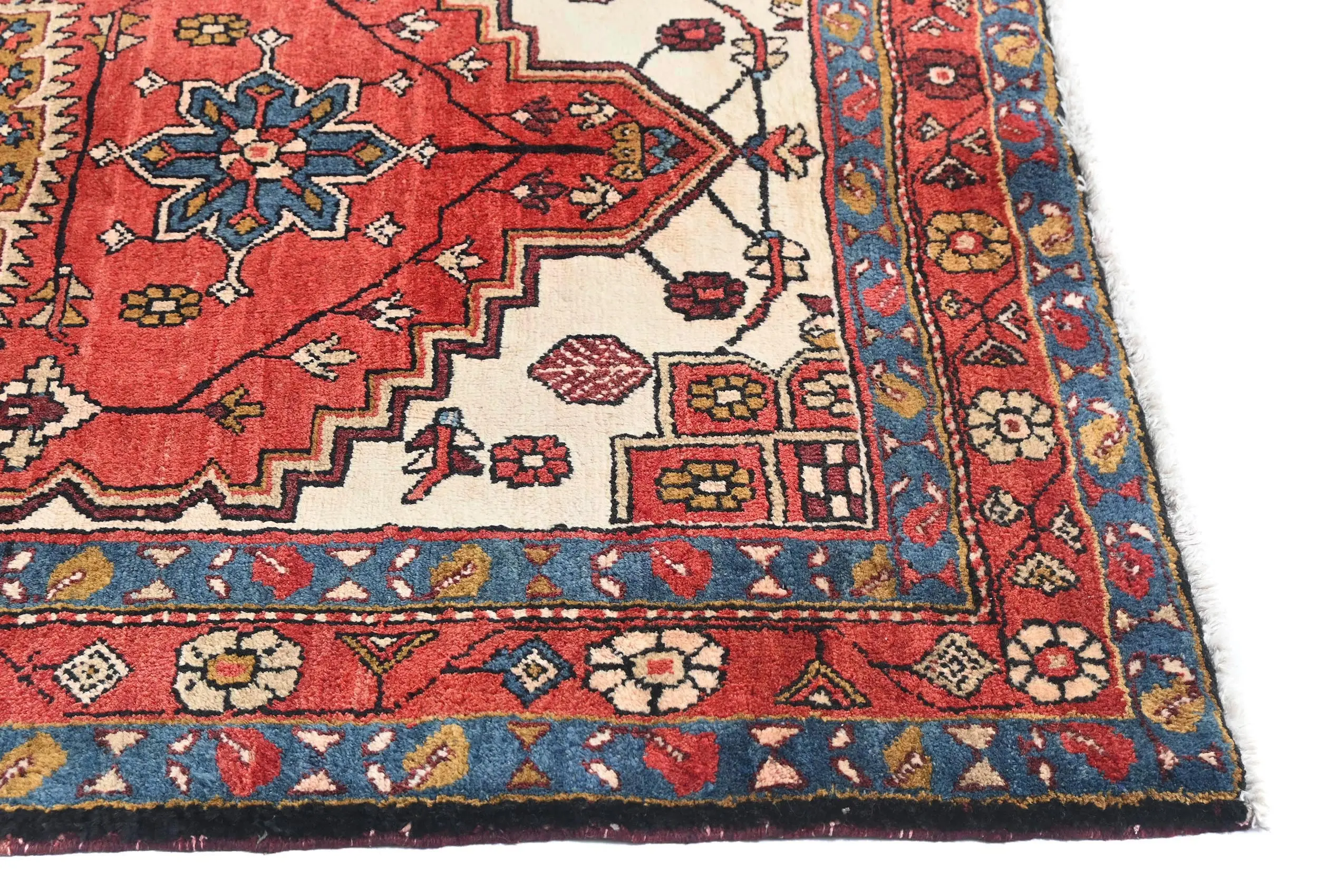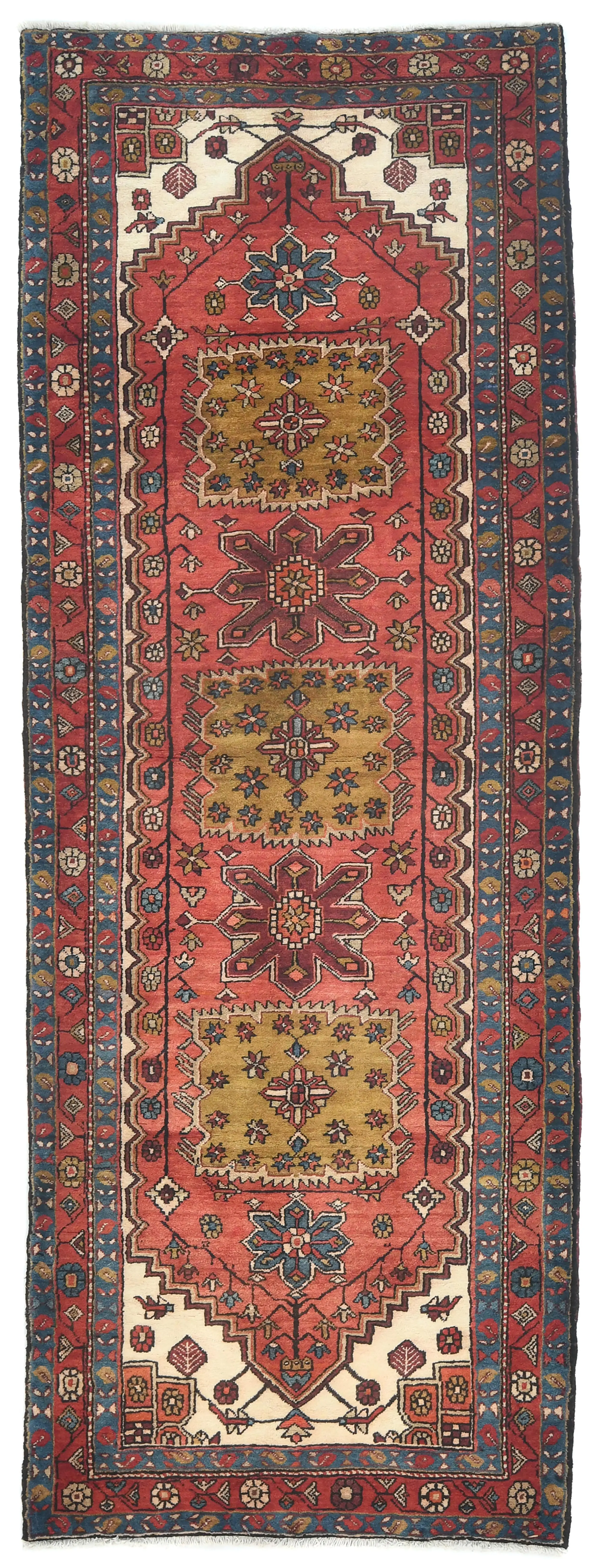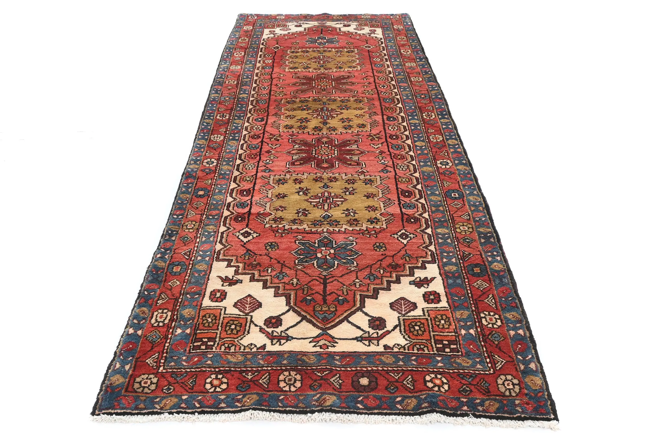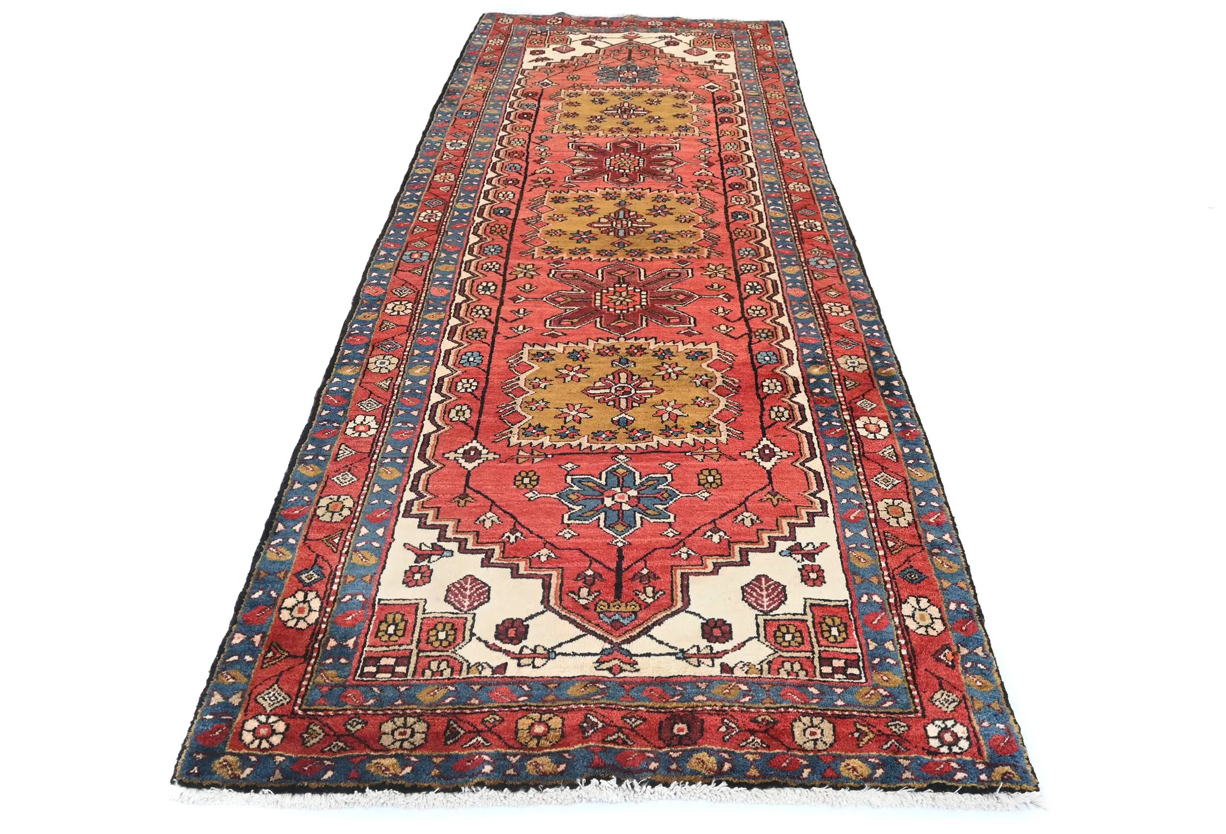 Vintage Red Geometric Tribal 4X11 Heriz Persian Runner Rug