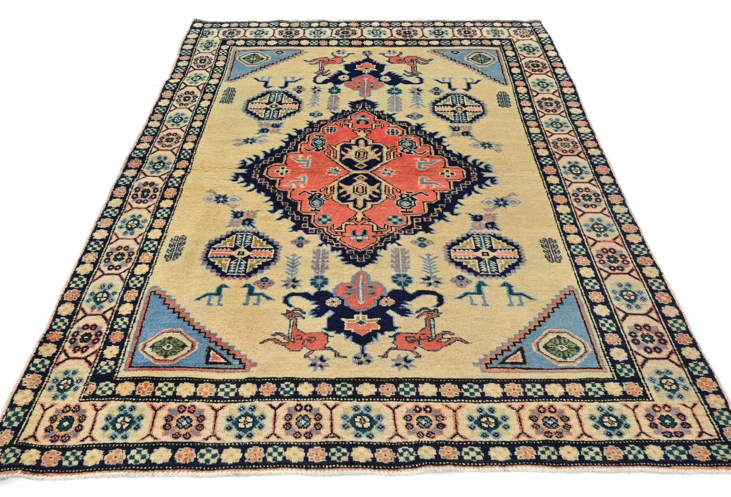 Handmade vintage 4X6 cream Persian rug made with vegetable dyes (fine wool pile and cotton foundation), superior knot count, and alluring ancient designs. This Oriental rug never will go out of style and would be among your most valuable treasures.