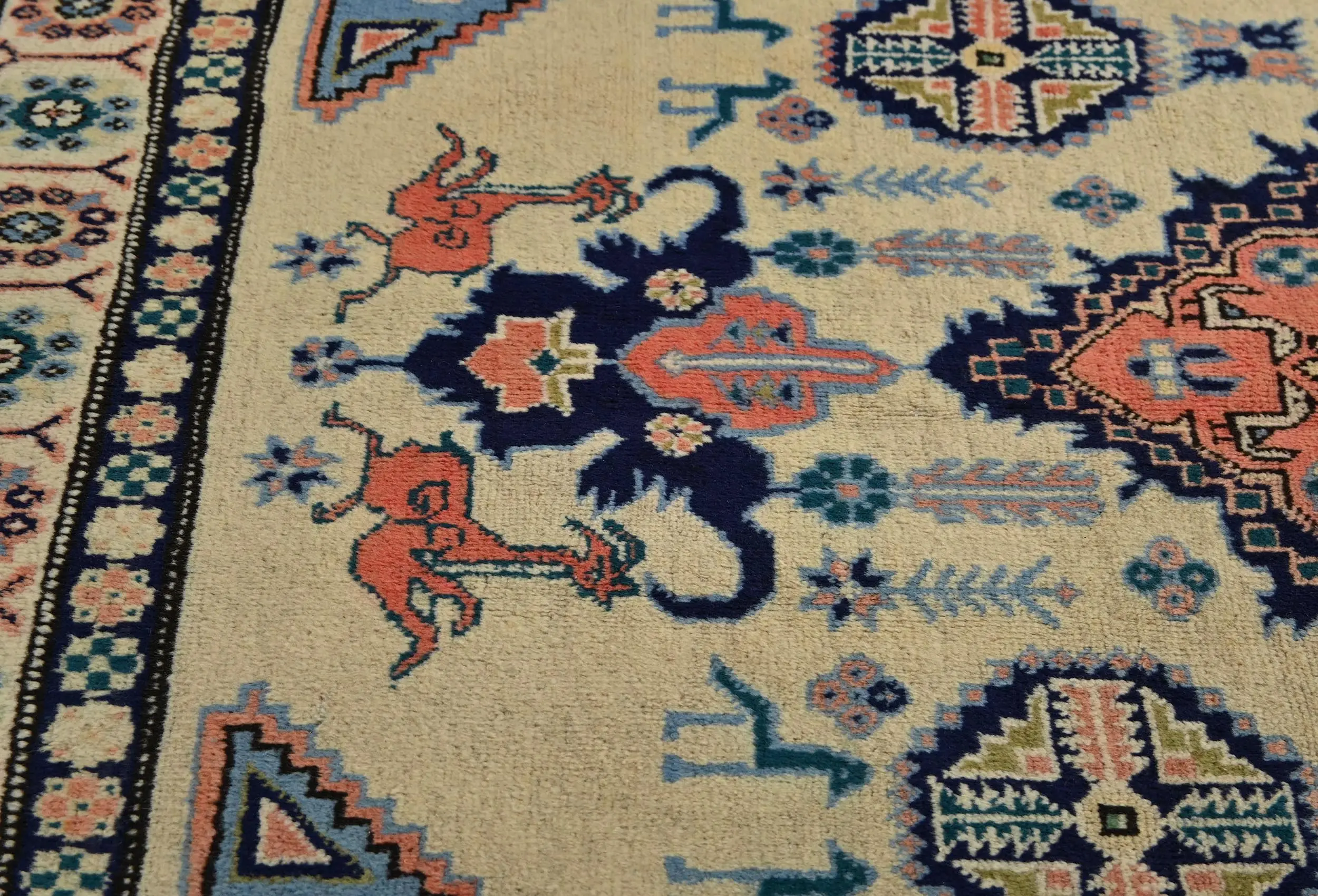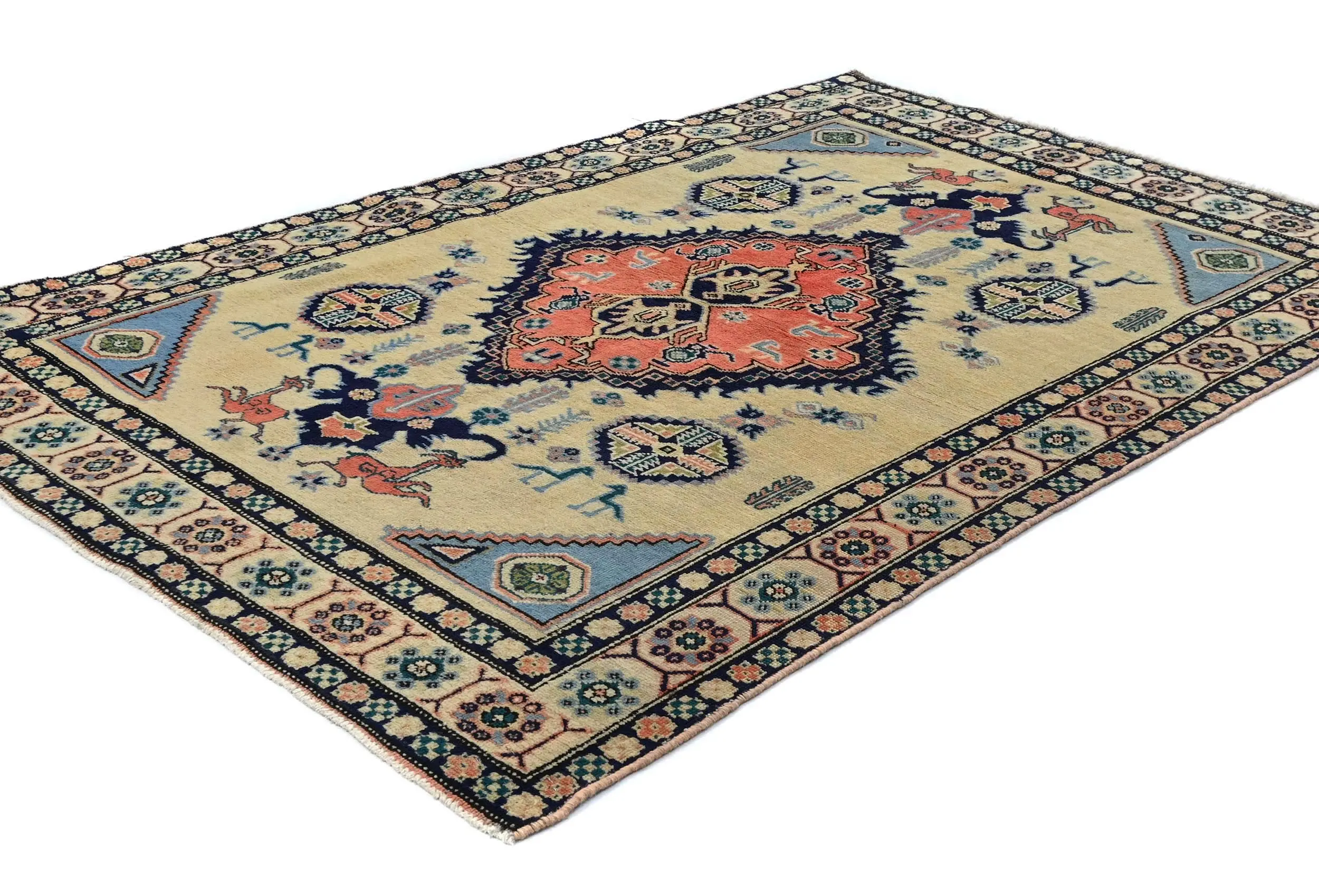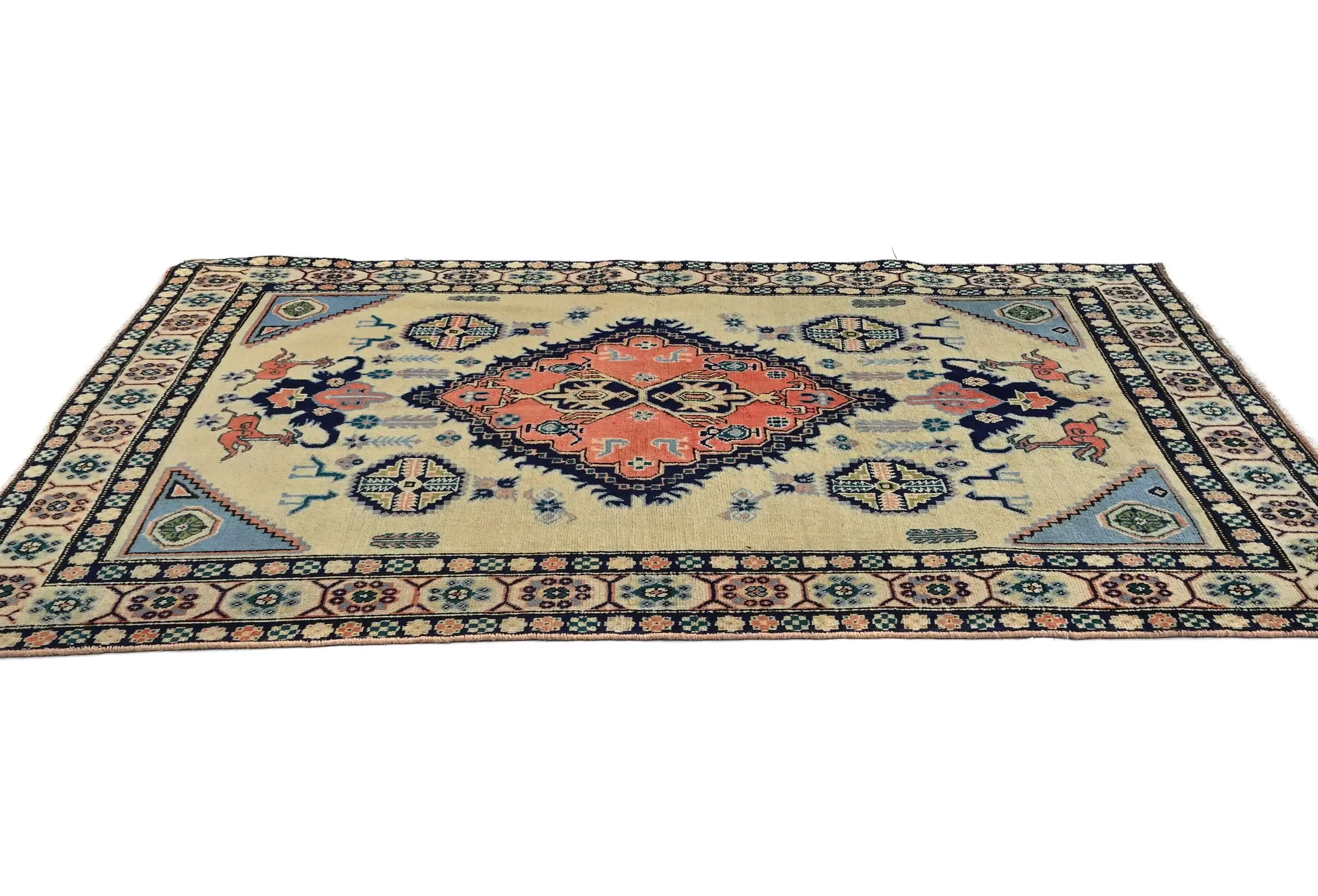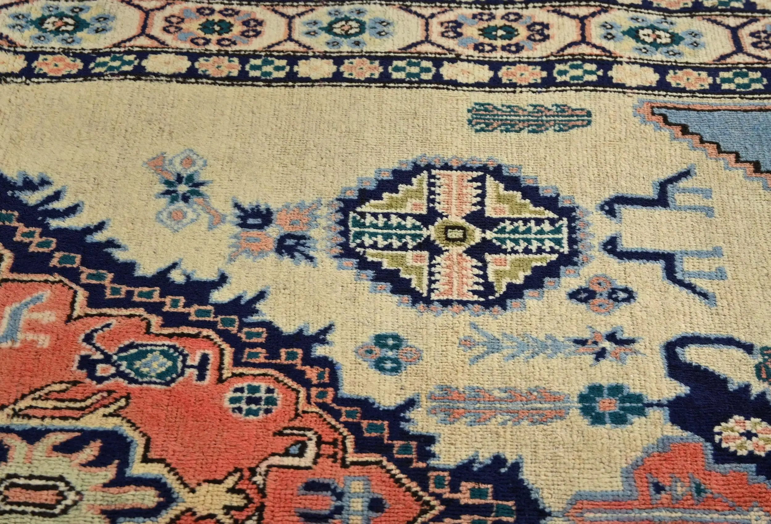 This authentic 4X6 cream vintage Persian rug was finely knotted by the hands of weavers influenced by a variety of amazing artistic designs, to recreate the aged look of the exceptional piece with a richness of color and embellished floral background field. What set this traditional Oriental area rug from the others are the material and dye used (wool pile and cotton foundation), knot count, antique designs, fantastic grades, and its regional historical connection: it has deep roots, from the story of the people who produced it to the meaning of the symbols and colors displayed across its canvas that have been praised for centuries. This classic home décor carpet will be completely cozy and inviting that never will go out of style! Also, this Oriental rug would be among your most valuable treasures, it is a great investment that increase in value over time, and it will last a lifetime because was woven with high-quality, all-natural wool; it won’t rip, tear, or shed. Eco-friendly, opulent yet affordable; this Persian rug will give you an extra pop of character to help define your home environment with luxury and warmth that will capture the eyes and attention of your audience (homeowners, designers, decorators, family and friends). RT-7075