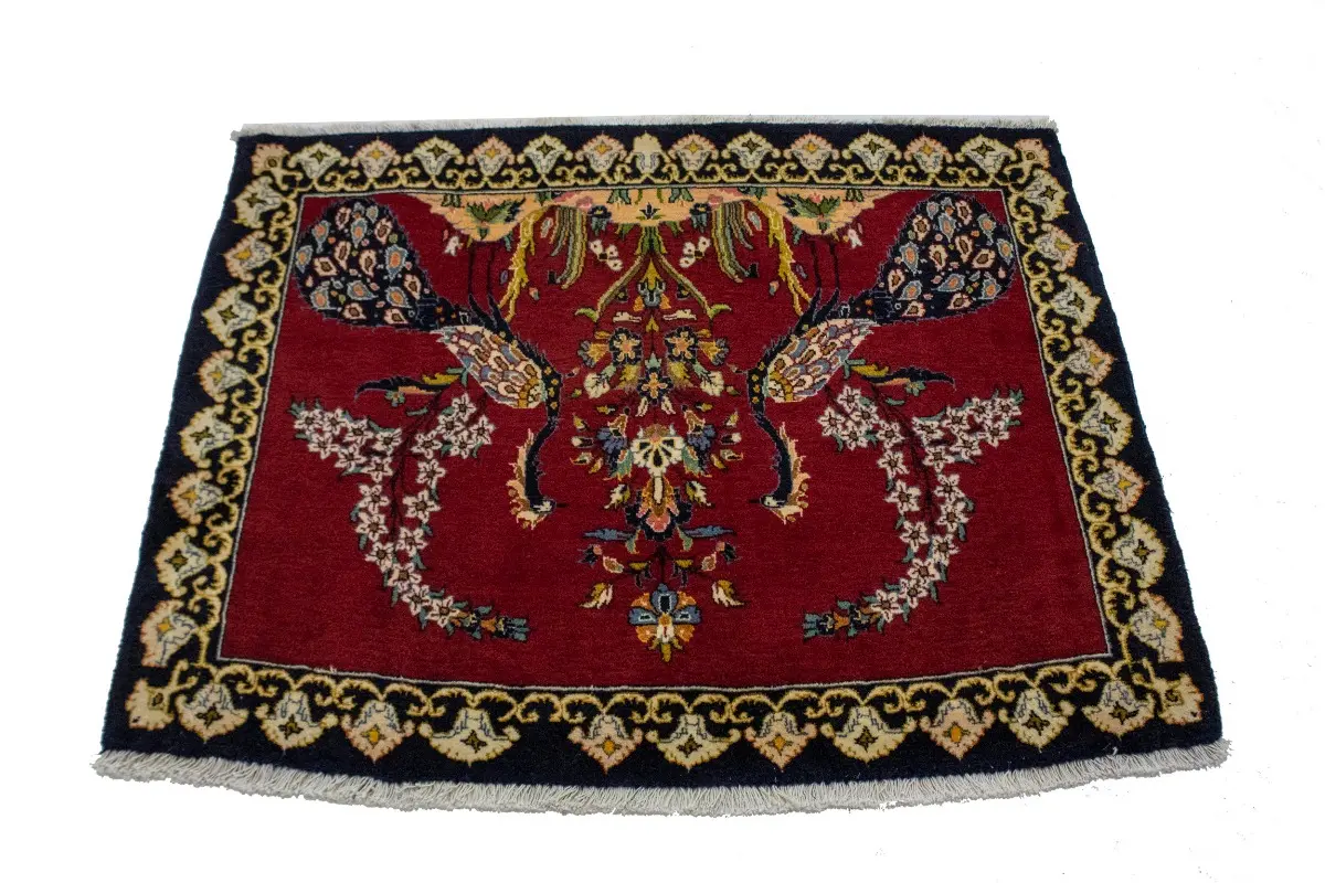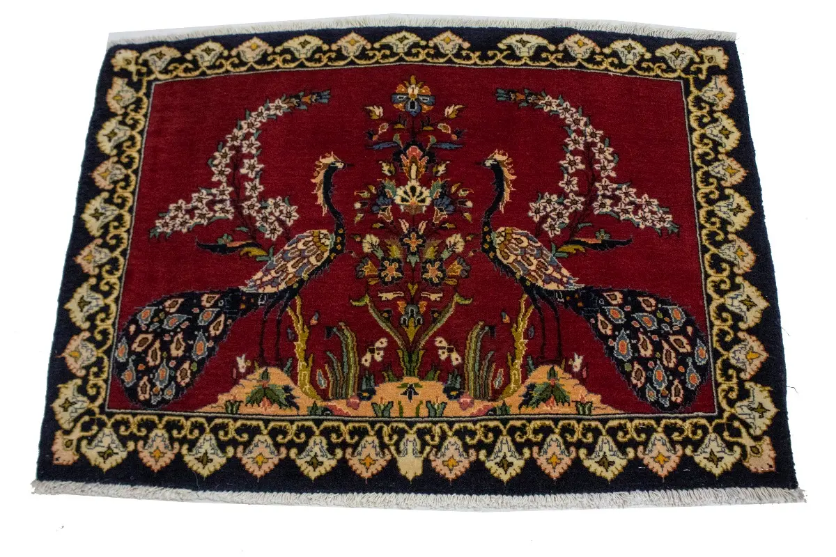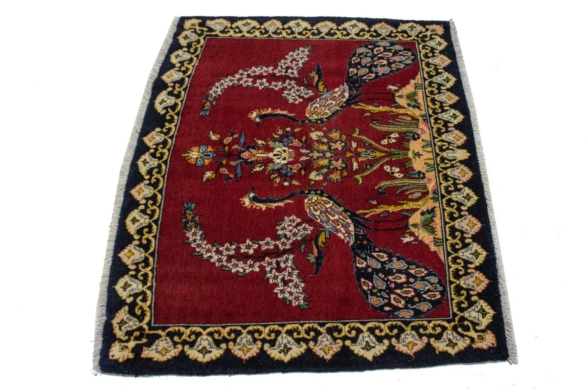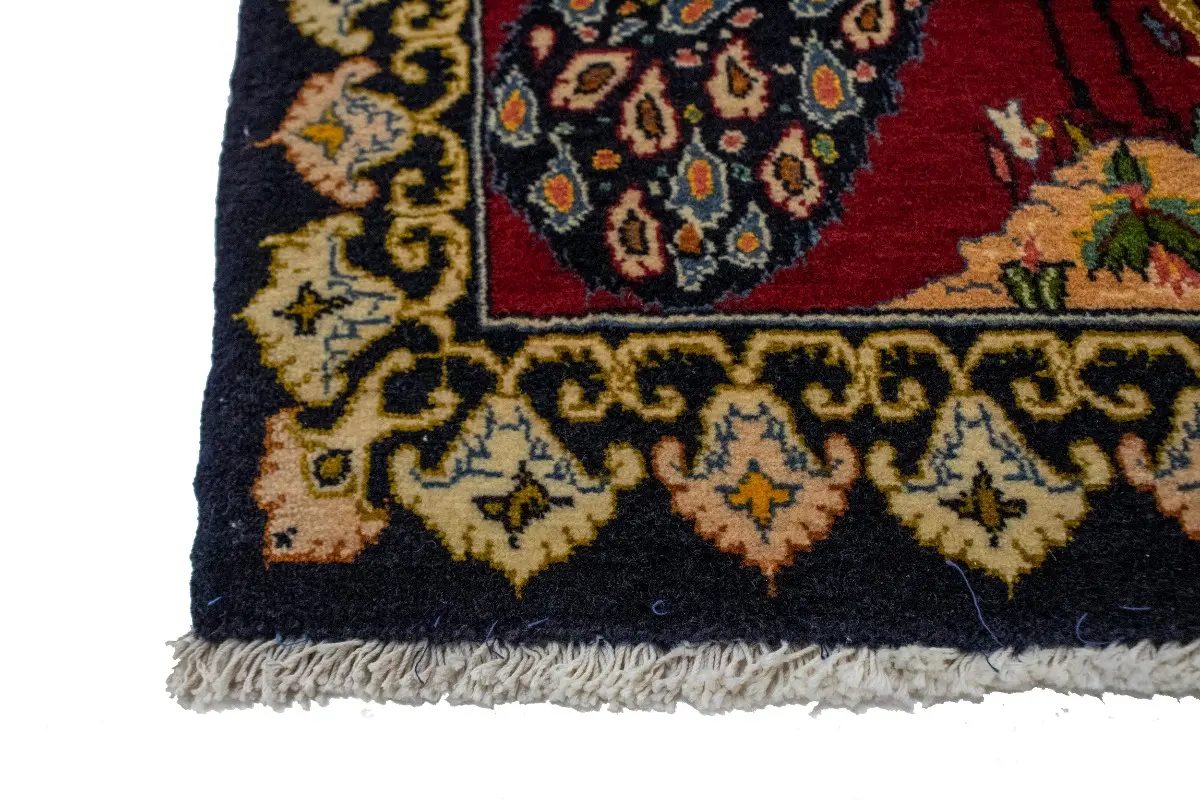 Vintage Red Pictorial 3X4 Kashan Persian Rug
