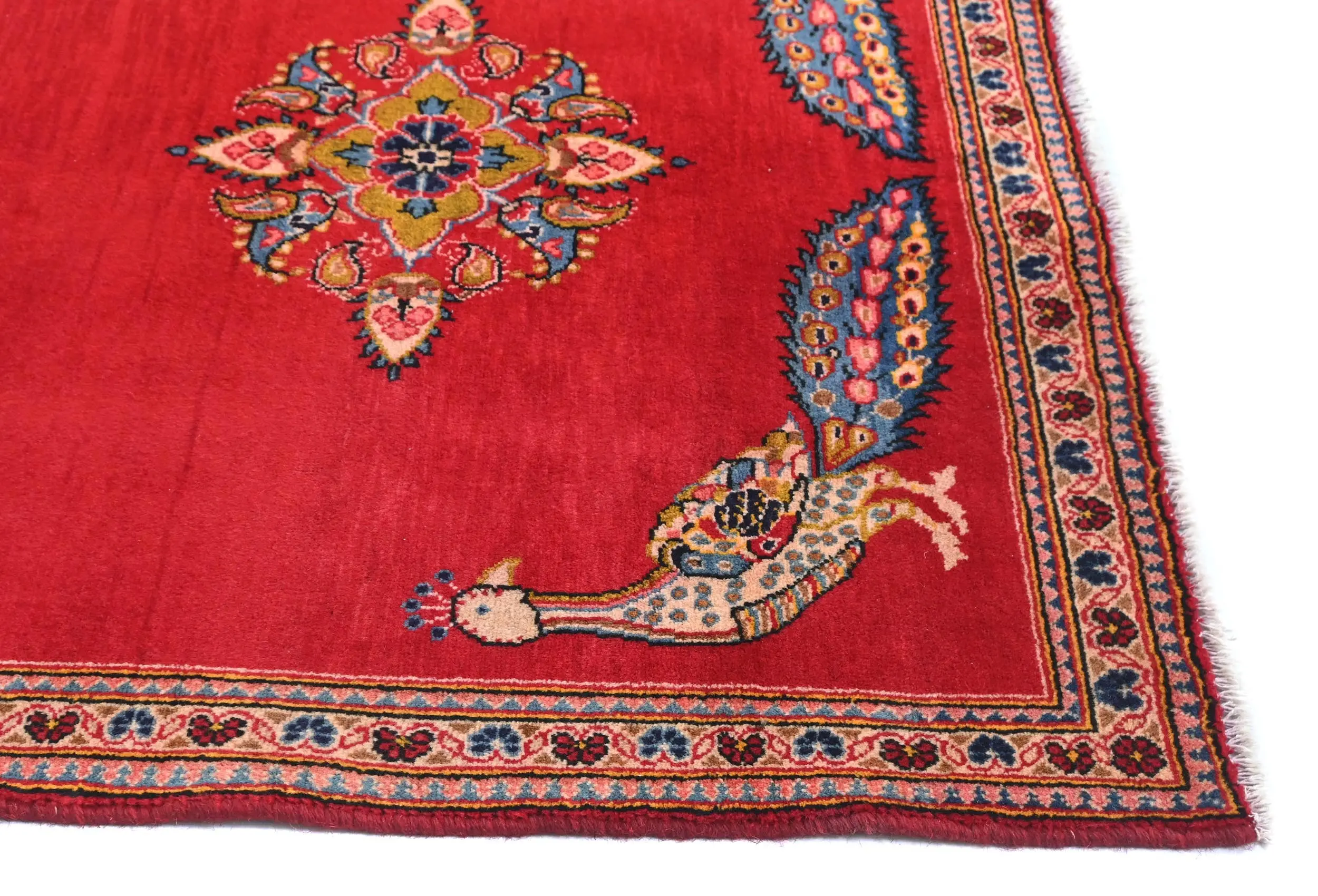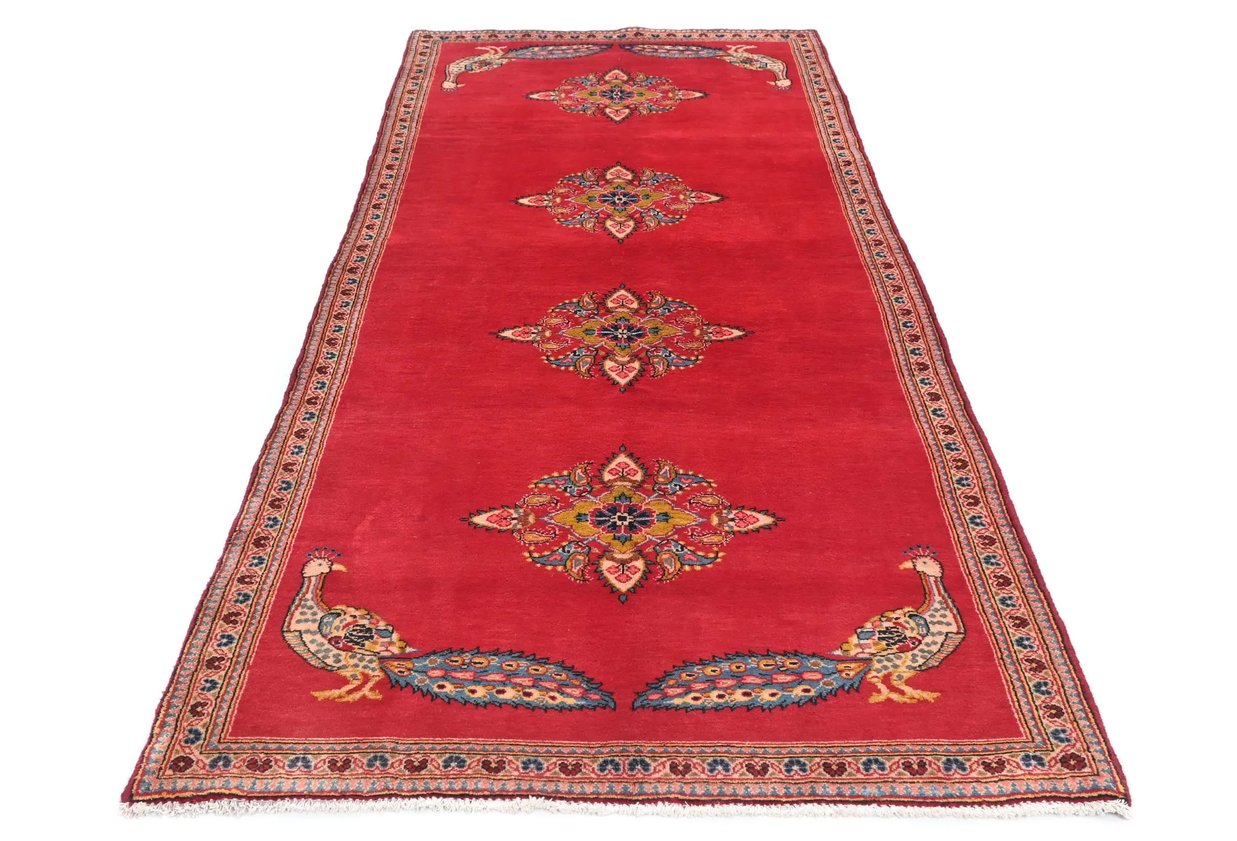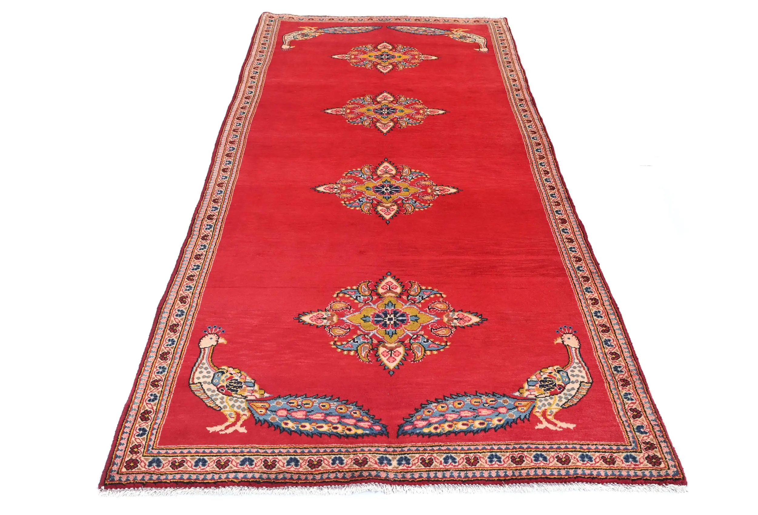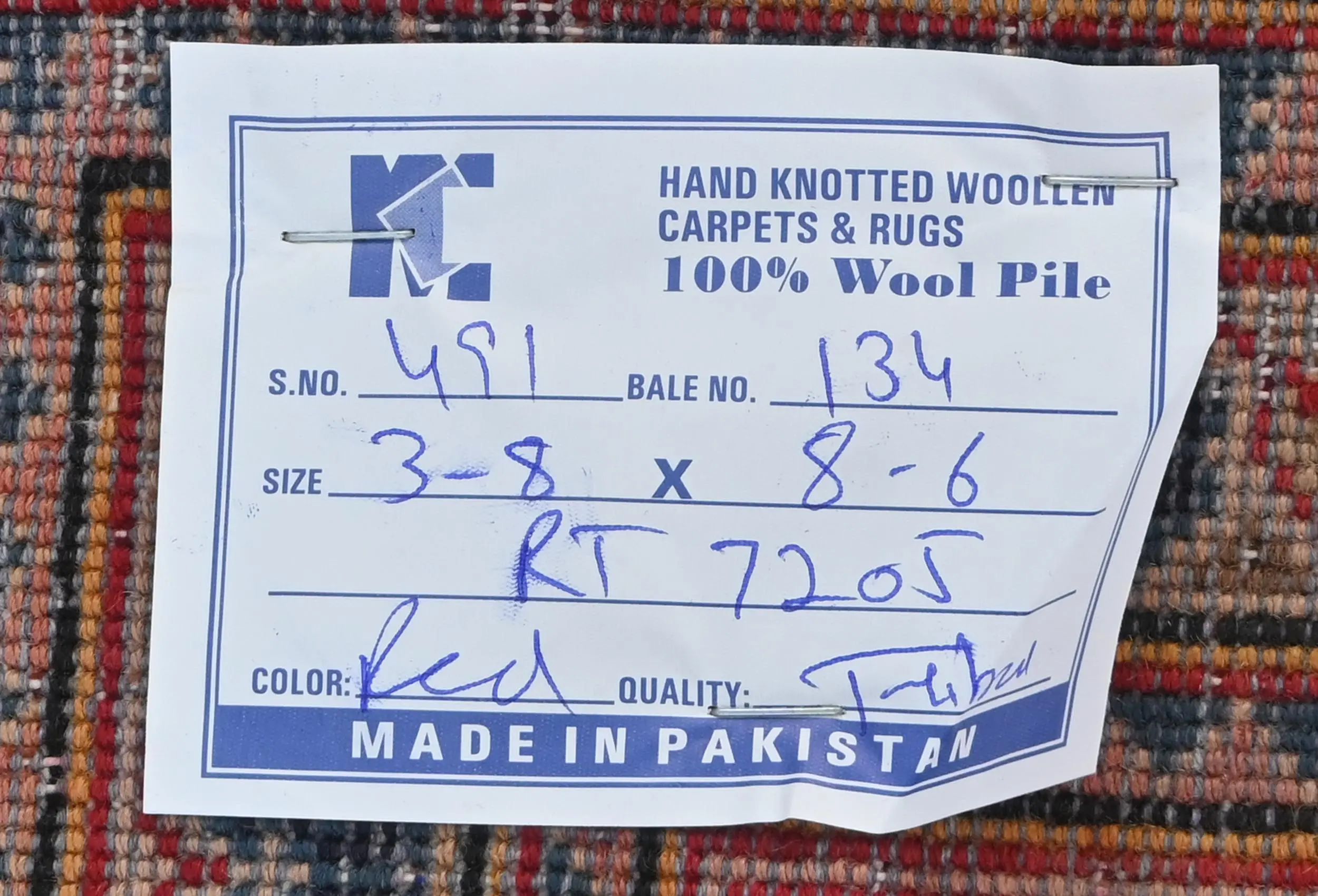 Handmade vintage 3'8X8'6 Red Persian rug made with vegetable dyes (fine wool pile and cotton foundation), superior knot count, and alluring ancient designs. This Oriental rug never will go out of style and would be among your most valuable treasures.