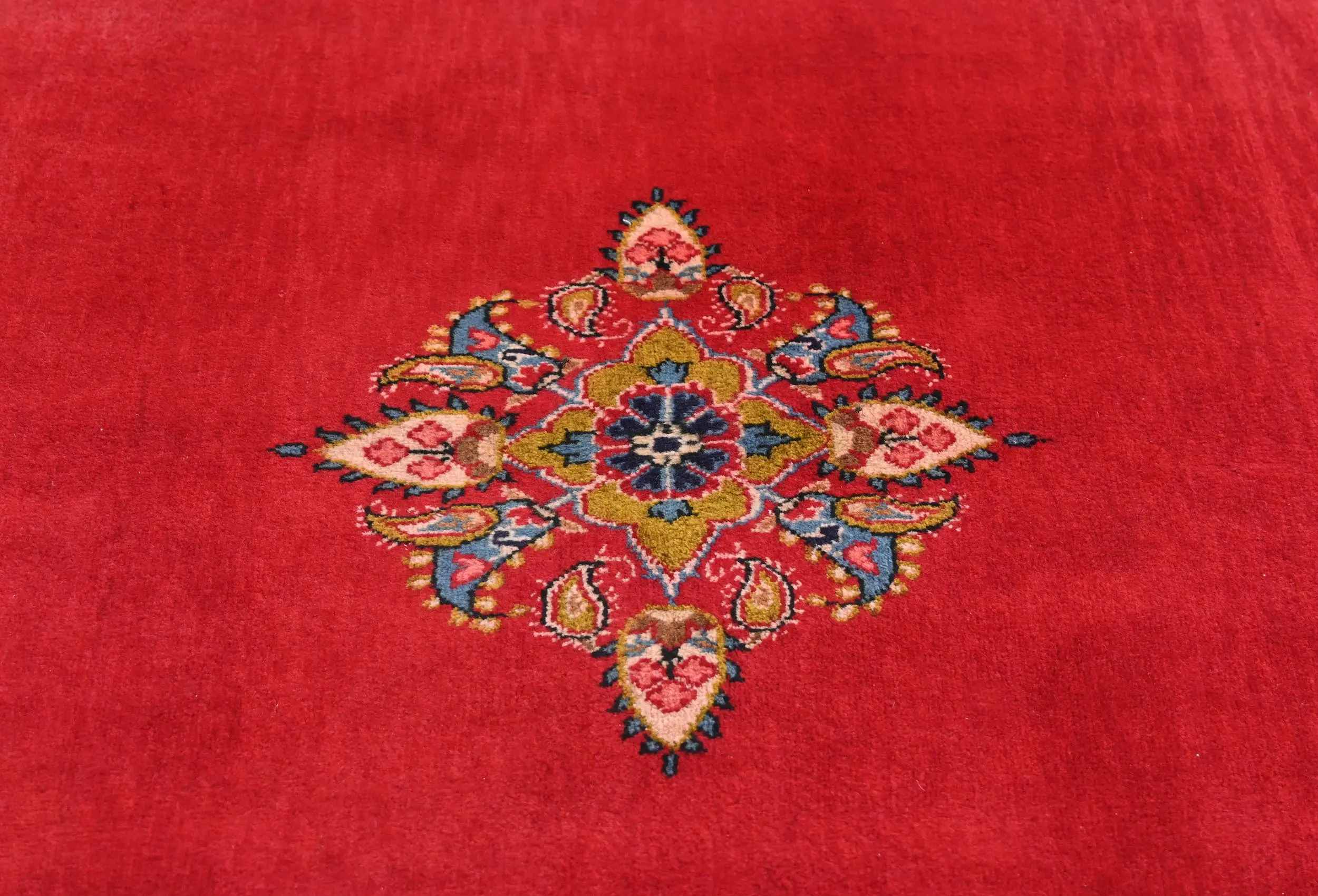 This authentic 3'8X8'6 Red vintage Persian rug was finely knotted by the hands of weavers influenced by a variety of amazing artistic designs, to recreate the aged look of the exceptional piece with a richness of color and embellished floral background field. What set this traditional Oriental area rug from the others are the material and dye used (wool pile and cotton foundation), knot count, antique designs, fantastic grades, and its regional historical connection: it has deep roots, from the story of the people who produced it to the meaning of the symbols and colors displayed across its canvas that have been praised for centuries. This classic home décor carpet will be completely cozy and inviting that never will go out of style! Also, this Oriental rug would be among your most valuable treasures, it is a great investment that increase in value over time, and it will last a lifetime because was woven with high-quality, all-natural wool; it won’t rip, tear, or shed. Eco-friendly, opulent yet affordable; this Persian rug will give you an extra pop of character to help define your home environment with luxury and warmth that will capture the eyes and attention of your audience (homeowners, designers, decorators, family and friends). RT-7205