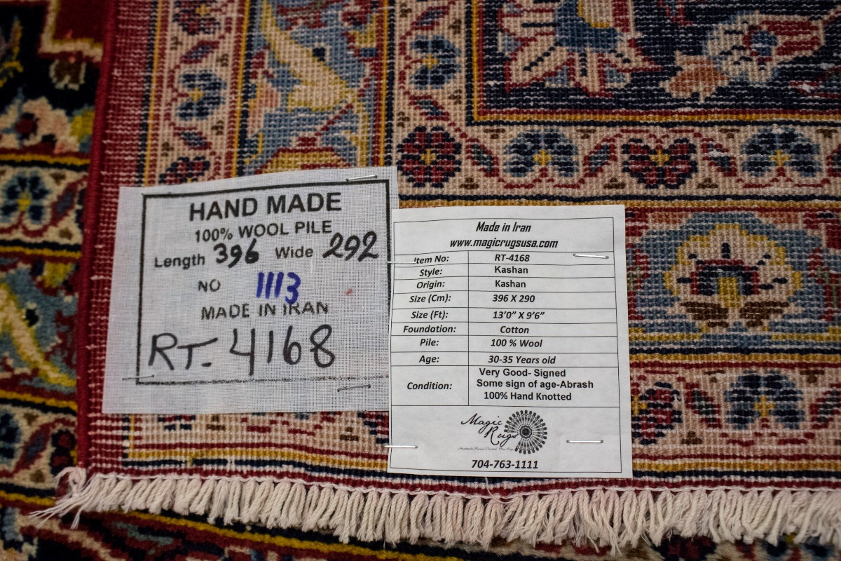 Vintage Red Traditional 10X13 Kashan Persian Rug