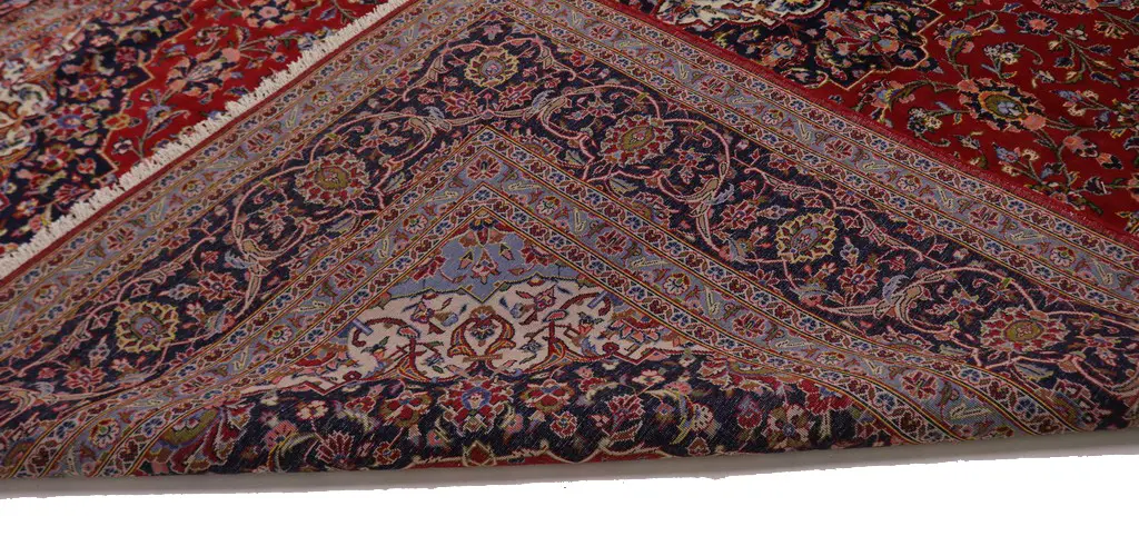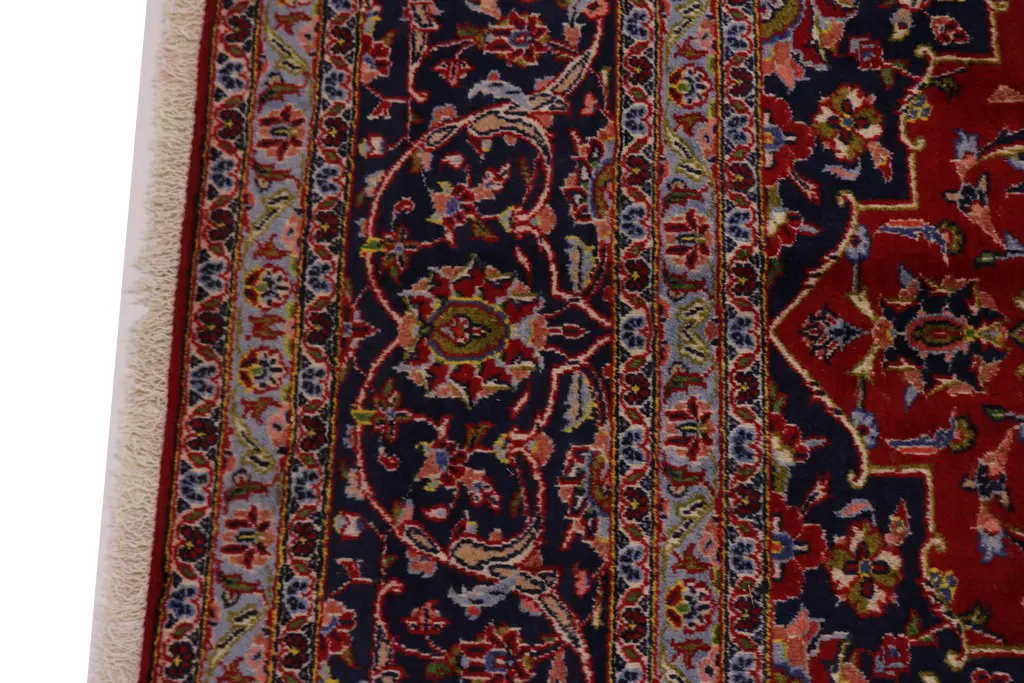 Handmade 10X13 red traditional design Kashan Persian rug made with natural dyes (fine wool pile and cotton foundation), superior knot count, and appealing ancient designs. This Oriental rug never will go out of style and would be among your most valuable treasures.