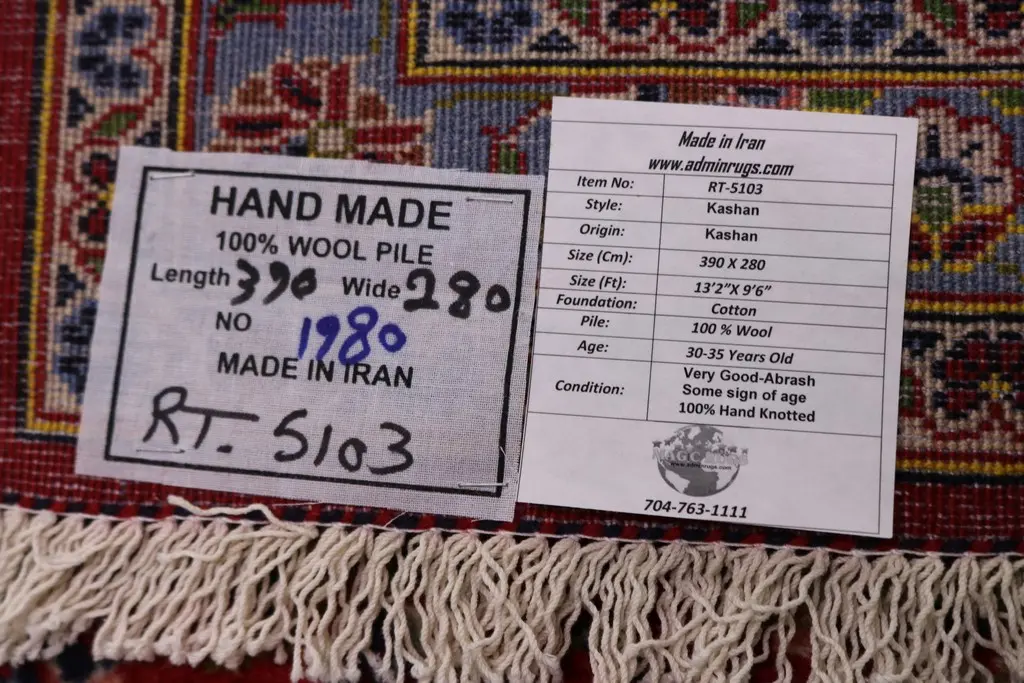 Vintage Red Traditional 10X13 Kashan Persian Rug