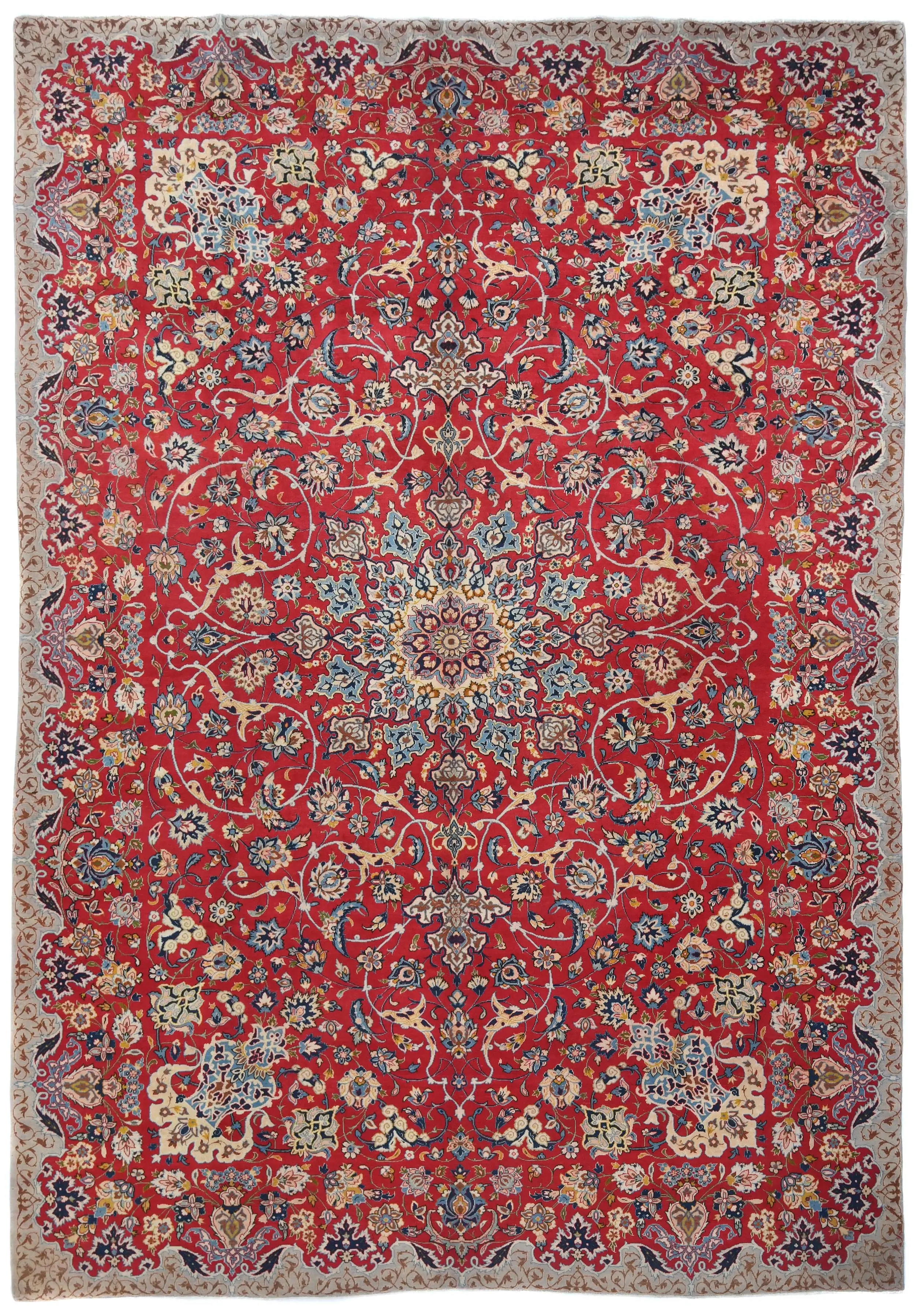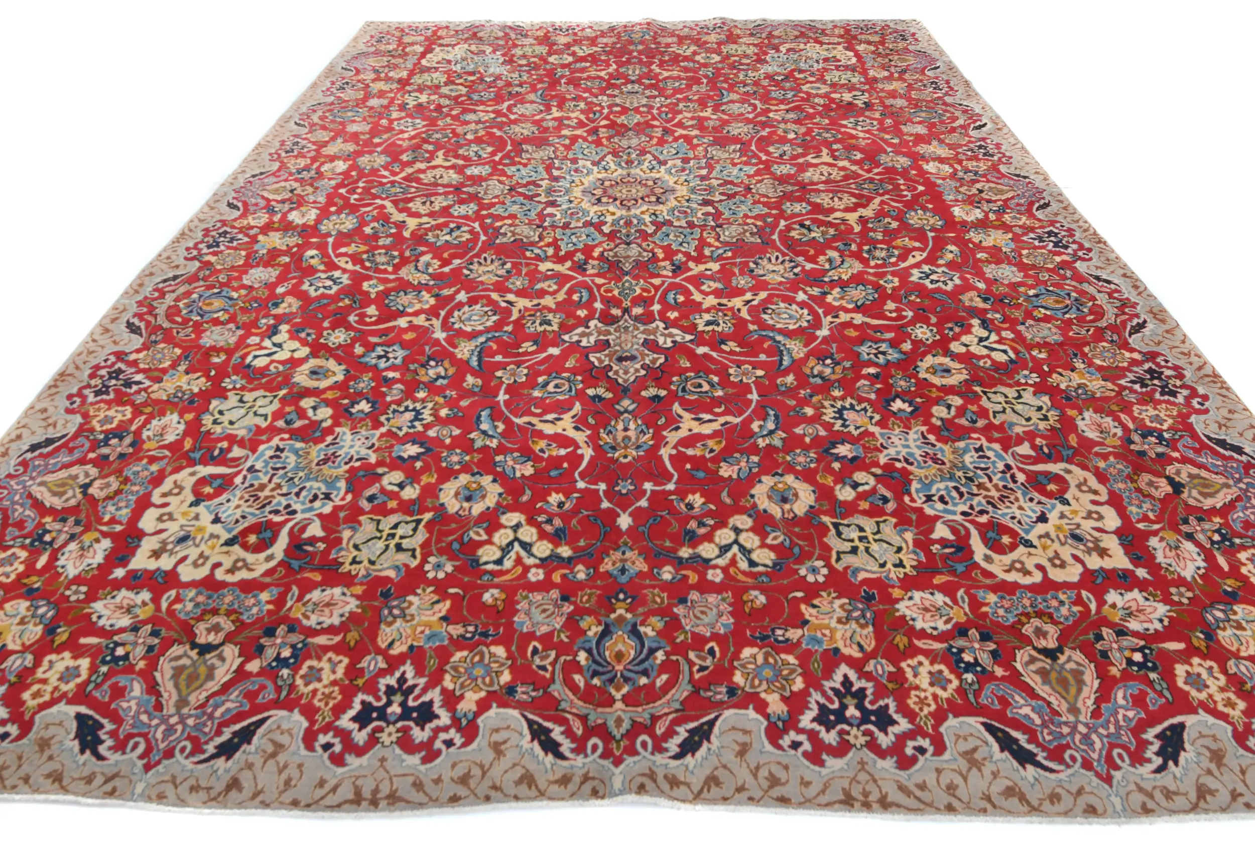 Handmade vintage 10X13 Red Persian rug made with vegetable dyes (fine wool pile and cotton foundation), superior knot count, and appealing ancient designs. This Oriental rug never will go out of style and would be among your most valuable treasures.