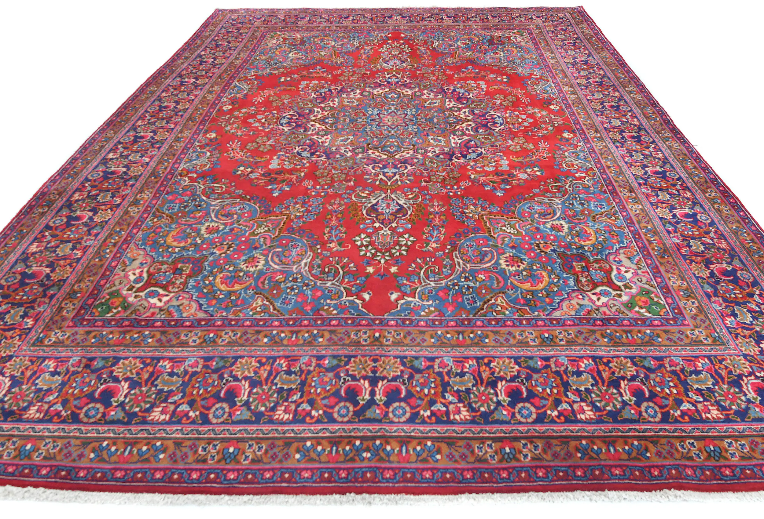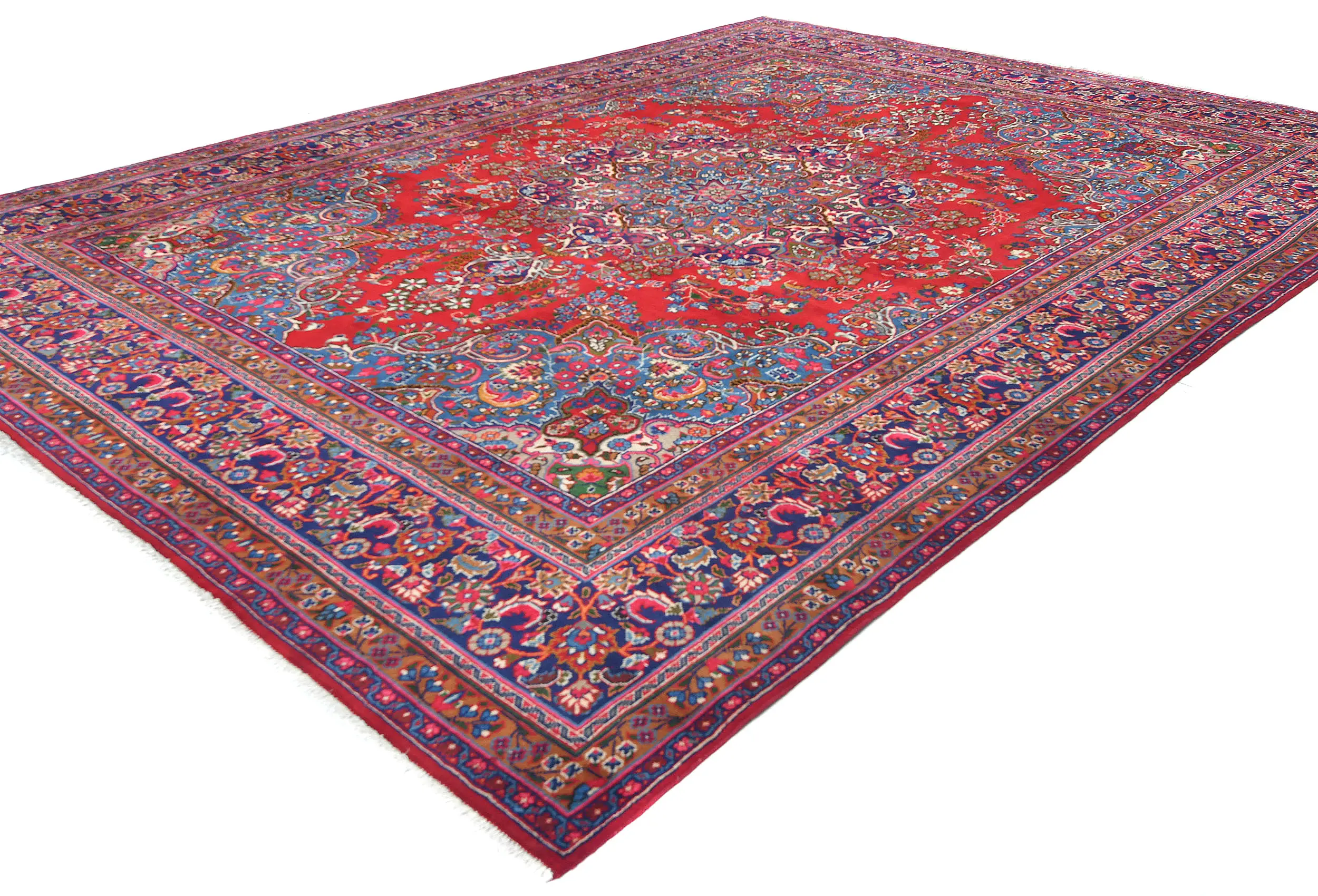 Vintage Red Traditional 10X13 Sabzevar Persian Rug