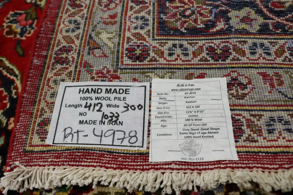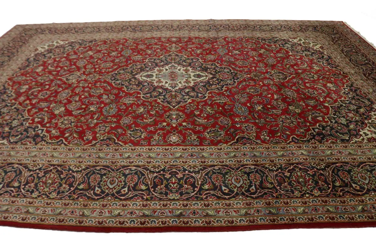 Vintage Red Traditional 10X14 Kashan Persian Rug