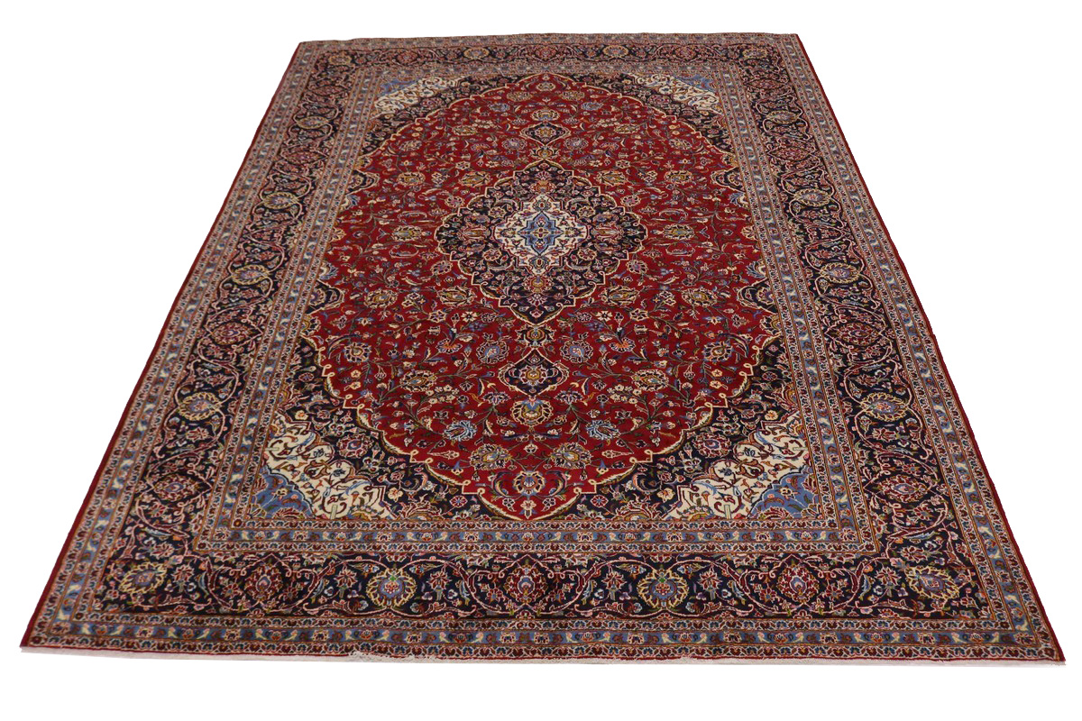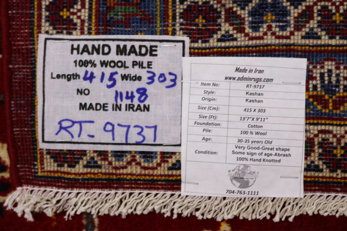 Vintage Red Traditional 10X14 Kashan Persian Rug