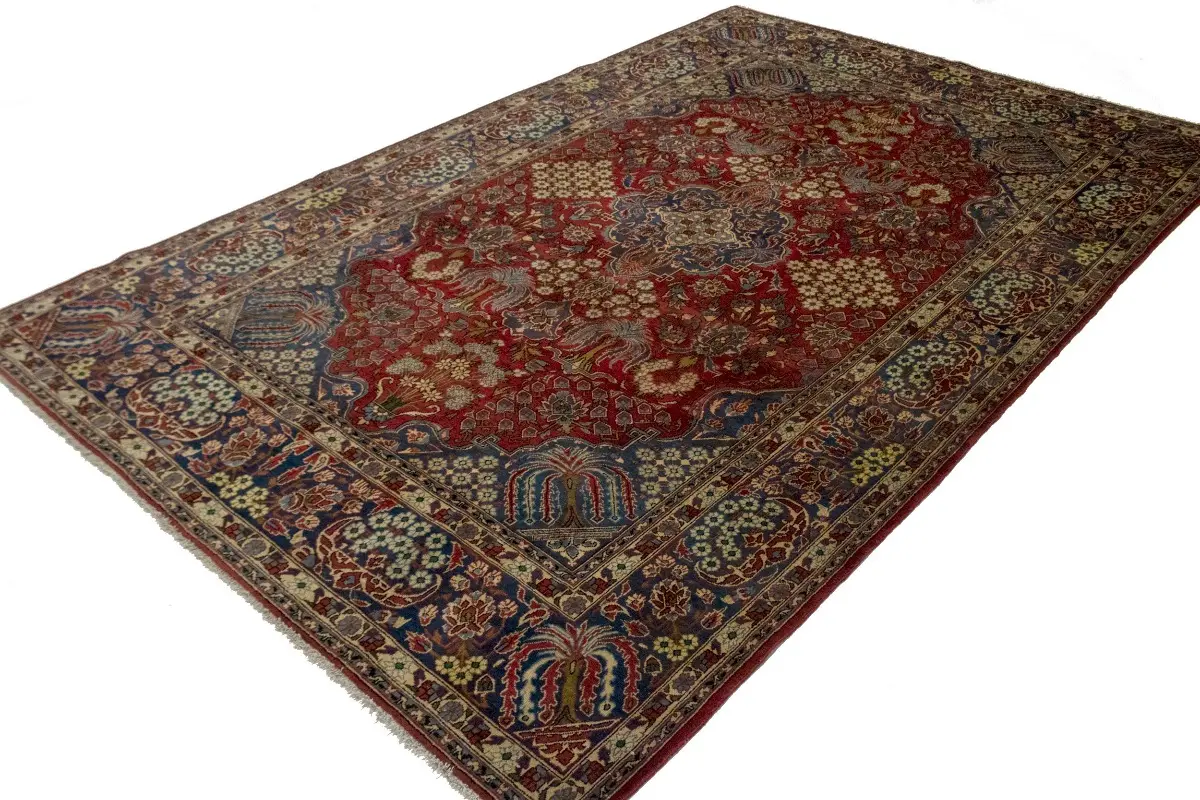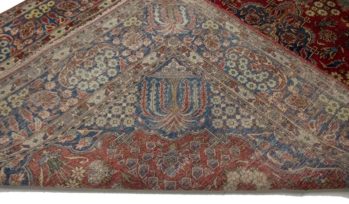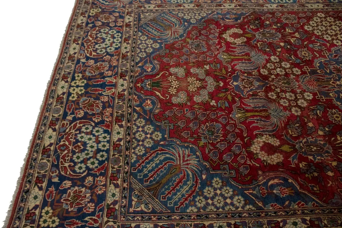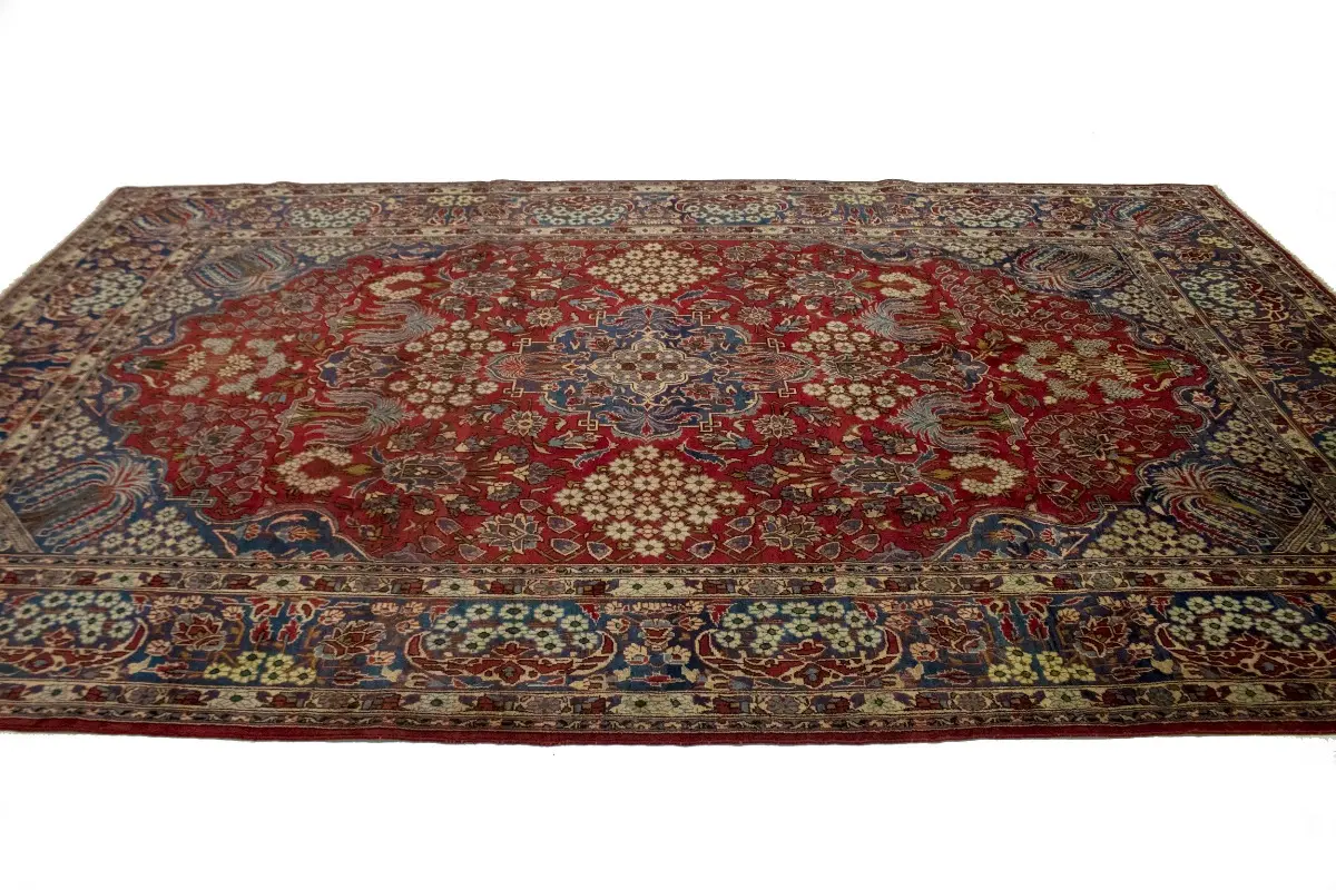 This original 8’6X13’7 red vintage Persian rug was well-constructed by the hands of master weavers motivated by a variety of stunning artistic designs, to recreate the aged look of the exceptional piece with a richness of color and developed decorative floral background field. What set this traditional Oriental area rug from the others are the material and dye used (wool pile and cotton foundation), knot count, ancient designs, fantastic grades, and its regional historical connection: it has deep roots, from the story of the people who produced it to the meaning of the symbols and colors displayed across its canvas that have been praised for centuries. This classic home décor carpet will be completely cozy and inviting that never will go out of style! Also, this Oriental rug would be among your most valuable treasures, it is a great investment that increase in value over time, and it will last a lifetime because was woven with high-quality, all-natural wool; it won’t rip, tear, or shed. Eco-friendly, opulent yet affordable; this Persian rug will give you an extra pop of character to help define your home environment with elegance and warmth that will capture the eyes and attention of your audience (homeowners, designers, decorators, family and friends). RT-3695