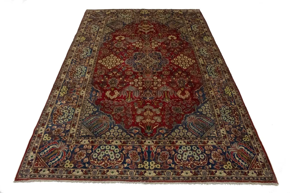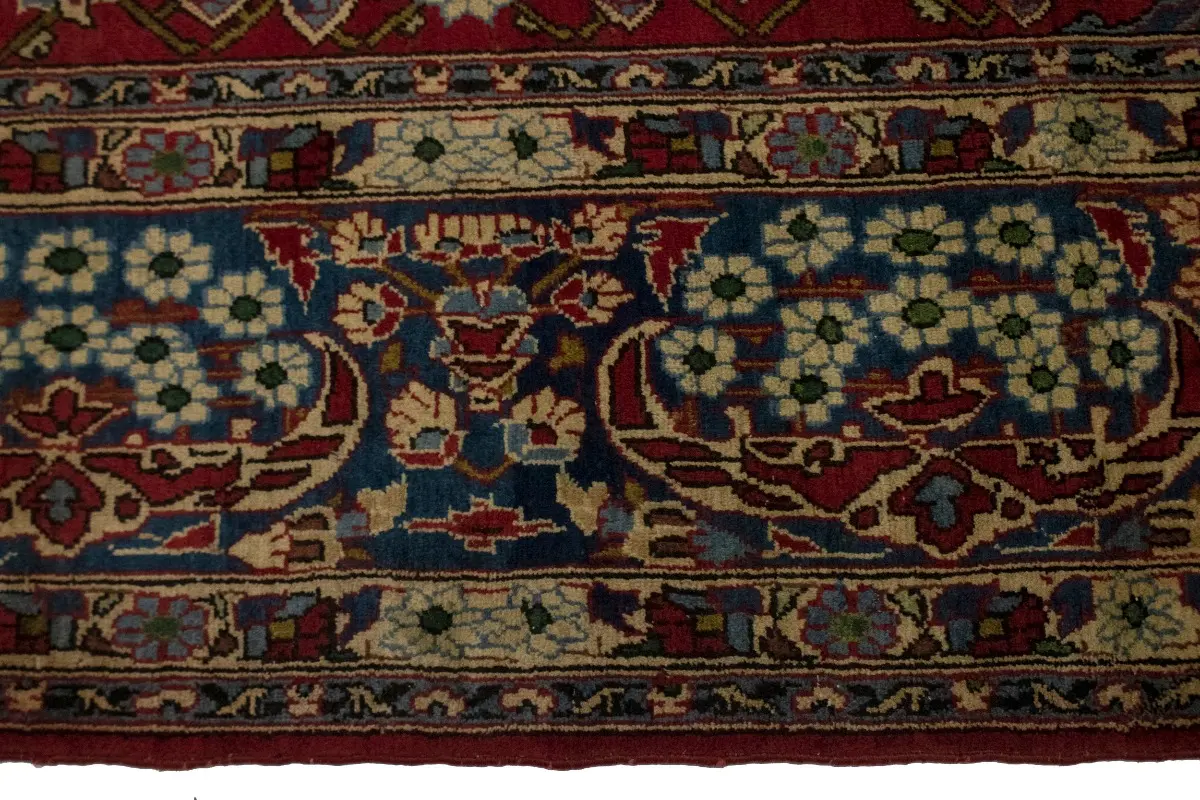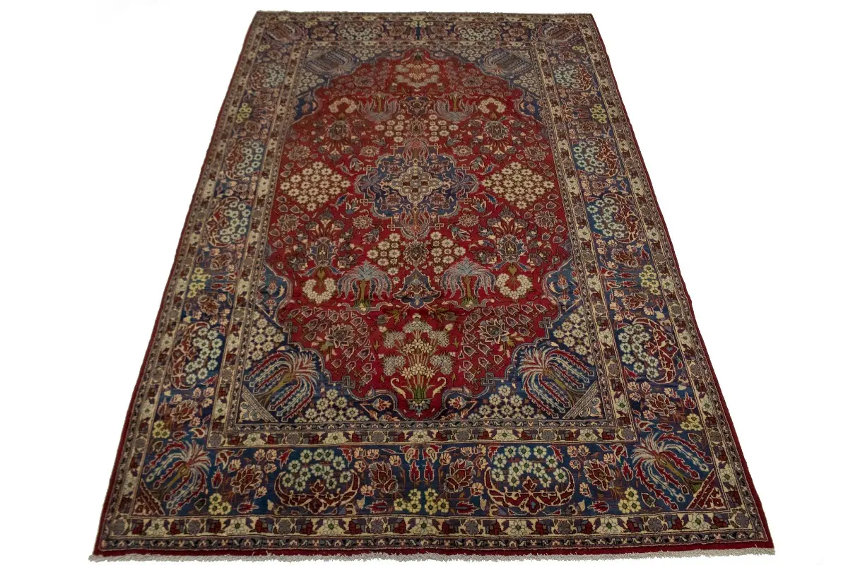 This original 8’6X13’7 red vintage Persian rug was well-constructed by the hands of master weavers motivated by a variety of stunning artistic designs, to recreate the aged look of the exceptional piece with a richness of color and developed decorative floral background field. What set this traditional Oriental area rug from the others are the material and dye used (wool pile and cotton foundation), knot count, ancient designs, fantastic grades, and its regional historical connection: it has deep roots, from the story of the people who produced it to the meaning of the symbols and colors displayed across its canvas that have been praised for centuries. This classic home décor carpet will be completely cozy and inviting that never will go out of style! Also, this Oriental rug would be among your most valuable treasures, it is a great investment that increase in value over time, and it will last a lifetime because was woven with high-quality, all-natural wool; it won’t rip, tear, or shed. Eco-friendly, opulent yet affordable; this Persian rug will give you an extra pop of character to help define your home environment with elegance and warmth that will capture the eyes and attention of your audience (homeowners, designers, decorators, family and friends). RT-3695