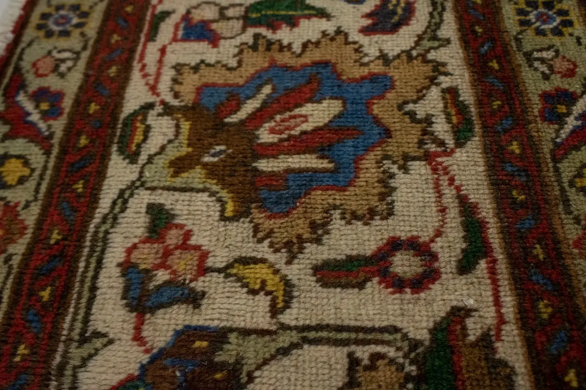 Handmade vintage Persian rug made with vegetable dyes (fine wool pile and cotton foundation), superior knot count, and appealing ancient designs. This Oriental rug never will go out of style and would be among your most valuable treasures.