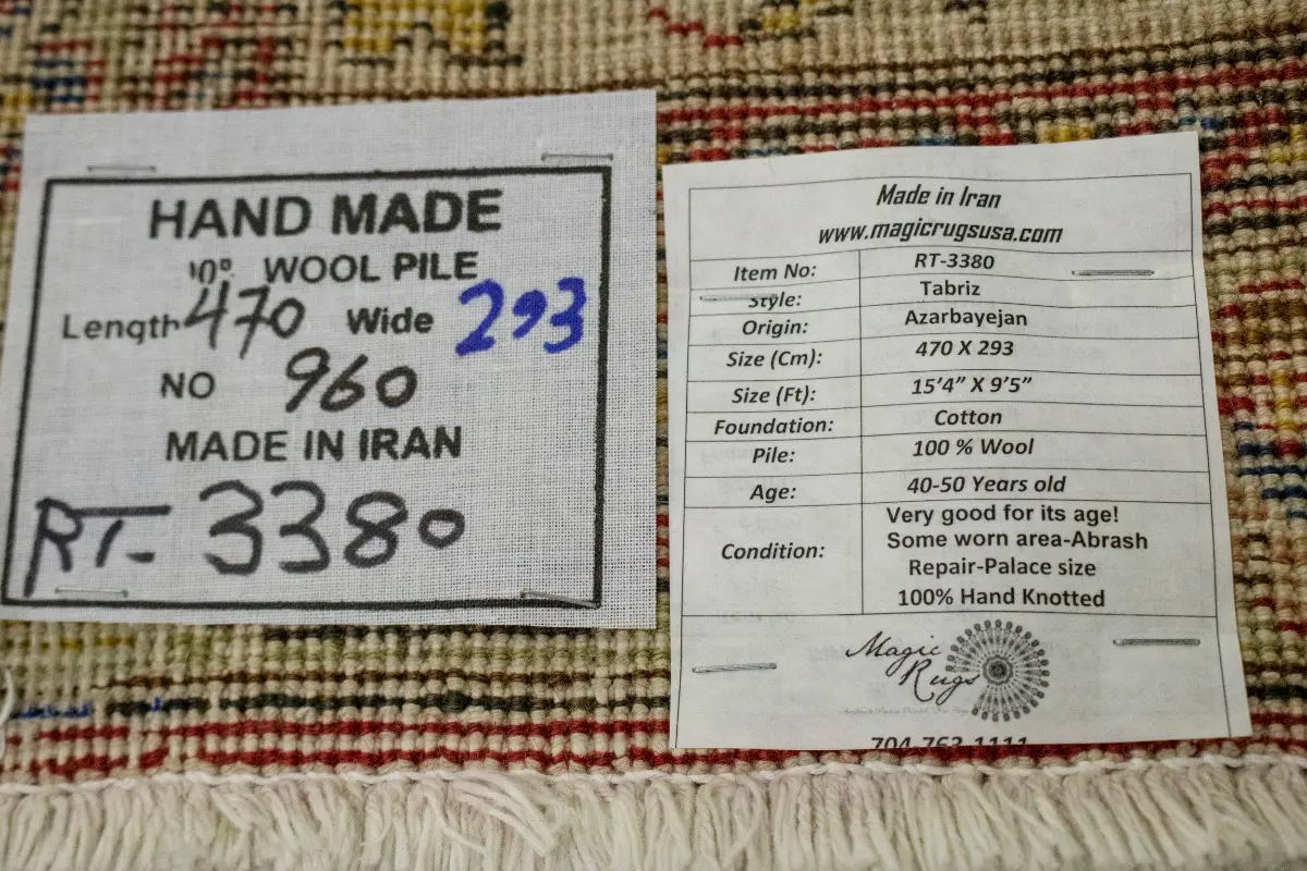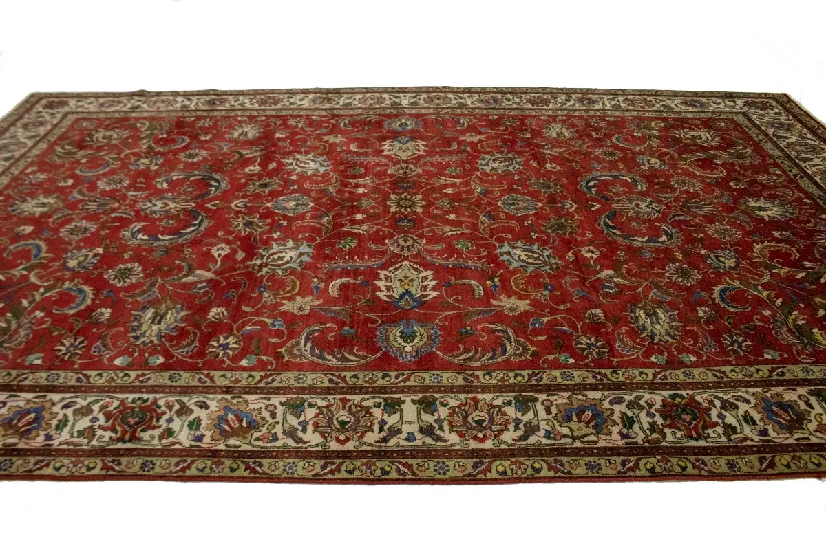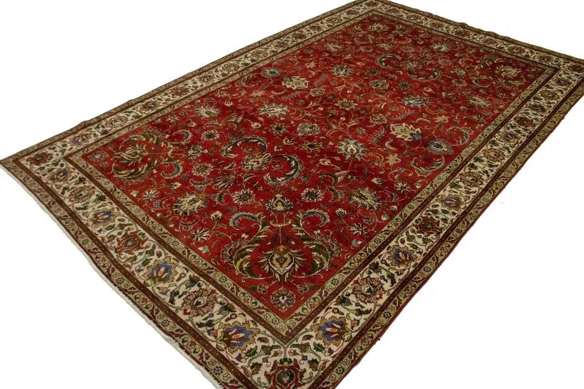 Vintage Red Traditional 9'5X15'4 Tabriz Persian Rug