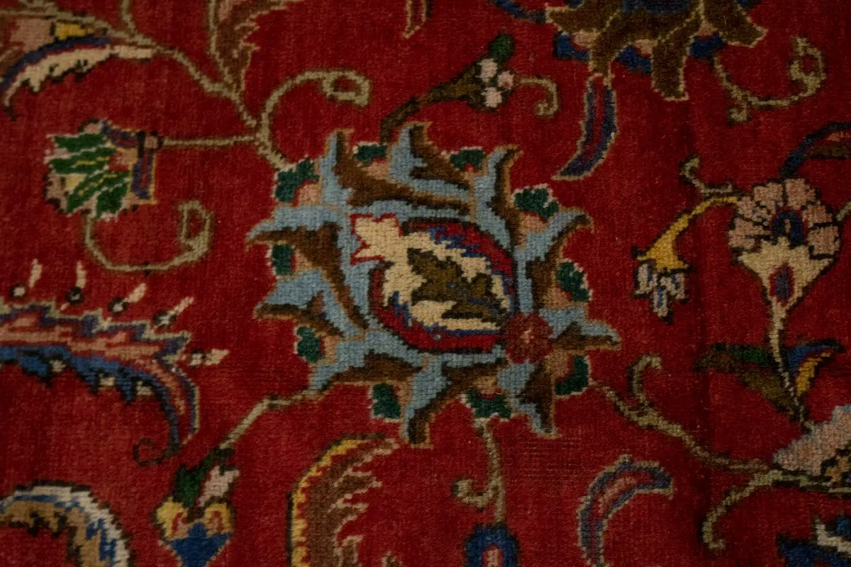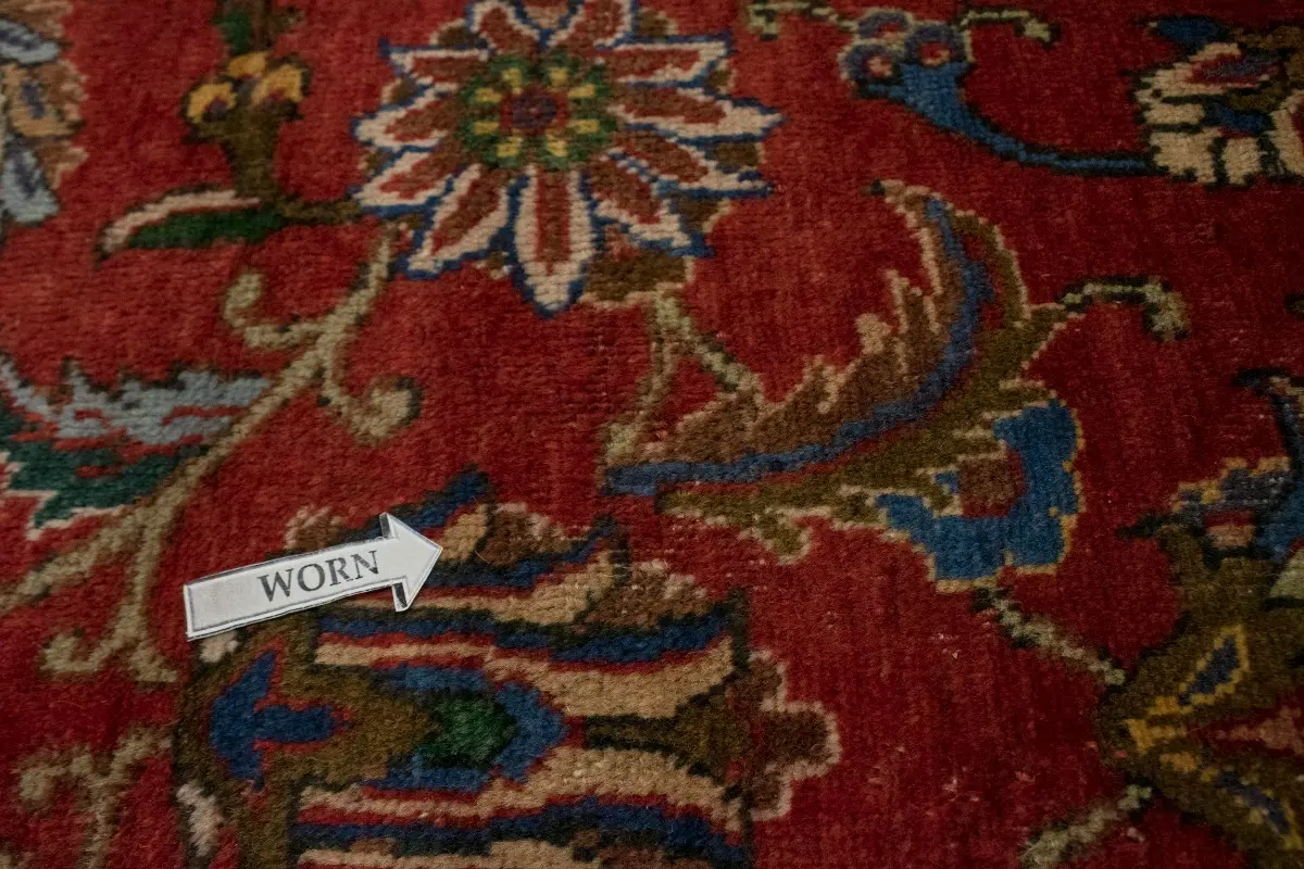 This genuine 9'5X15 red vintage Persian rug was made by the hands of talented weavers influenced by a variety of gorgeous symmetrical artistic designs, to recreate the aged look of the unique piece with a richness of color and very balanced floral background field. What set this traditional Oriental area rug from the others are the material and dye used (wool pile and cotton foundation), knot count, antique designs, fantastic grades, and its regional historical connection: it has deep roots, from the story of the people who produced it to the meaning of the symbols and colors displayed across its canvas that have been praised for centuries. This classic home décor carpet will be completely cozy and inviting that never will go out of style! Also, this Oriental rug would be among your most valuable treasures, it is a great investment that accrues value over time, and it will last a lifetime because was woven with high-quality, all-natural wool; it won’t rip, tear, or shed. Eco-friendly, opulent yet affordable; this Persian rug will give you an extra pop of character to help define your home environment with sophistication and warmth that will capture the eyes and attention of your audience (homeowners, designers, decorators, family and friends). RT-3380