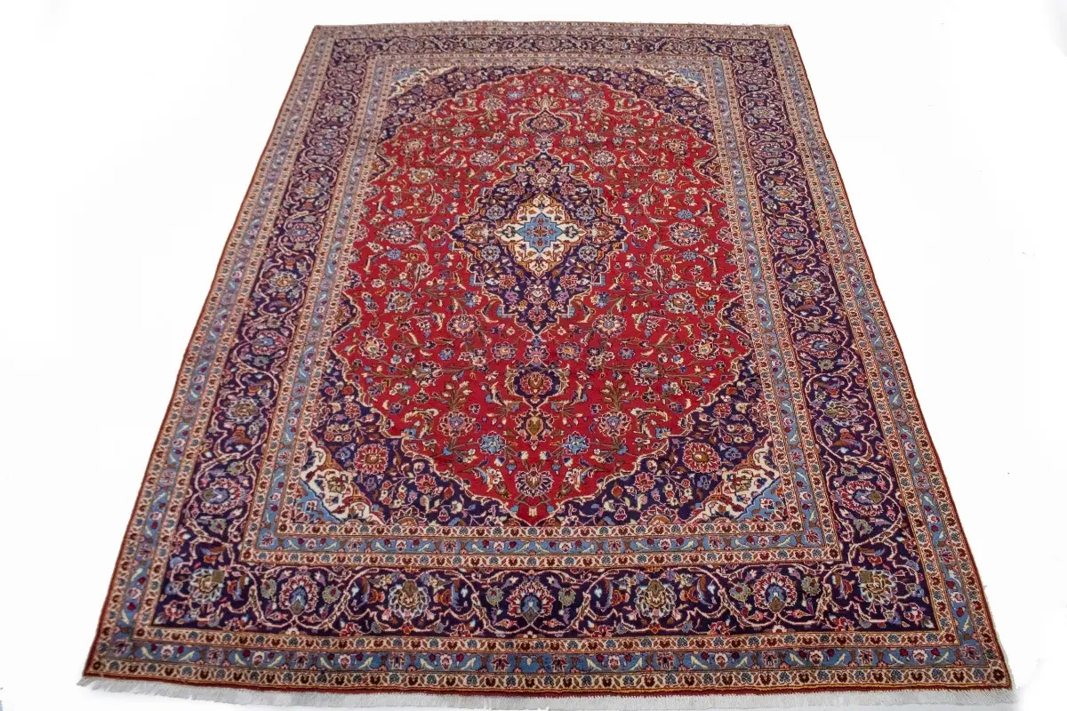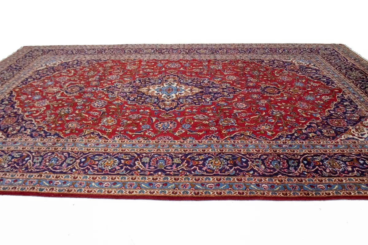 Vintage Red Traditional 9'7X13'6 Kashan Persian Rug