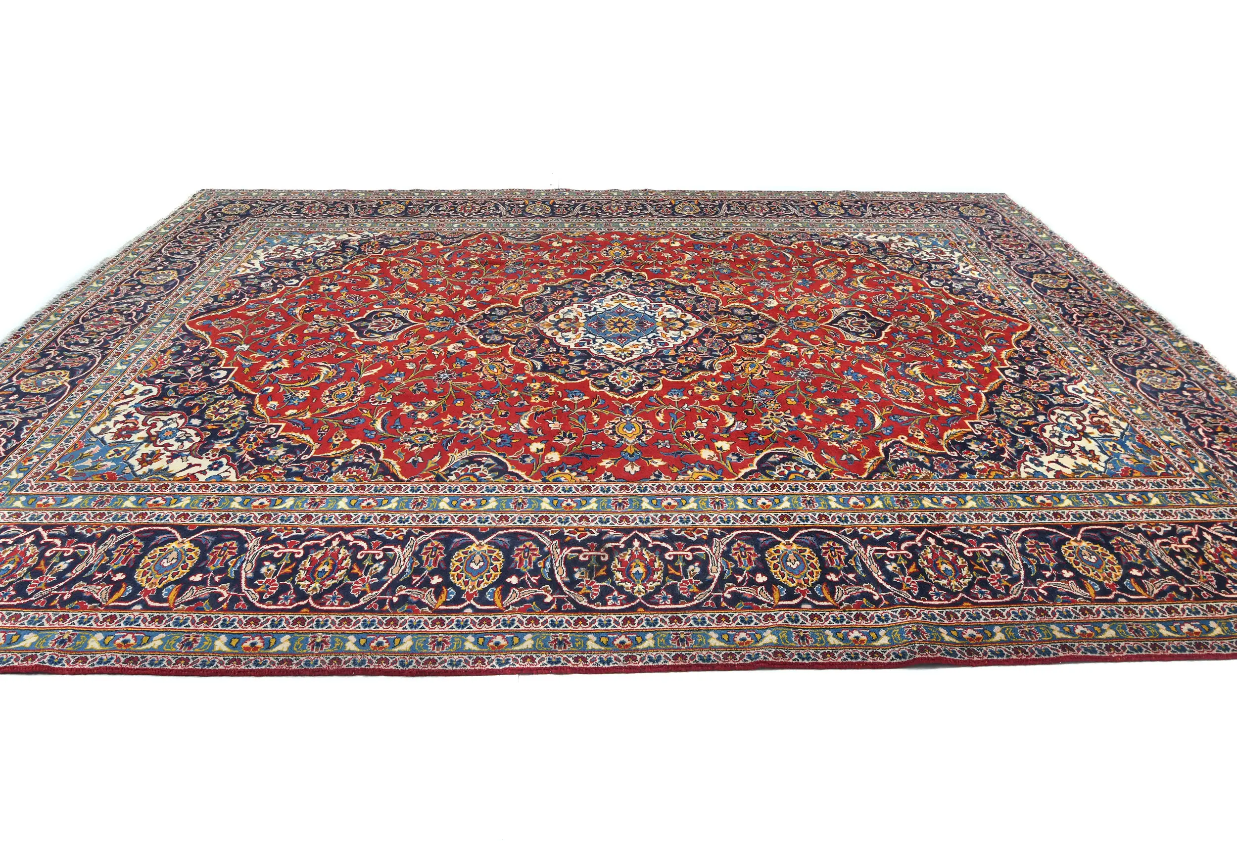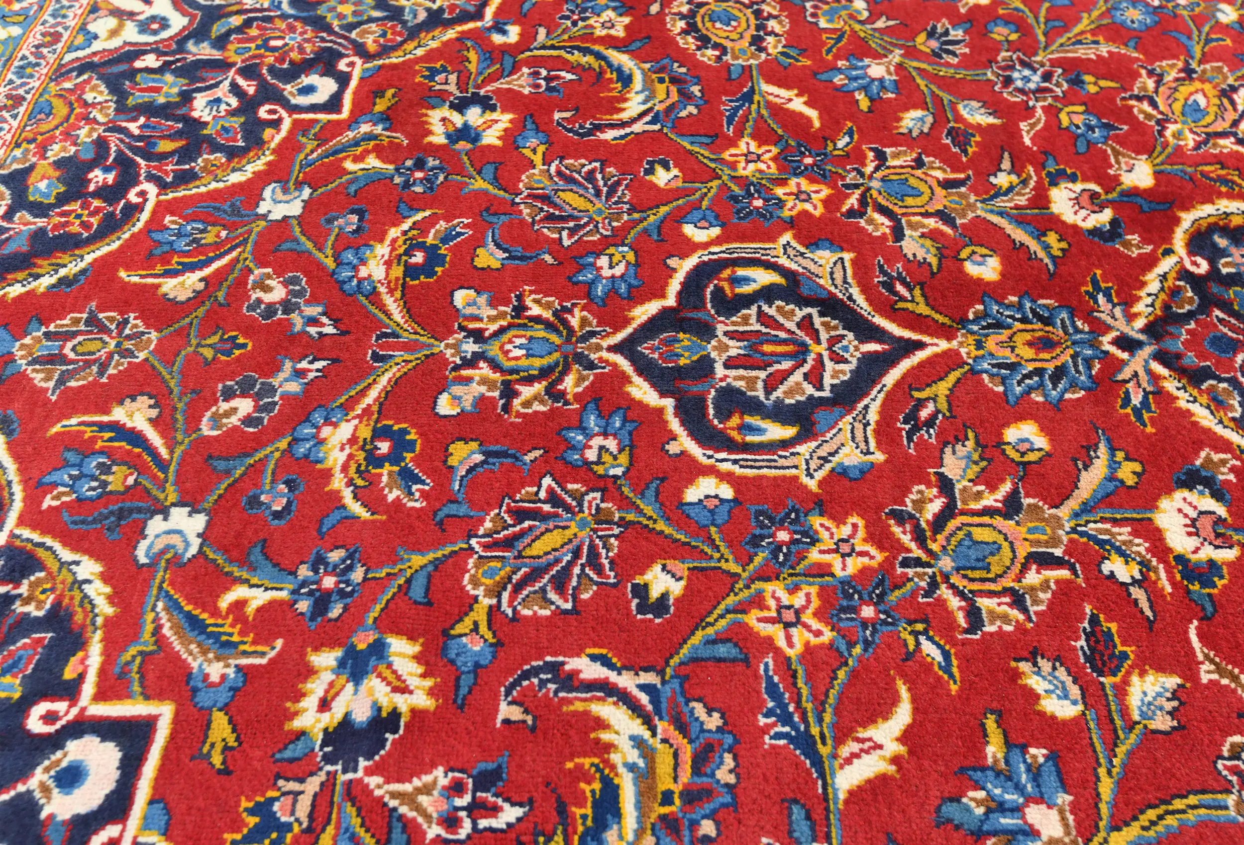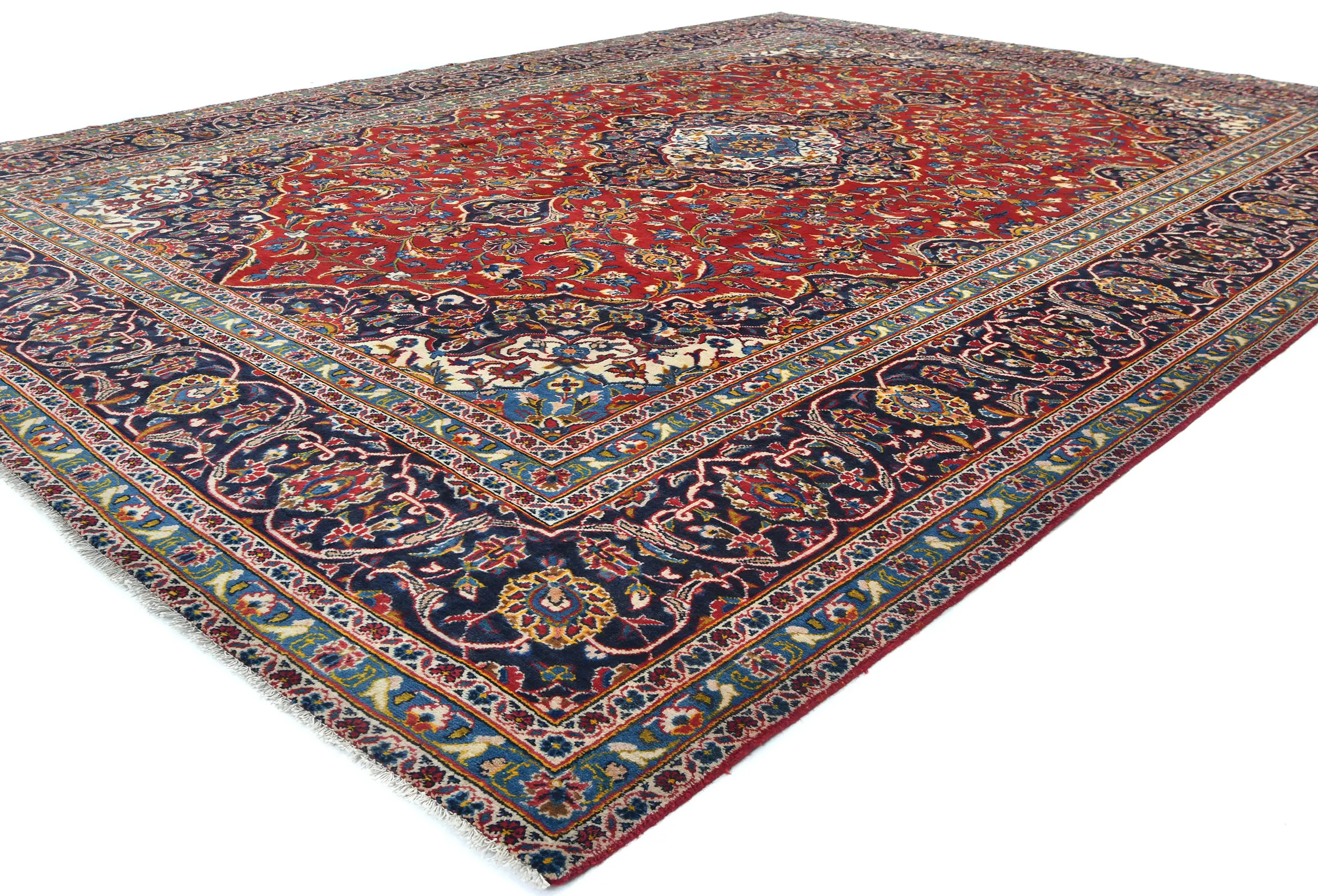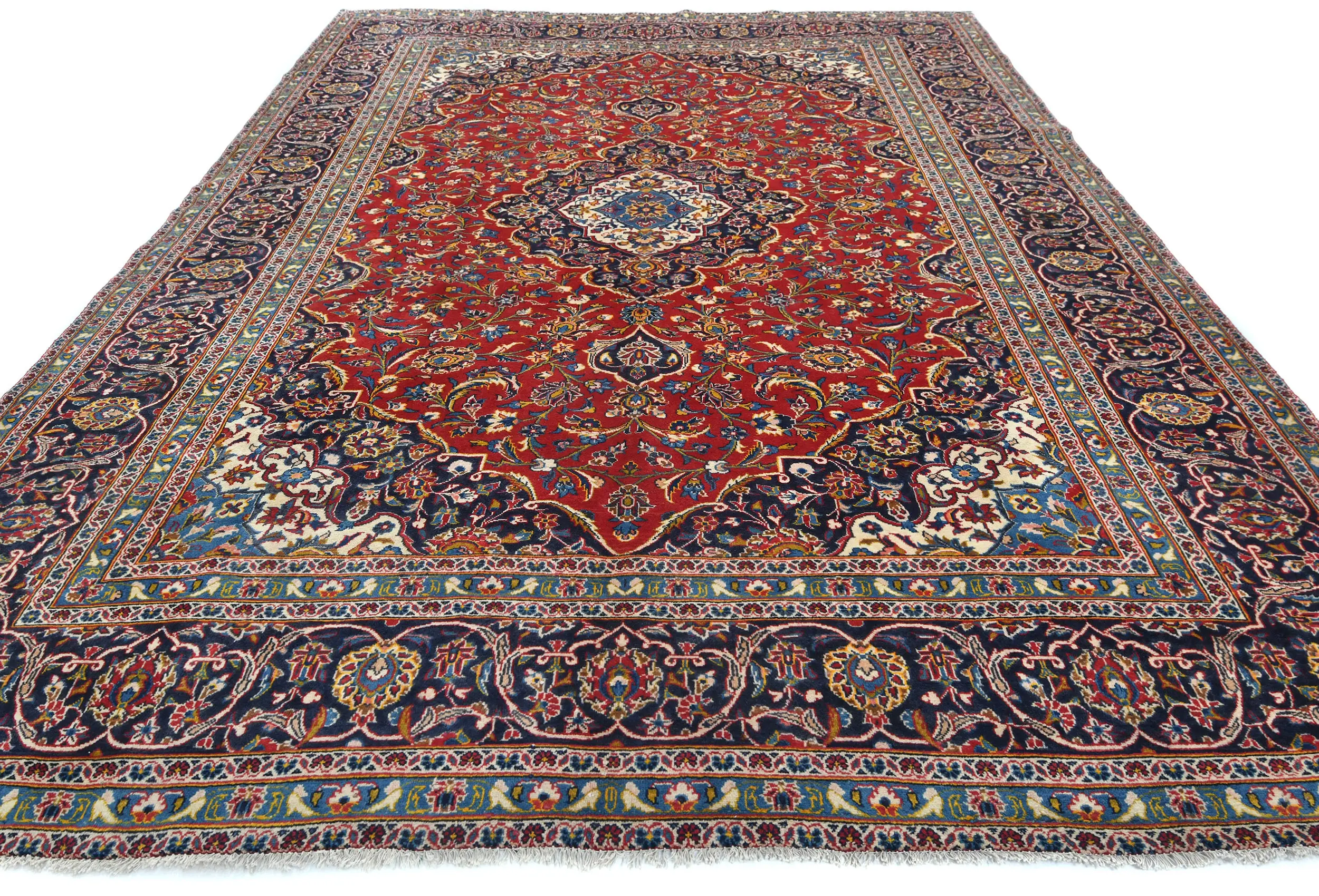 Vintage Red Traditional Floral 10X13 Kashan Persian Rug