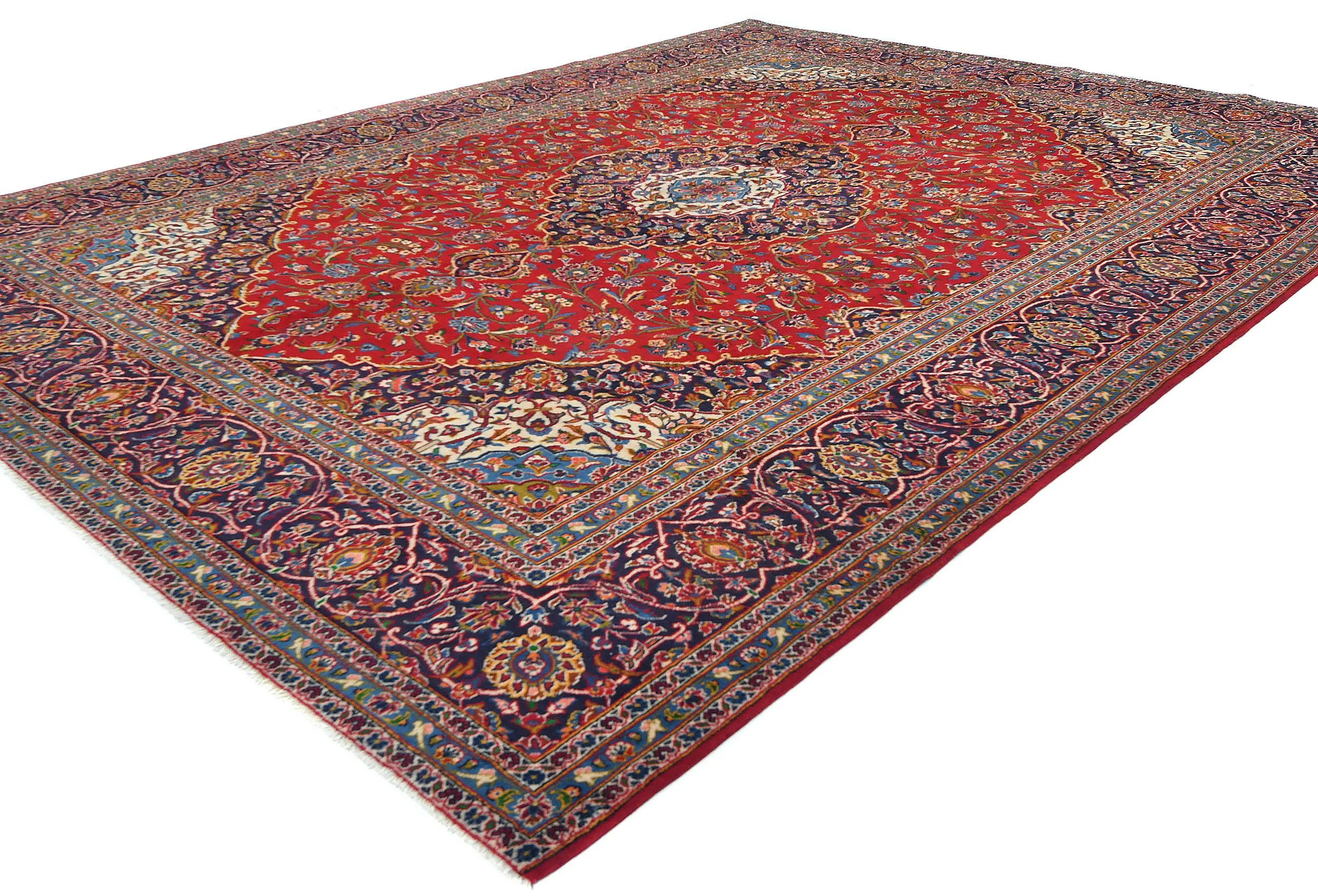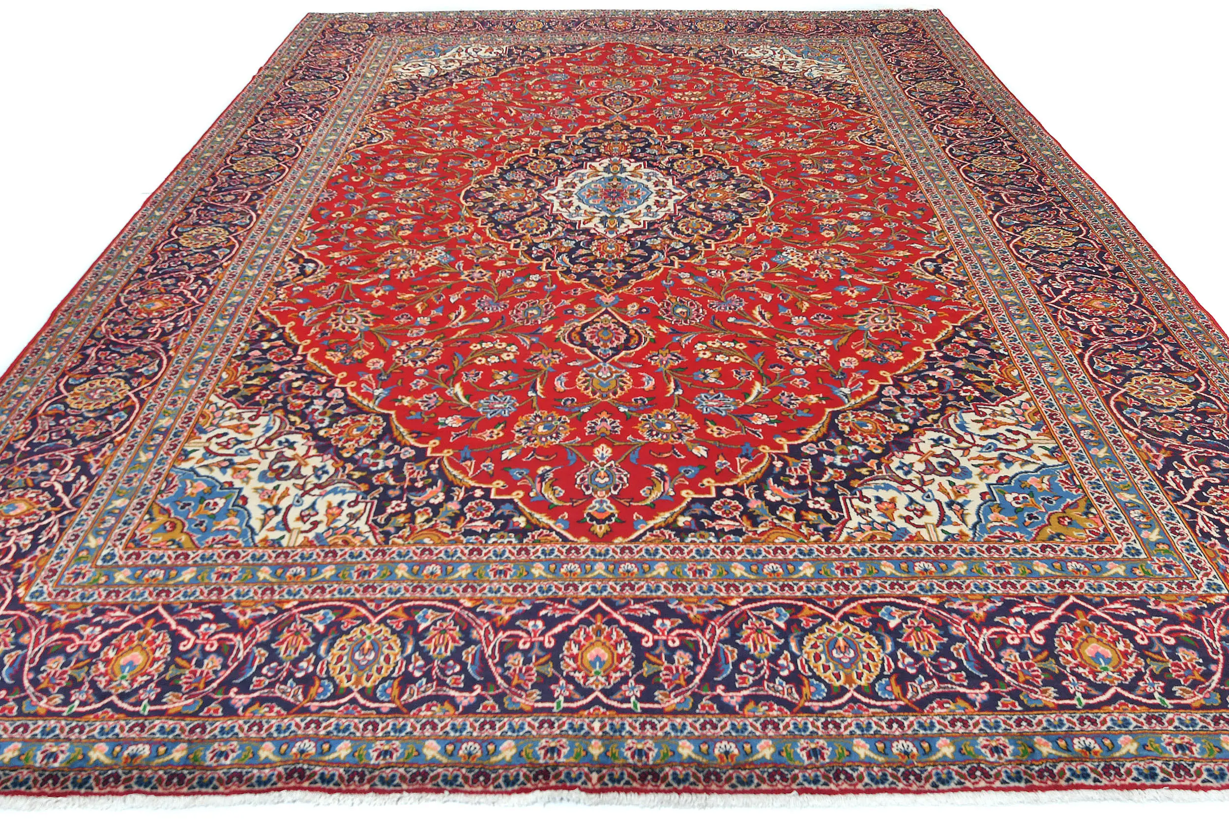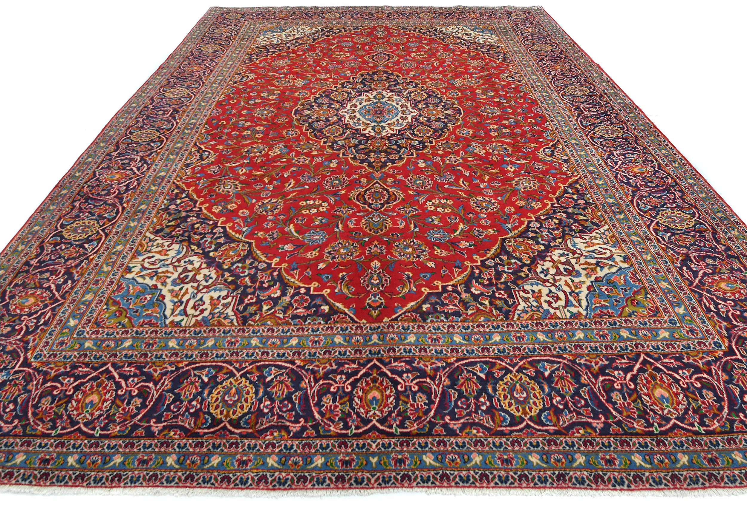 Vintage Red Traditional Floral 10X13 Kashan Persian Rug