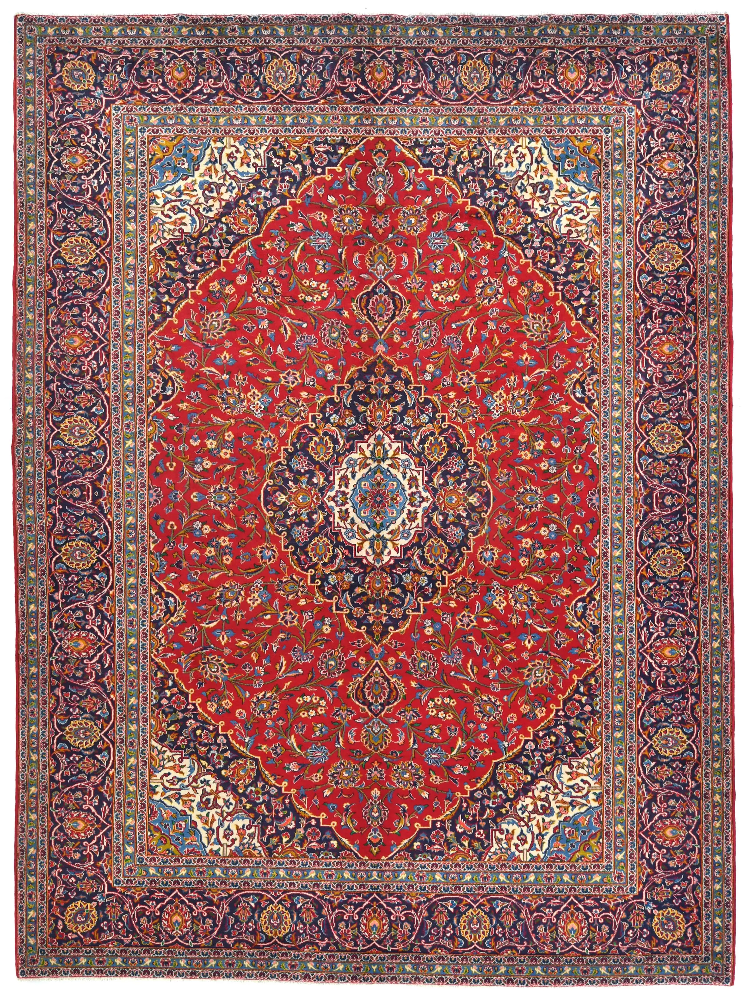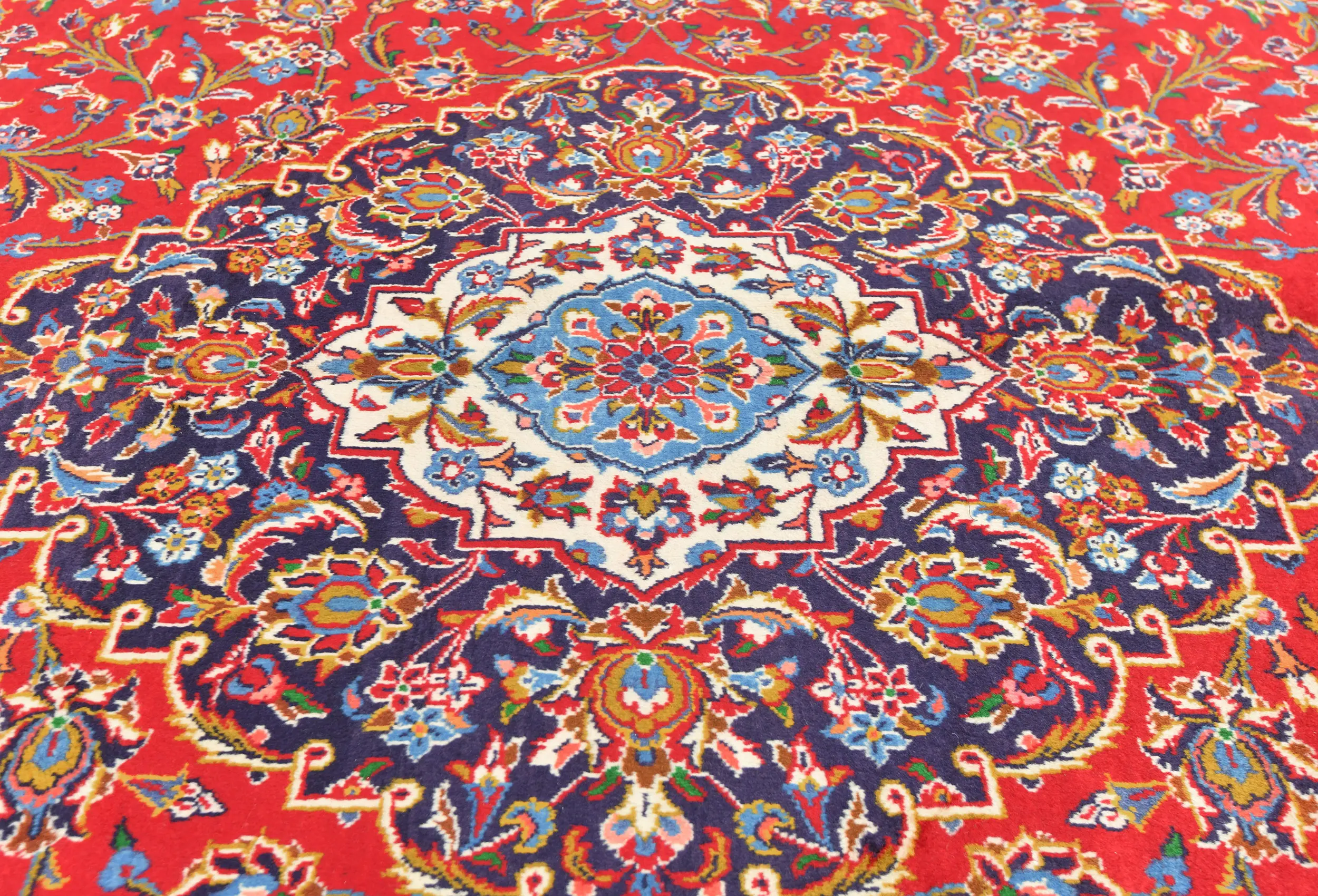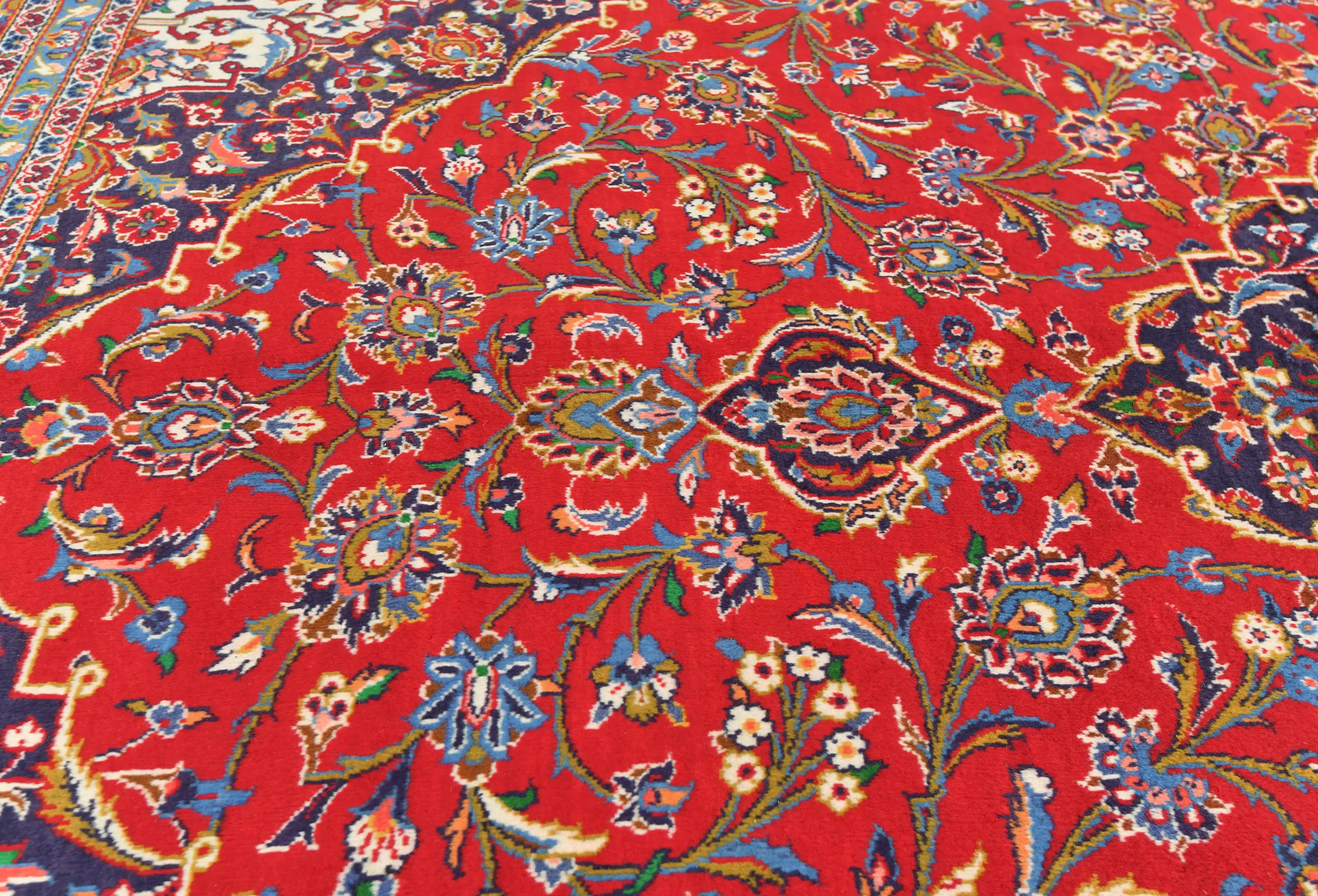 Vintage Red Traditional Floral 10X13 Kashan Persian Rug