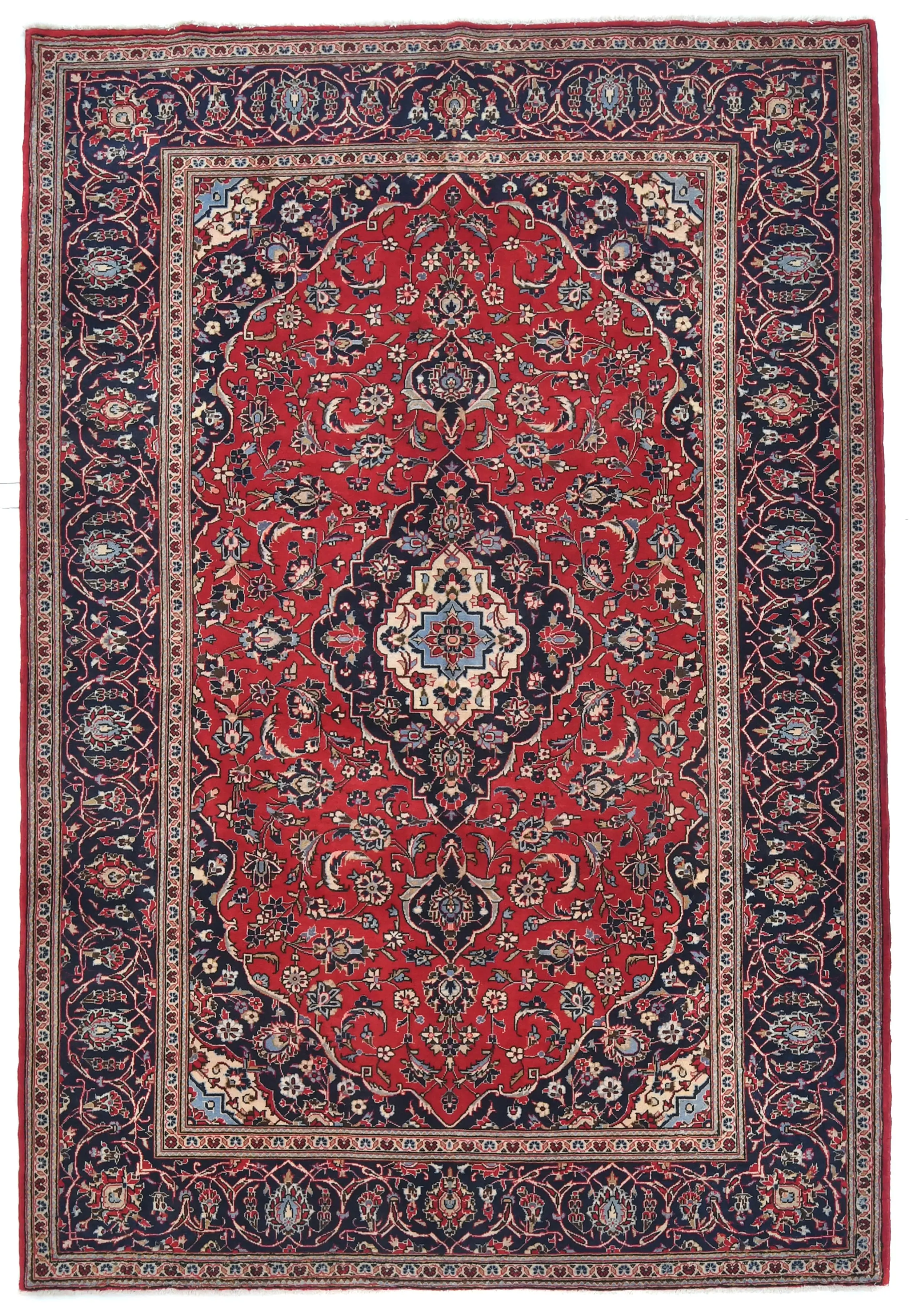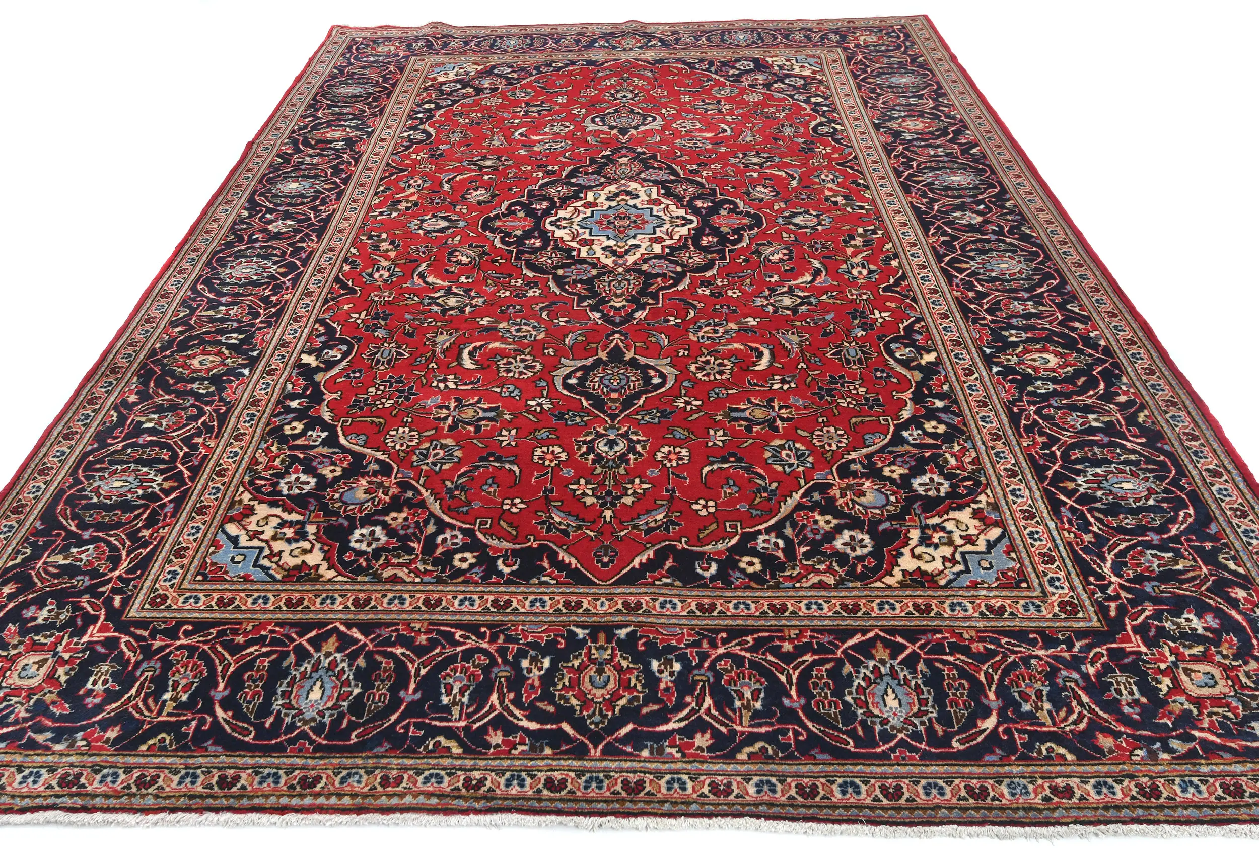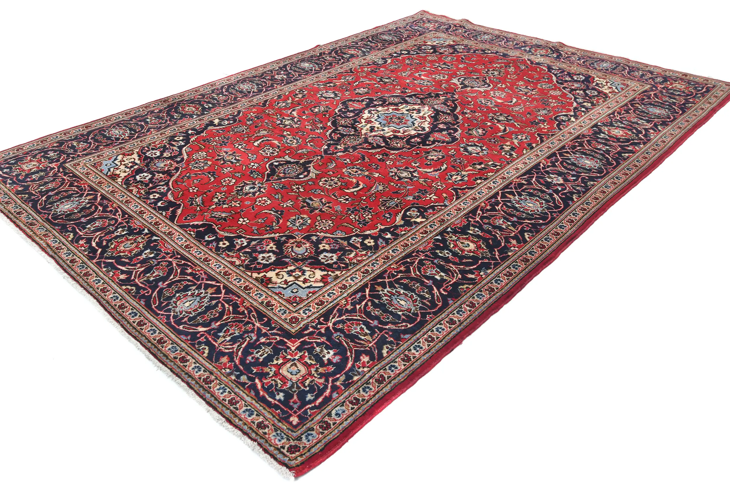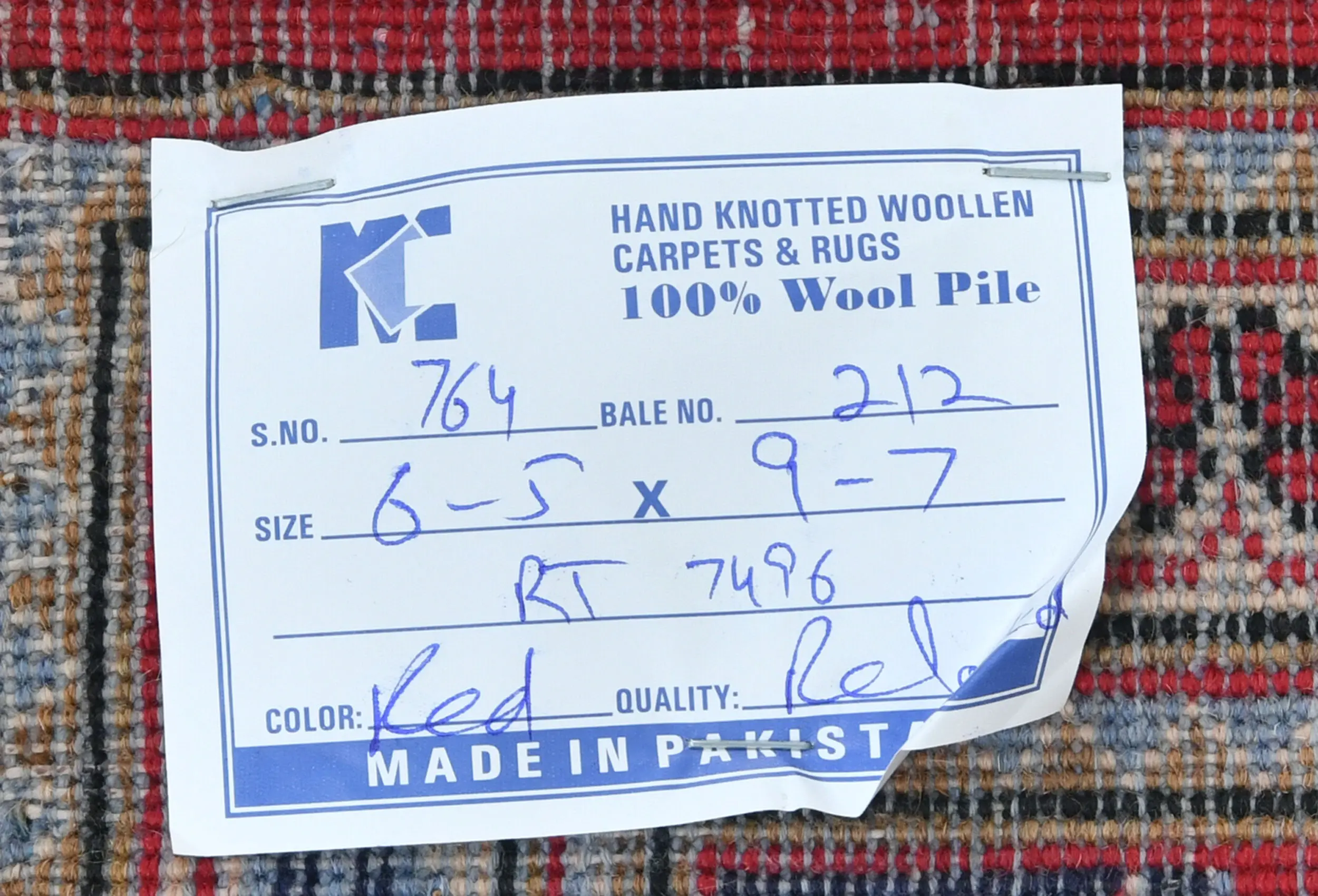 Vintage Red Traditional Floral 6'5X9'7 Kashan Persian Rug
