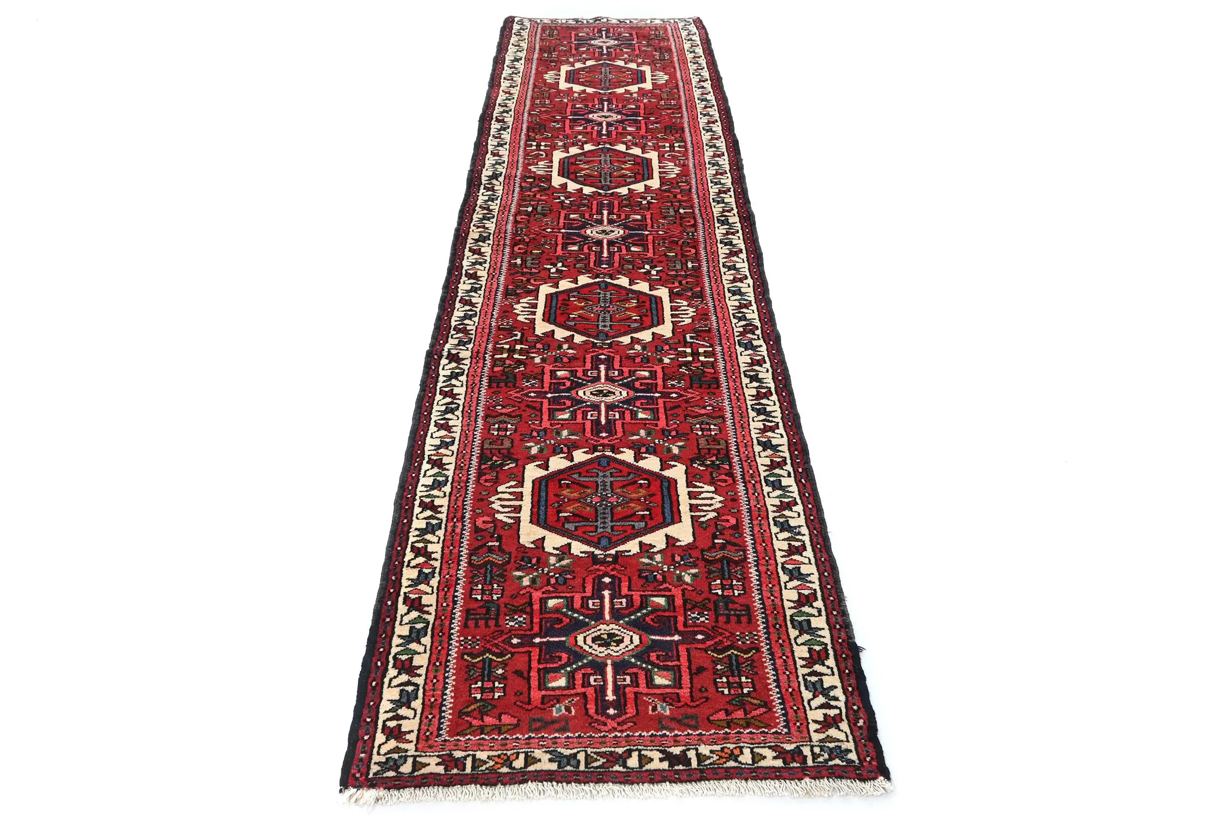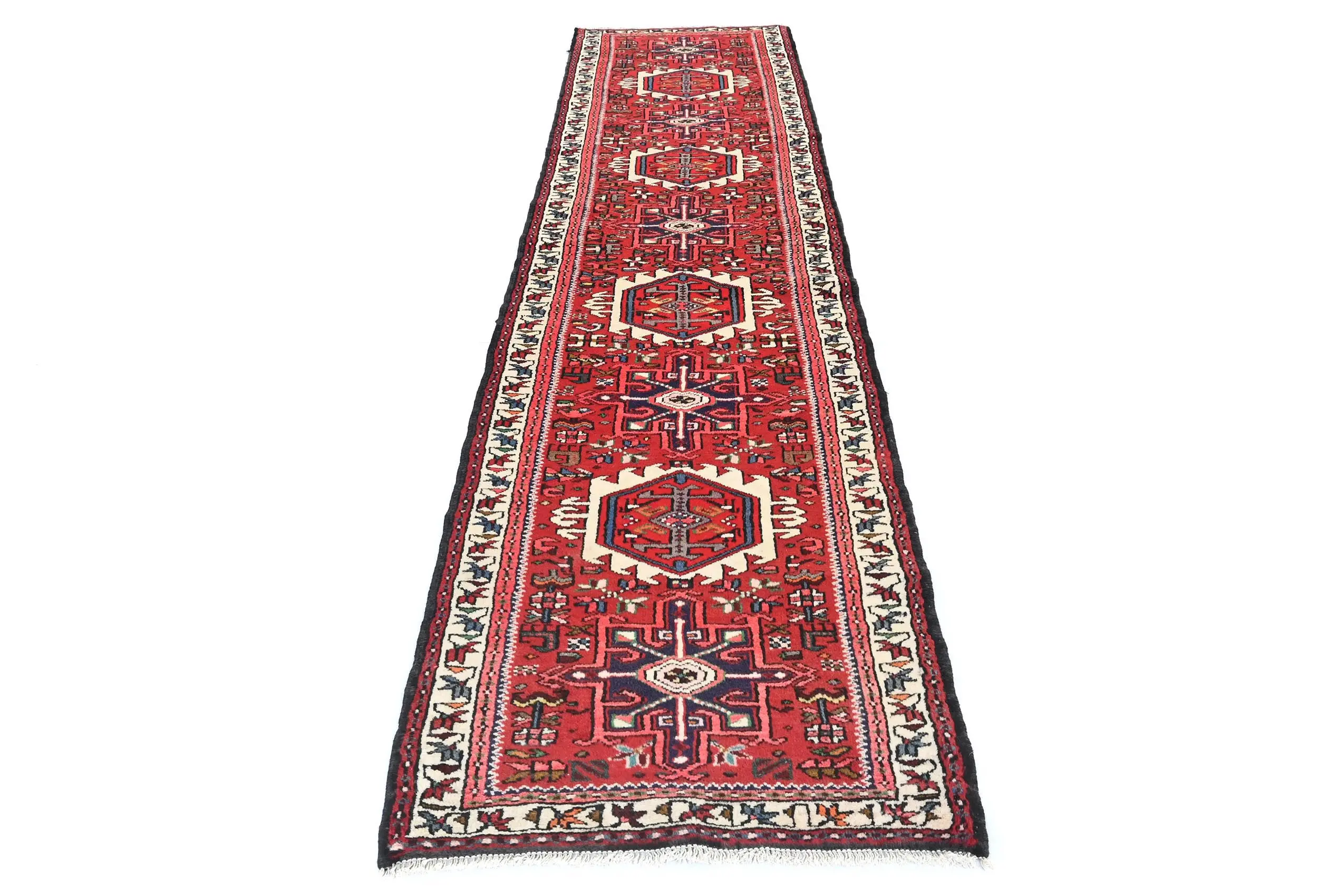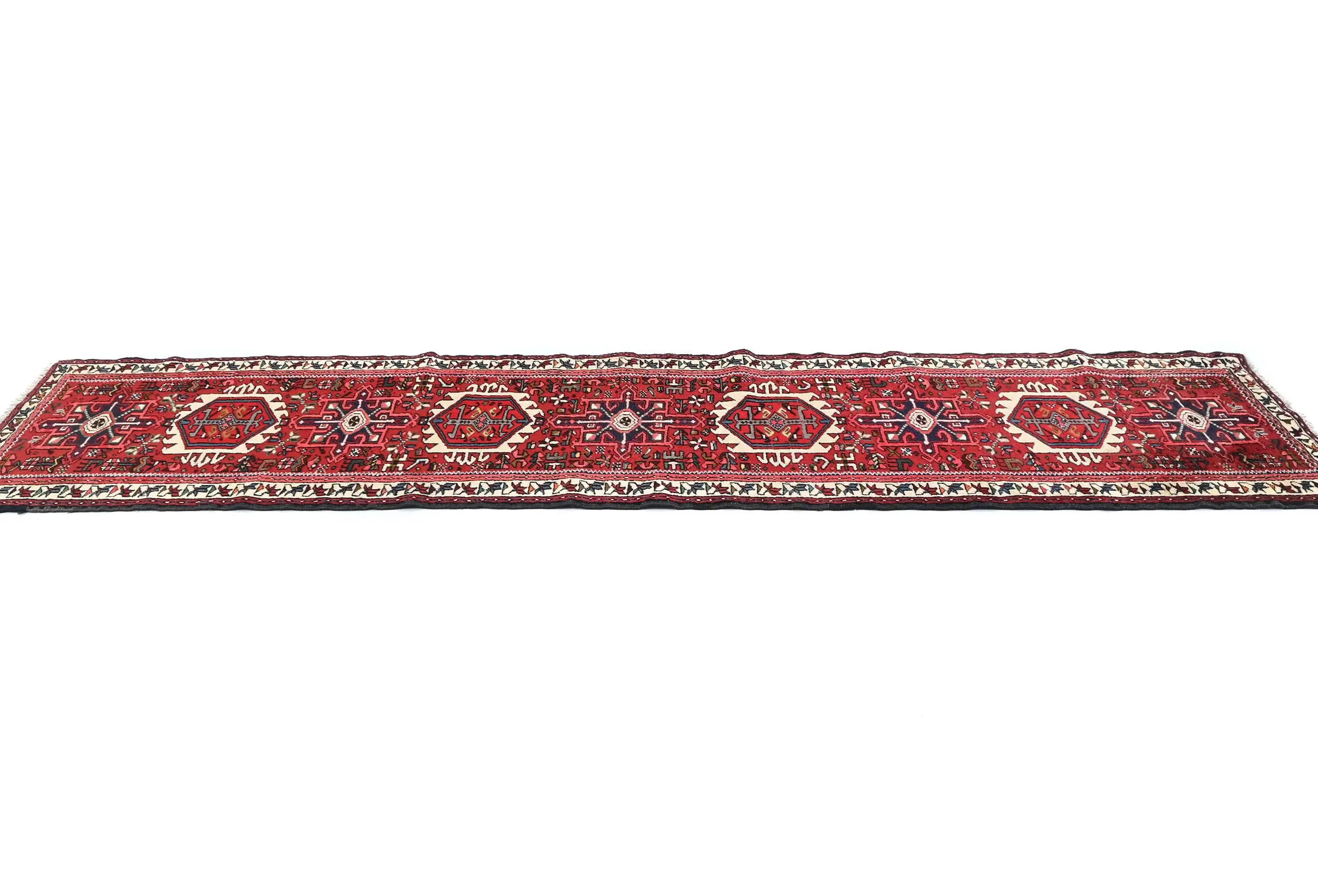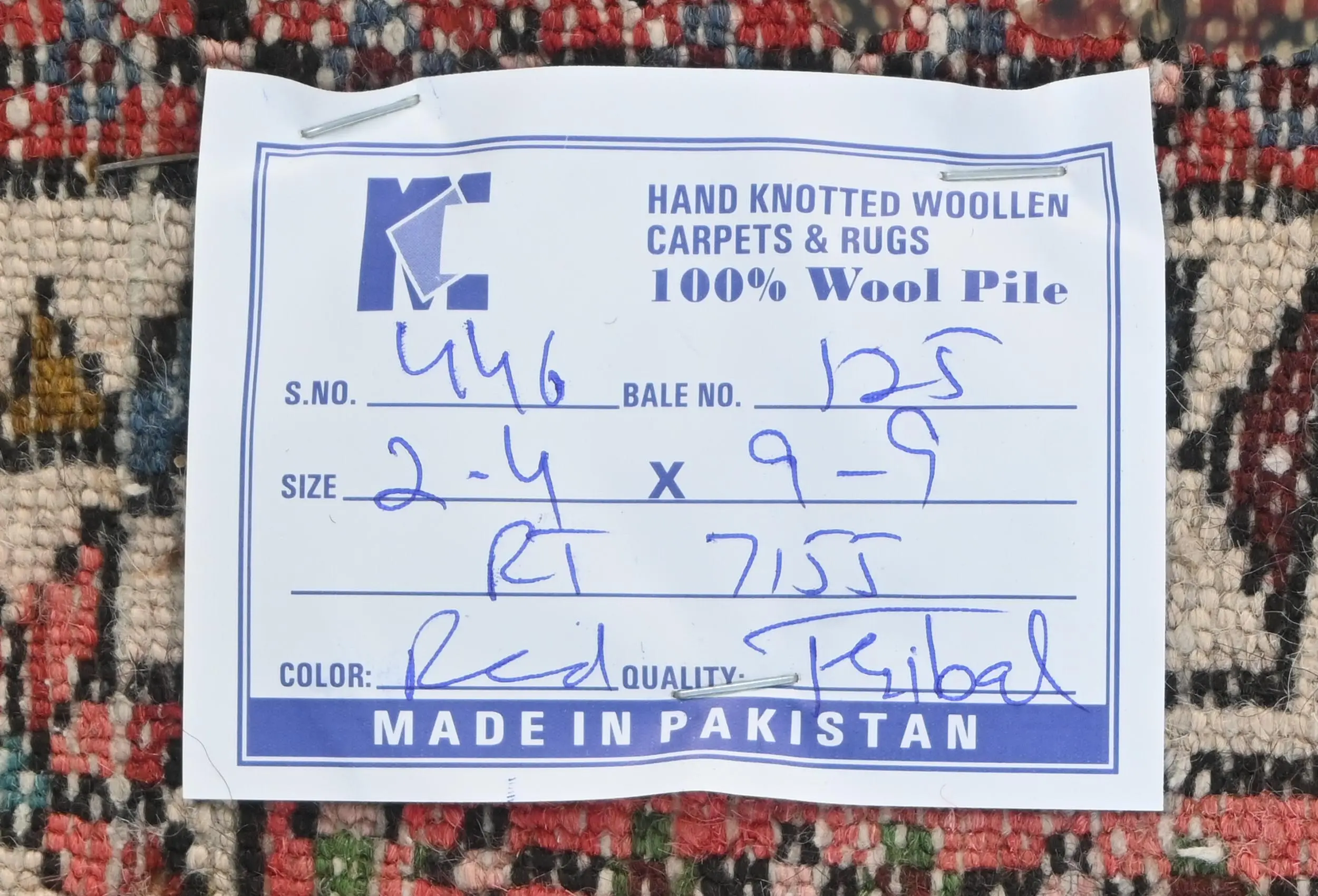 Handmade vintage 2'4X10 Red Persian runner made with vegetable dyes (fine wool pile and cotton foundation), exceptional knot count, and appealing ancient designs. This Oriental runner never will go out of style and would be among your most valuable treasures.