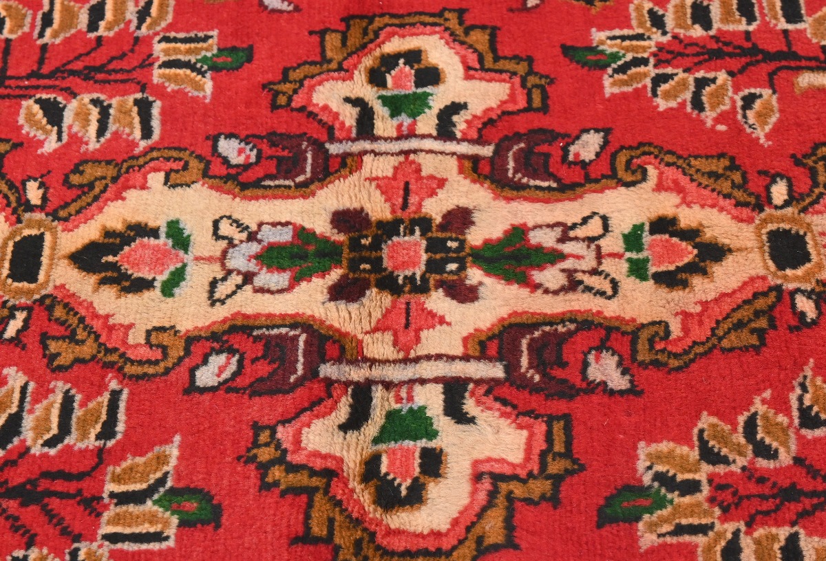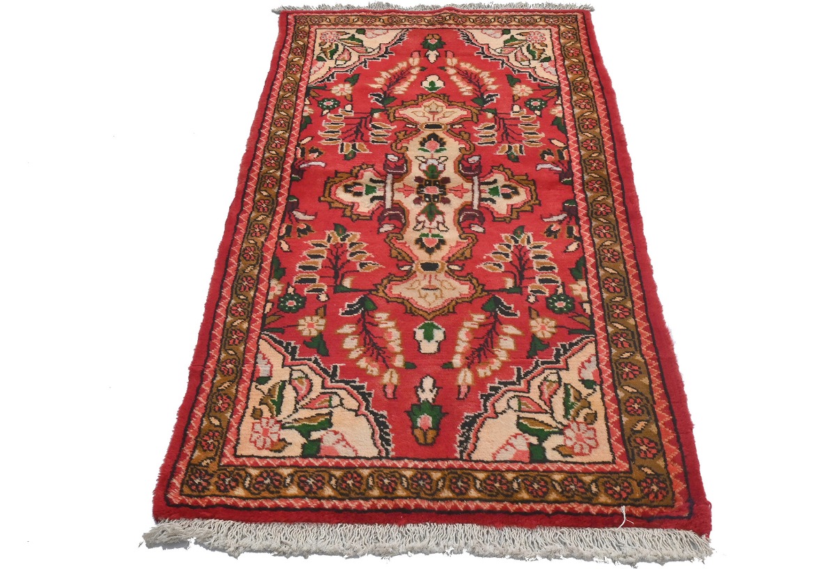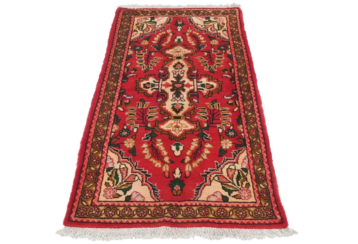 Handmade vintage 2'5X4'8 red Persian rug made with vegetable dyes (fine wool pile and cotton foundation), superior knot count, and alluring ancient designs. This Oriental rug never will go out of style and would be among your most valuable treasures.