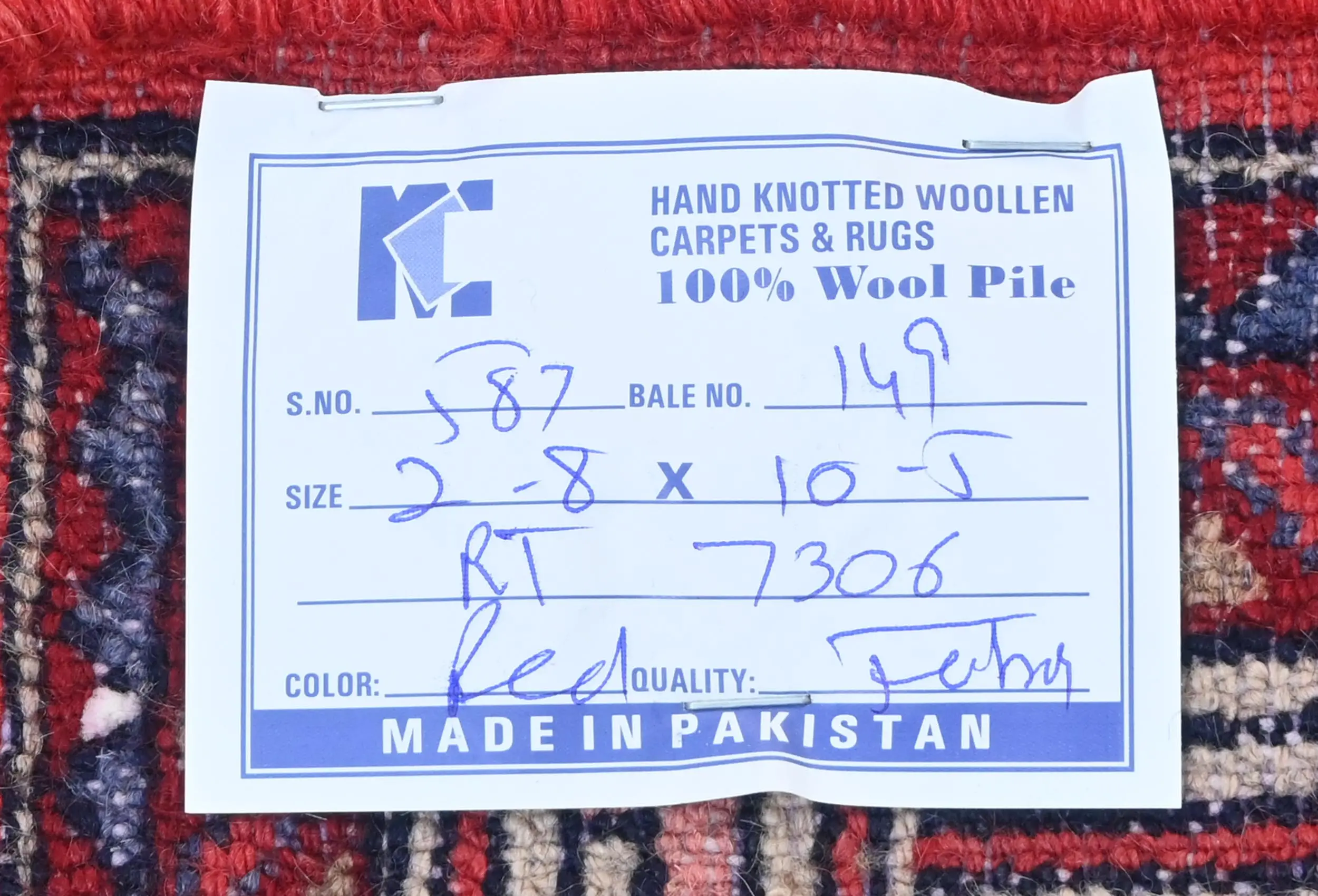 Vintage Red Tribal 2'8X10'5 Hamedan Persian Runner Rug