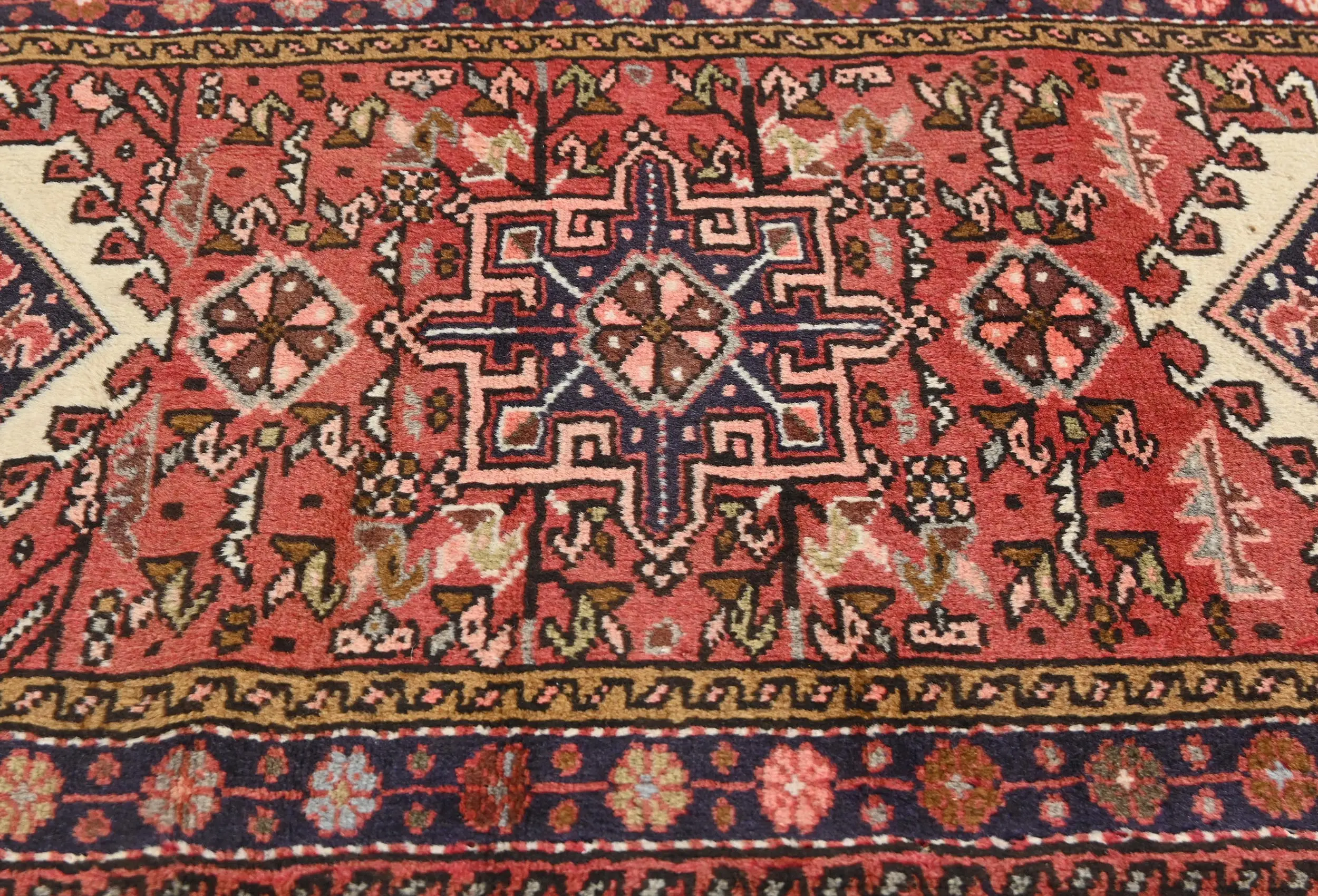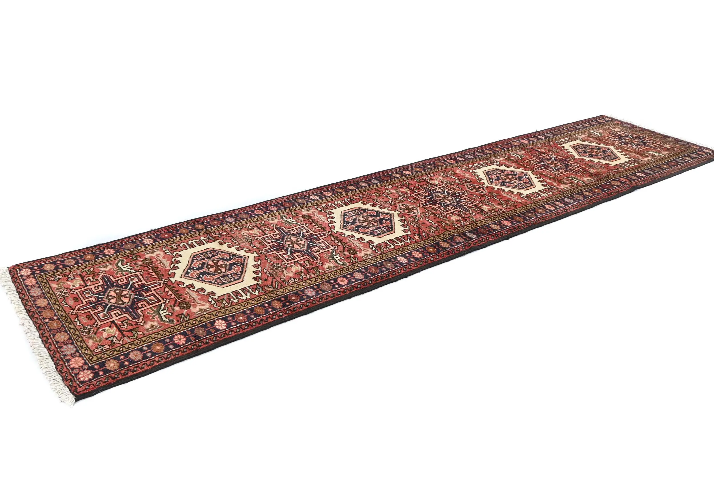 Hand Knotted 2X9 red Persian runner made with vegetable dyes (fine wool pile and cotton foundation), exceptional knot count, and appealing ancient designs. This Oriental runner never will go out of style and would be among your most valuable treasures.