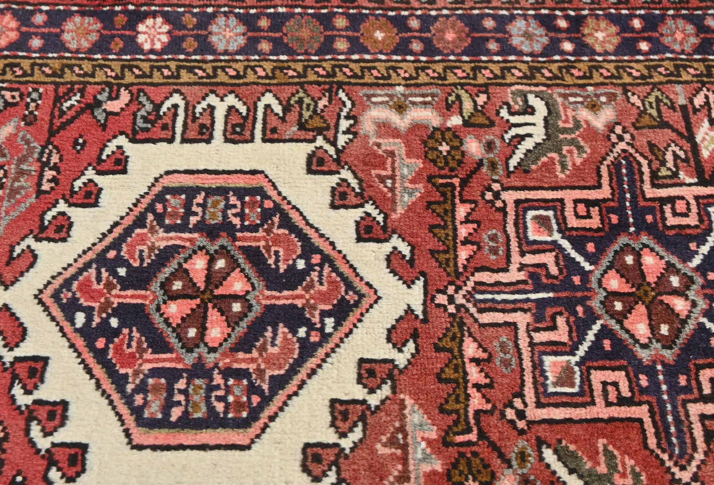 This original 2X9 red vintage Persian runner was crafted by the hands of skilled weavers enthused by a variety of lovely artistic designs, to recreate the aged look of the unique piece with a richness of color and beautifully elaborated background field. What set this geometric Oriental area runner from the others are the material and dye used (wool pile and cotton foundation), knot count, ancient designs, fantastic grades, and its regional historical connection: it has deep roots, from the story of the people who produced it to the meaning of the symbols and colors displayed across its canvas that have been praised for centuries. This home décor carpet will be completely cozy and inviting that never will go out of style! Also, this Oriental runner would be among your most valuable treasures, it is a great investment that increase in value over time, and it will last for generations because was woven with high-quality, all-natural wool; it won’t rip, tear, or shed. Environmentally friendly, opulent yet affordable; this Persian rug will give you a thorough amount of character to help define your living space with sophistication and warmth that will capture the eyes and attention of your audience (homeowners, designers, decorators, family and friends). RT-7171