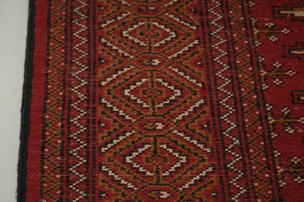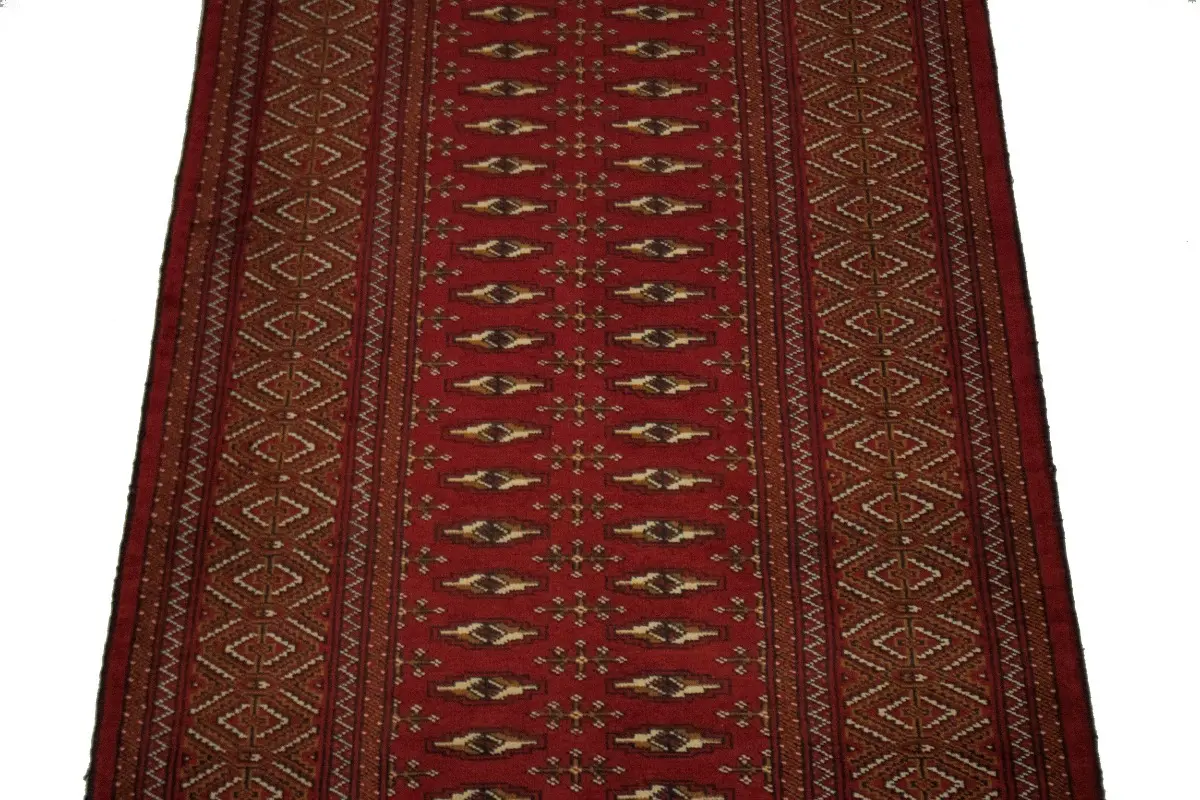 Vintage Red Tribal 3'4X12'6 Turkoman Persian Runner Rug