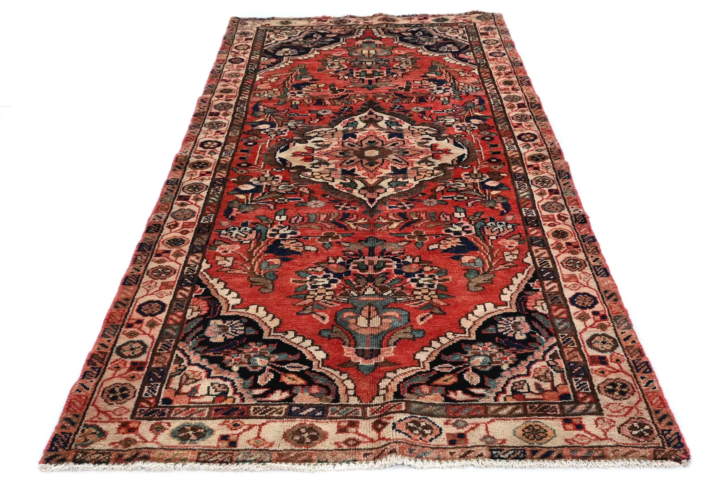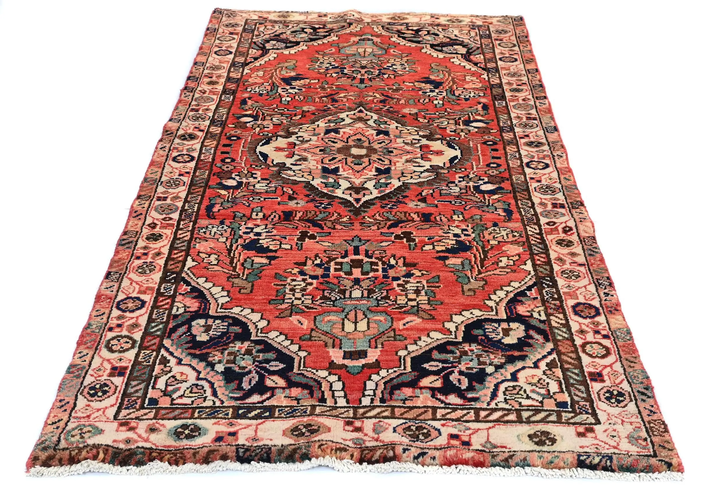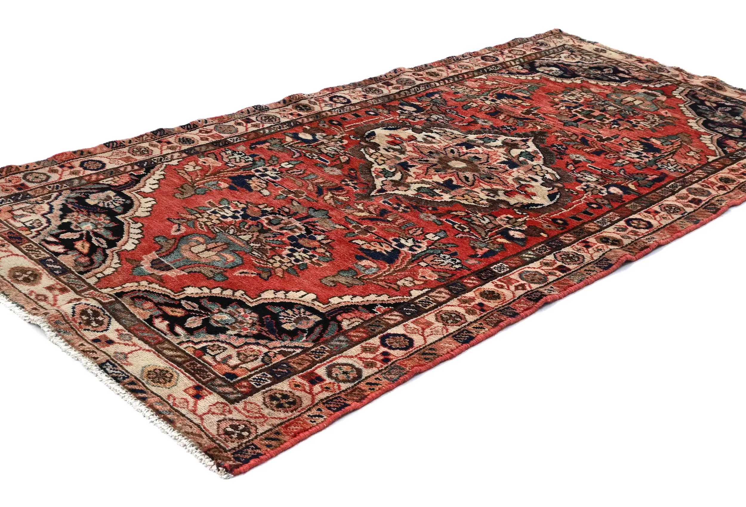 Handmade vintage 3'4X6'10 red Persian rug made with vegetable dyes (fine wool pile and cotton foundation), superior knot count, and alluring ancient designs. This Oriental rug never will go out of style and would be among your most valuable treasures.