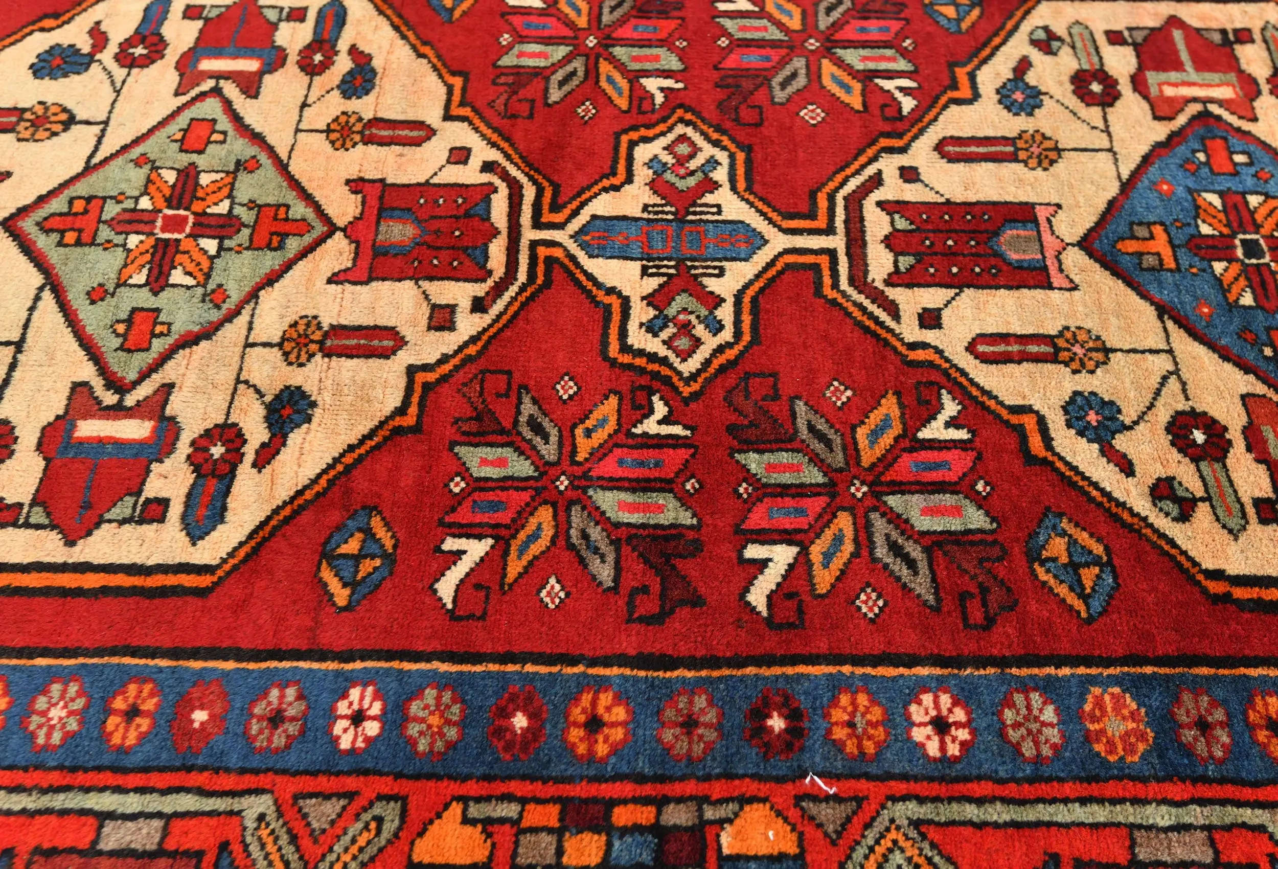 This authentic 3'5X10 red vintage runner was finely knotted by the hands of weavers influenced by a variety of amazing artistic designs, to recreate the aged look of the exceptional piece with a richness of color and embellished background field. What set this tribal Oriental area runner from the others are the material and dye used (wool pile and cotton foundation), knot count, antique designs, fantastic grades, and its regional historical connection: it has deep roots, from the story of the people who produced it to the meaning of the symbols and colors displayed across its canvas that have been praised for centuries. This home décor carpet will be completely cozy and inviting that never will go out of style! Also, this Oriental runner would be among your most valuable treasures, it is a great investment that increase in value over time, and it will last a lifetime because was woven with high-quality, all-natural wool; it won’t rip, tear, or shed. Eco-friendly, opulent yet affordable; this Persian rug will give you an extra pop of character to help define your home environment with luxury and warmth that will capture the eyes and attention of your audience (homeowners, designers, decorators, family and friends).