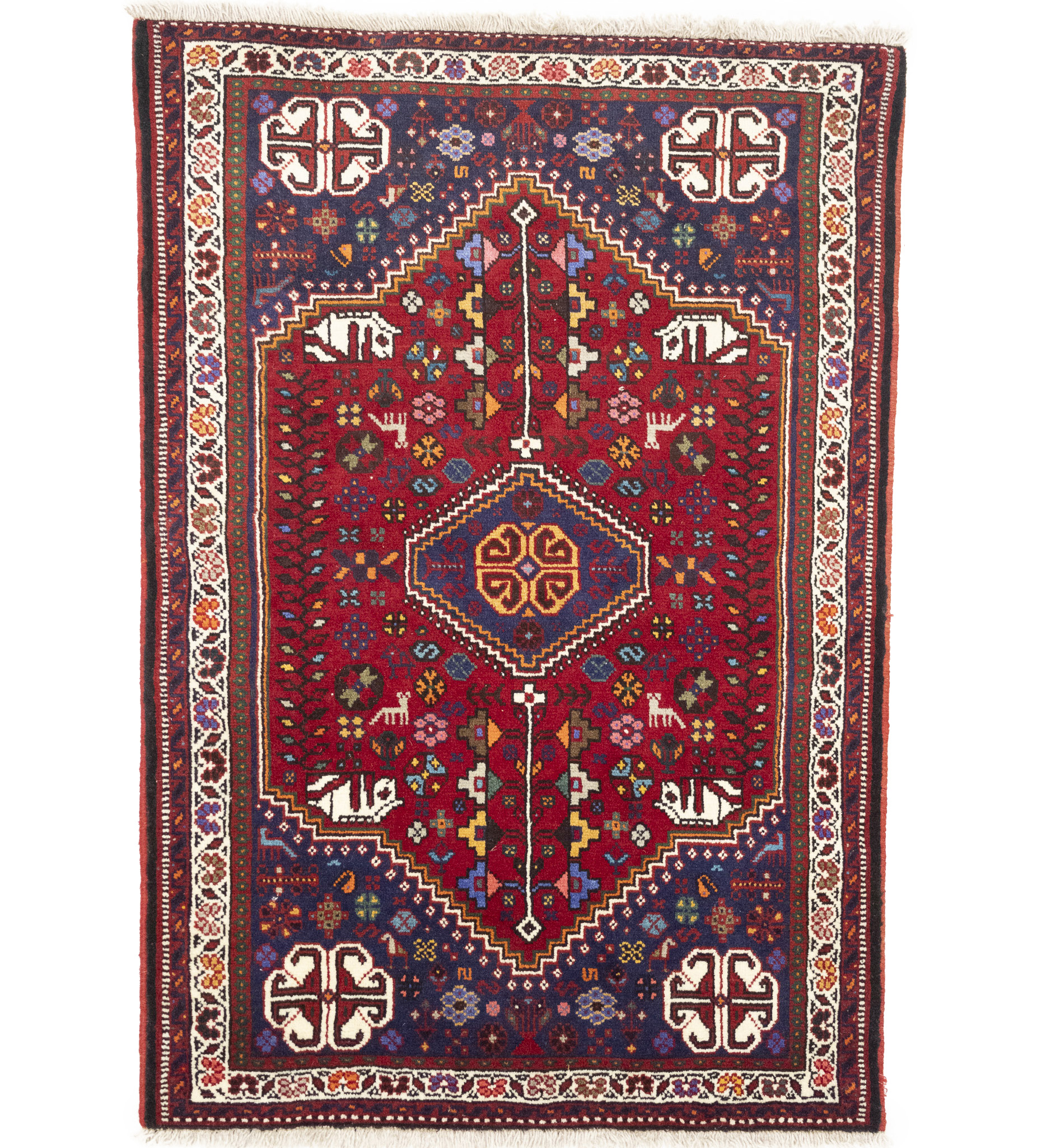 Vintage Red Tribal 3'5X5 Shiraz Persian Rug