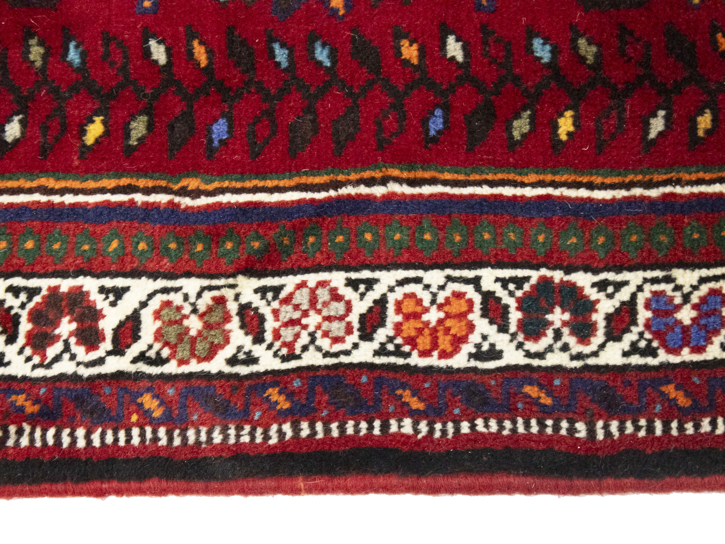 Handmade vintage 3'5X5 red Persian rug made with vegetable dyes (fine wool pile and cotton foundation), superior knot count, and alluring ancient designs. This Oriental rug never will go out of style and would be among your most valuable treasures.