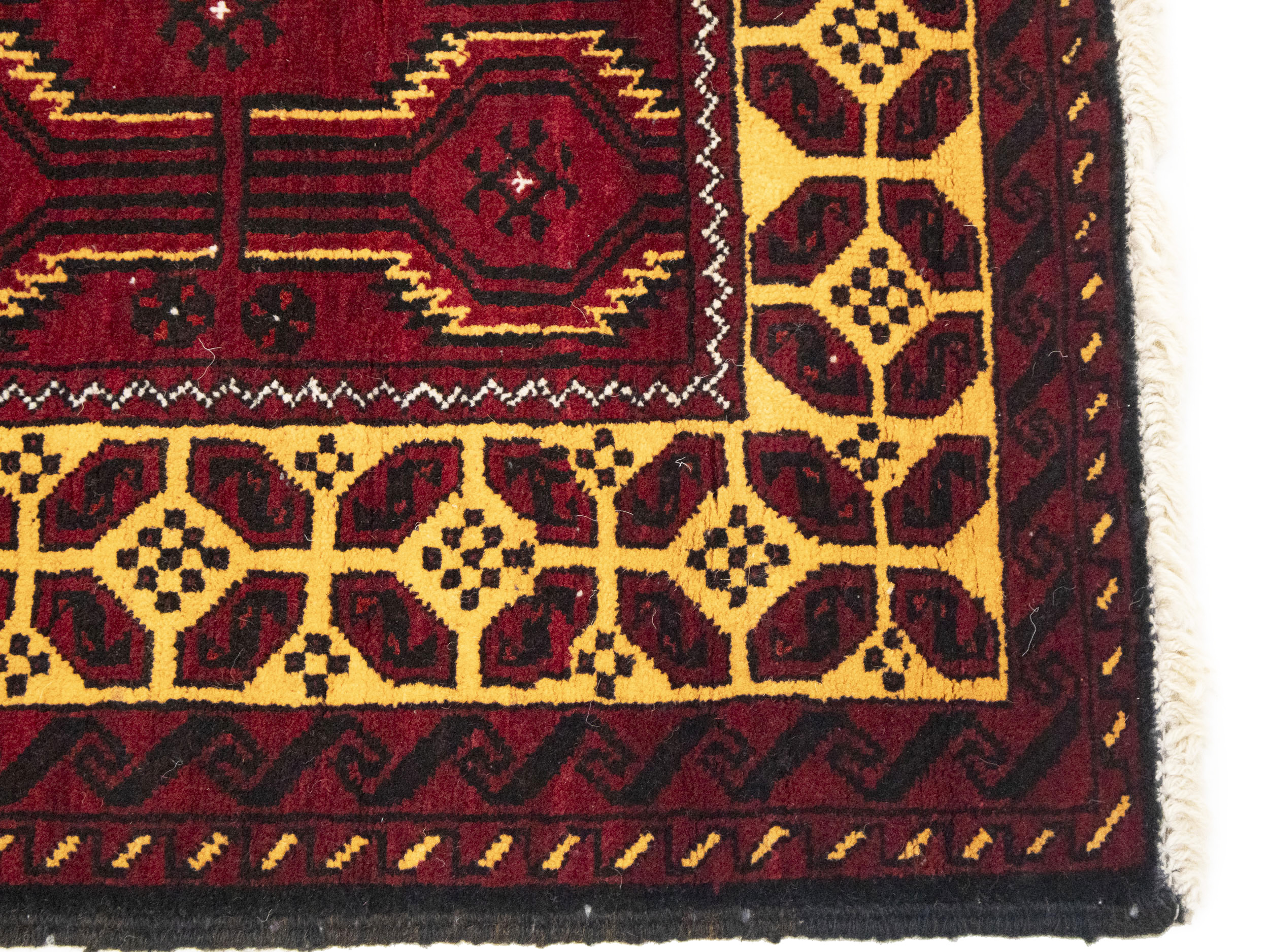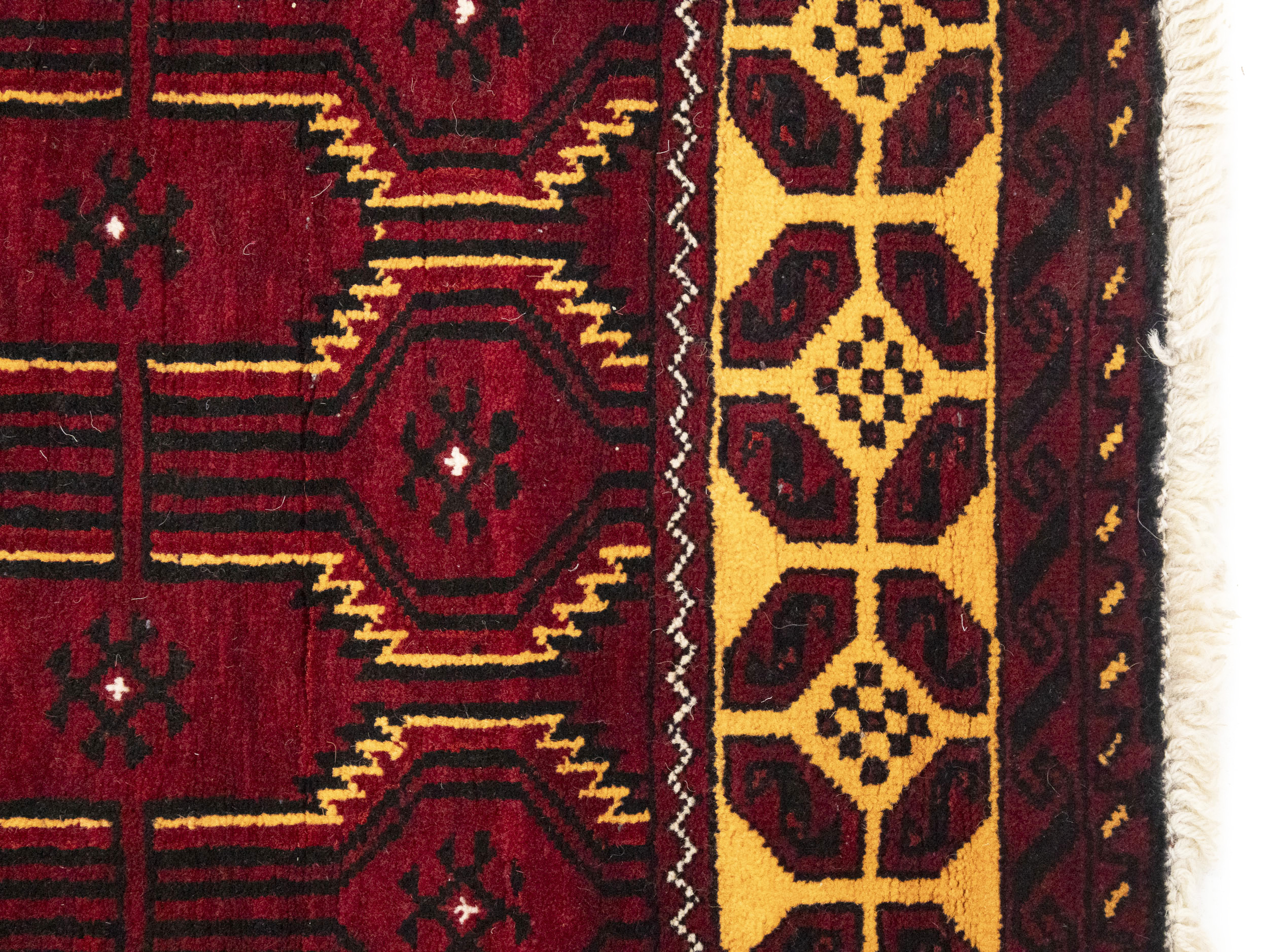 This genuine 3'6X6'5 red vintage rug was made by the hands of gifted weavers inspired by a variety of spectacular artistic designs, to recreate the aged look of the original piece with a richness of color and ornately patterned background field. What set this tribal Oriental area rug from the others are the material and dye used (wool pile and cotton foundation), knot count, ancient designs, fantastic grades, and its regional historical connection: it has deep roots, from the story of the people who produced it to the meaning of the symbols and colors displayed across its canvas that have been praised for centuries. This home décor carpet will be completely cozy and inviting that never will go out of style! Also, this Oriental rug would be among your most valuable treasures, it is a great investment that accrues value over time, and it will last for generations because was woven with high-quality, all-natural wool; it won’t rip, tear, or shed. Environmentally friendly, opulent yet affordable; this Persian rug will give you a thorough amount of character to help define your living space with elegance and warmth that will capture the eyes and attention of your audience (homeowners, designers, decorators, family and friends).