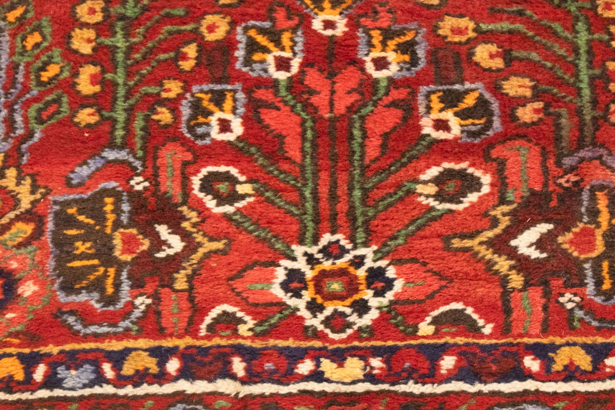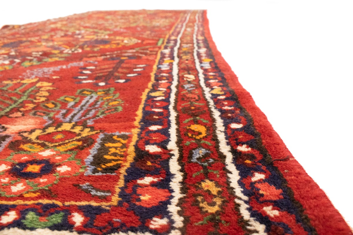 This authentic 3'7X9'5 red vintage Persian runner was finely knotted by the hands of weavers influenced by a variety of amazing artistic designs, to recreate the aged look of the exceptional piece with a richness of color and embellished background field. What set this tribal Oriental area runner from the others are the material and dye used (wool pile and cotton foundation), knot count, antique designs, fantastic grades, and its regional historical connection: it has deep roots, from the story of the people who produced it to the meaning of the symbols and colors displayed across its canvas that have been praised for centuries. This home décor carpet will be completely cozy and inviting that never will go out of style!