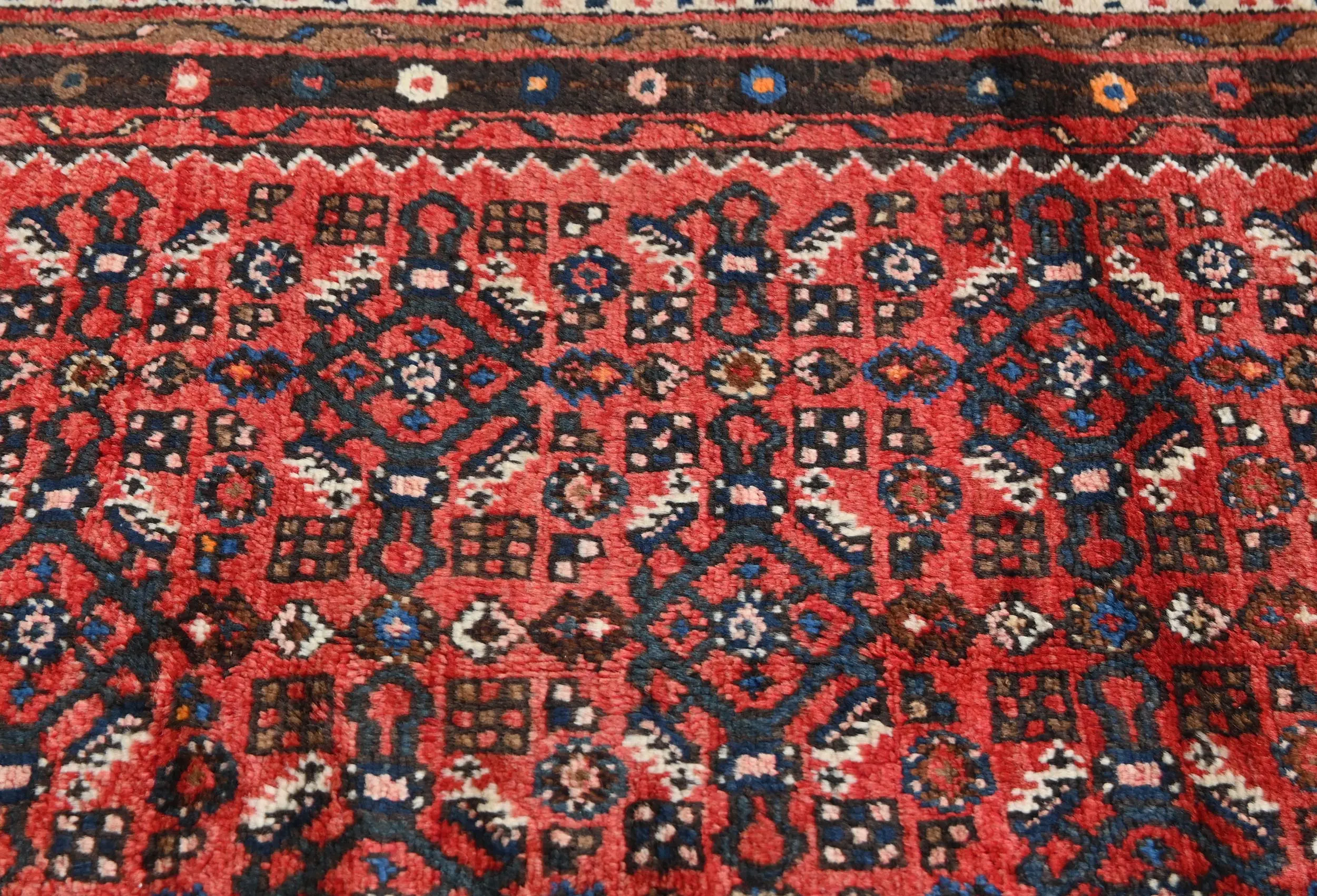 Handmade vintage 3X10 red Persian runner made with vegetable dyes (fine wool pile and cotton foundation), exceptional knot count, and appealing ancient designs. This Oriental runner never will go out of style and would be among your most valuable treasures.